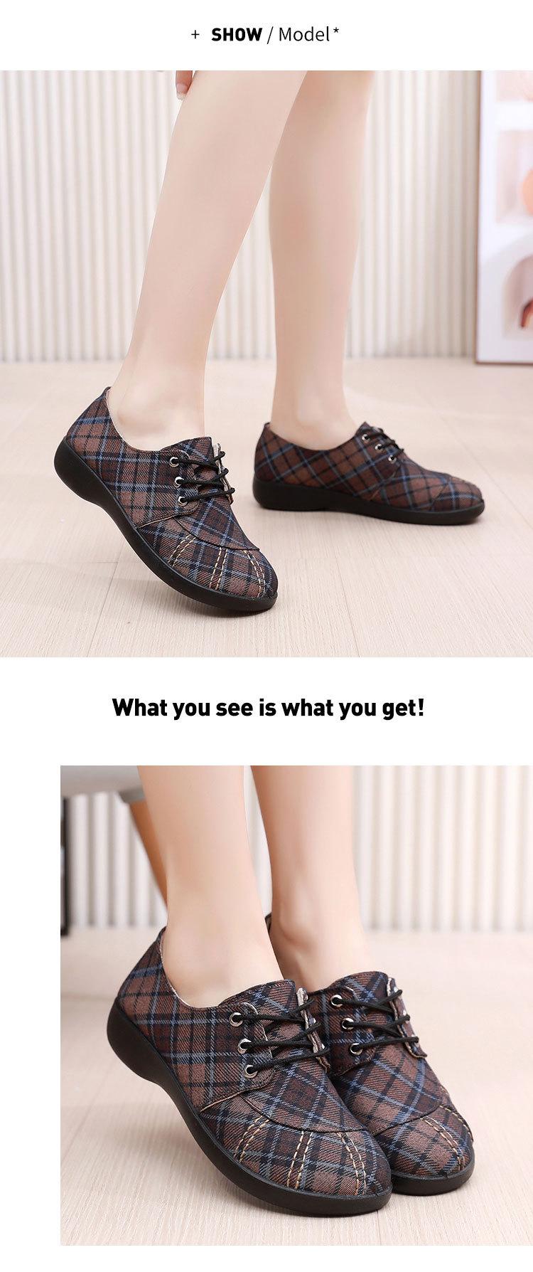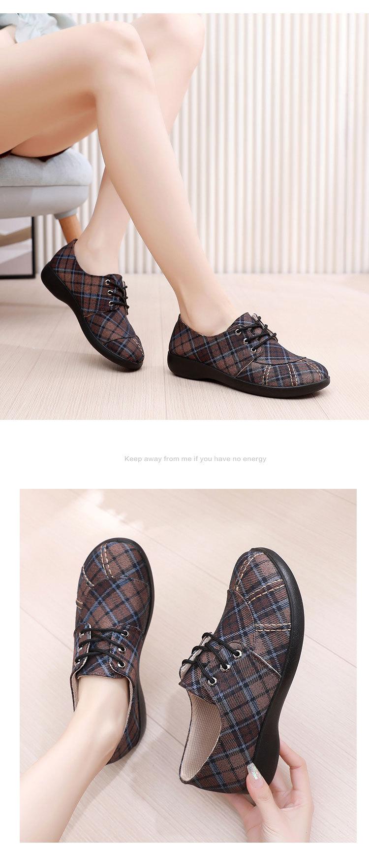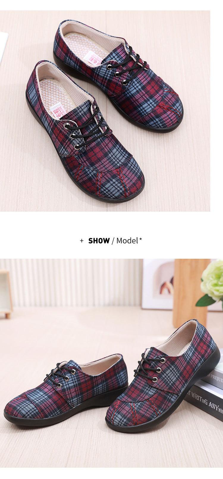 Zapatos de Tela de Pekín Antiguo para Mujer Primavera y Verano 2025, Zapatos Planos Cómodos, Zapatos de Lona a Cuadros con Cordones, Zapatos para Madres de Mediana Edad y Ancianas