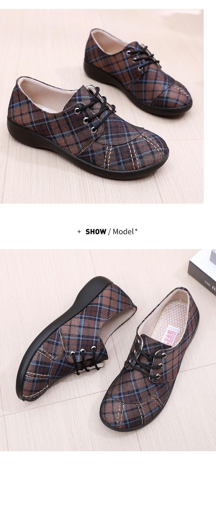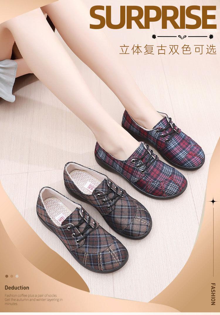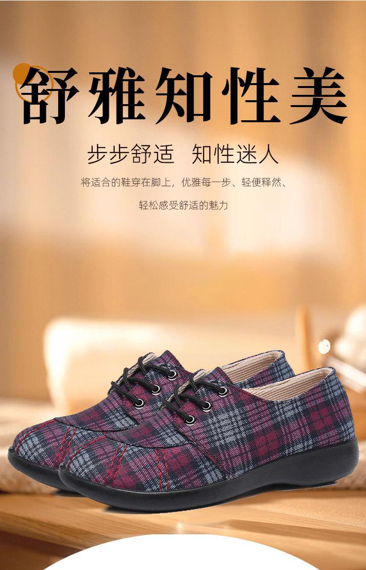 Zapatos de Tela de Pekín Antiguo para Mujer Primavera y Verano 2025, Zapatos Planos Cómodos, Zapatos de Lona a Cuadros con Cordones, Zapatos para Madres de Mediana Edad y Ancianas