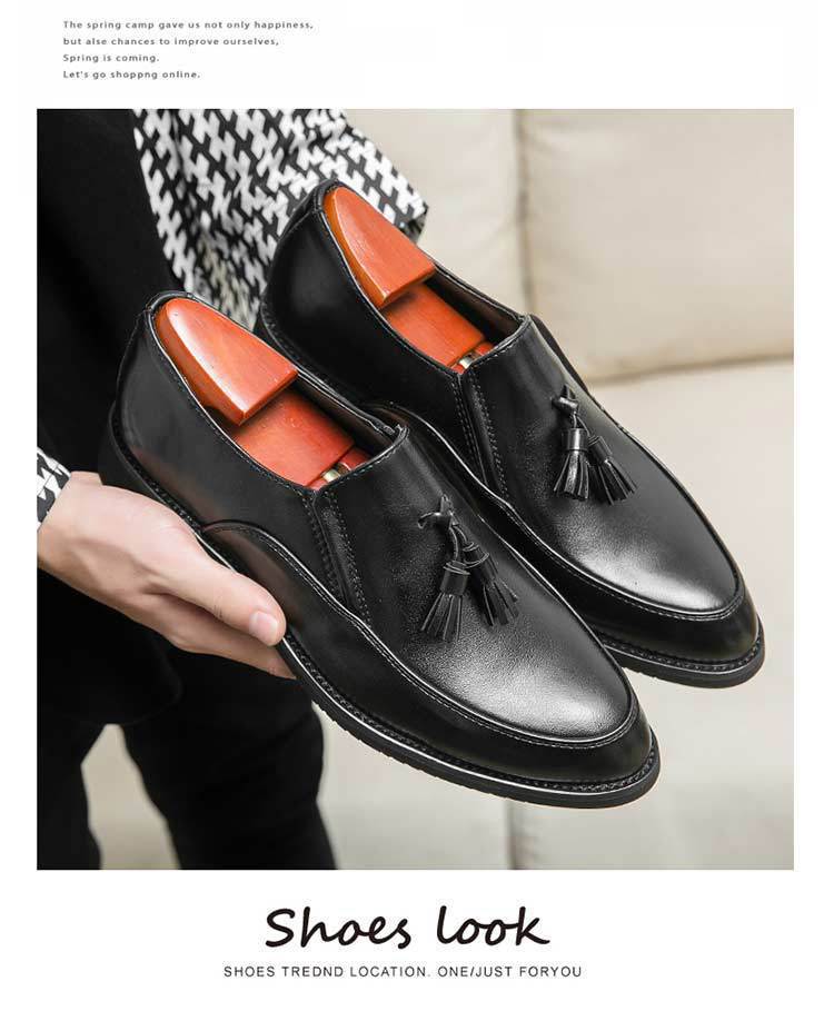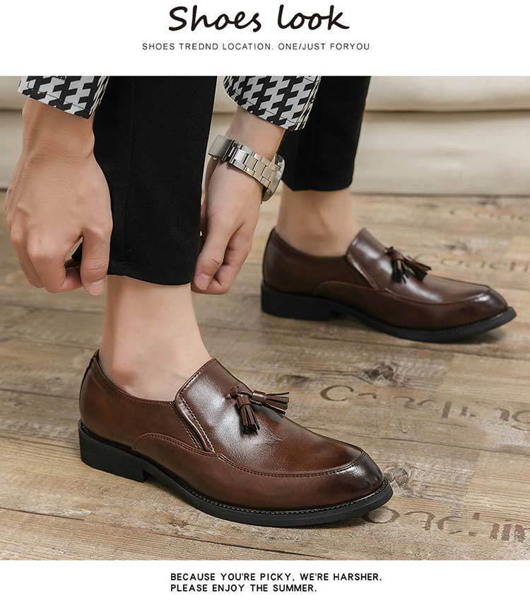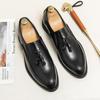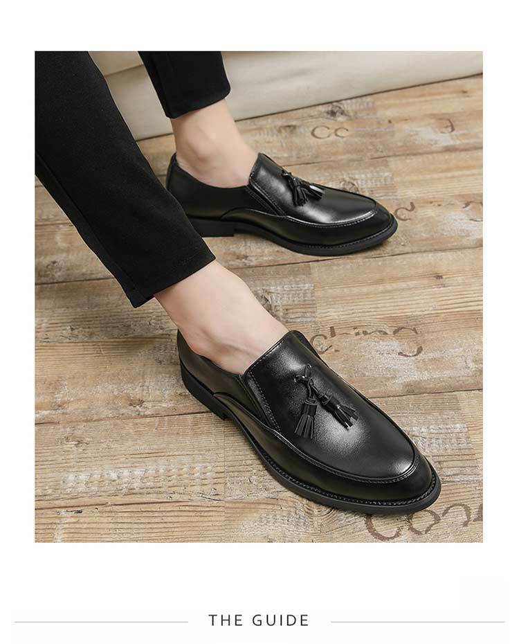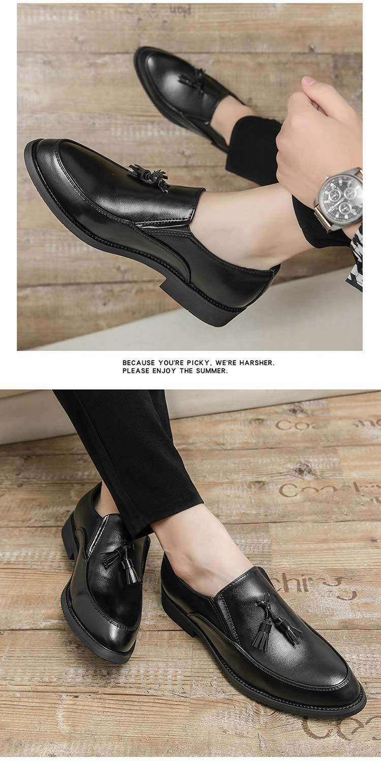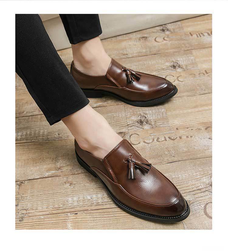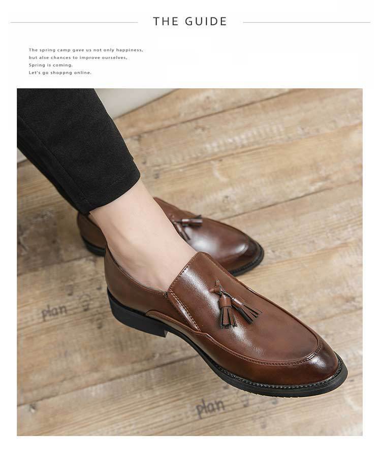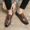 Transfronterizo 46 talla grande Zapatos de cuero con flecos para hombre Mocasines de cuero puntiagudos a la moda sin cordones Transpirables de suela gruesa para perezosos
