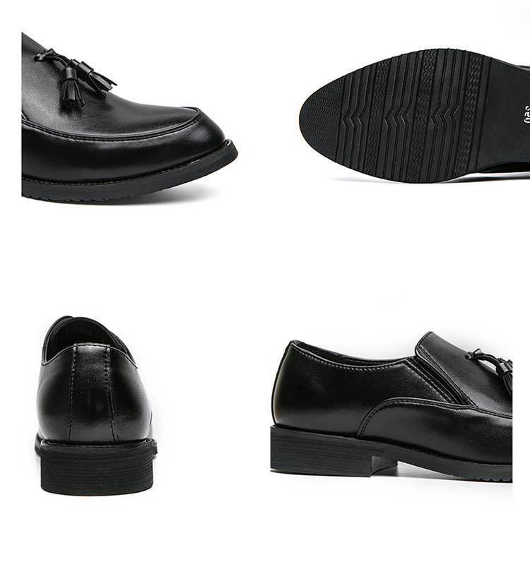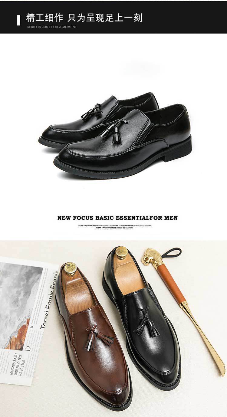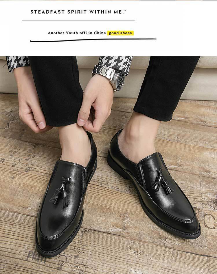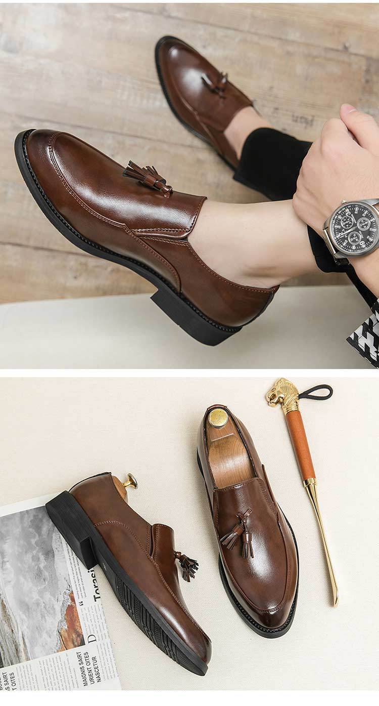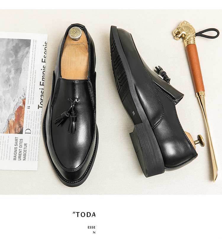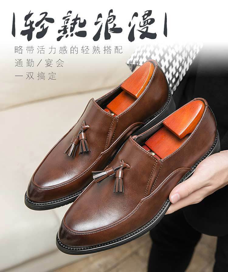 Transfronterizo 46 talla grande Zapatos de cuero con flecos para hombre Mocasines de cuero puntiagudos a la moda sin cordones Transpirables de suela gruesa para perezosos