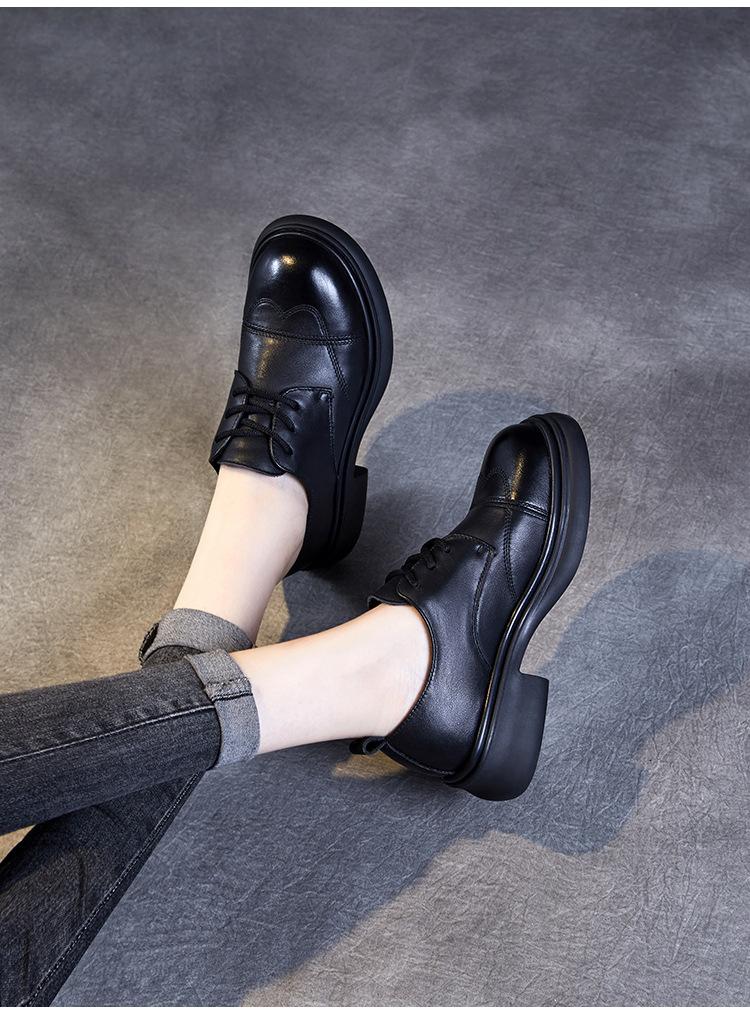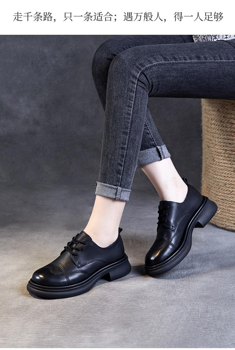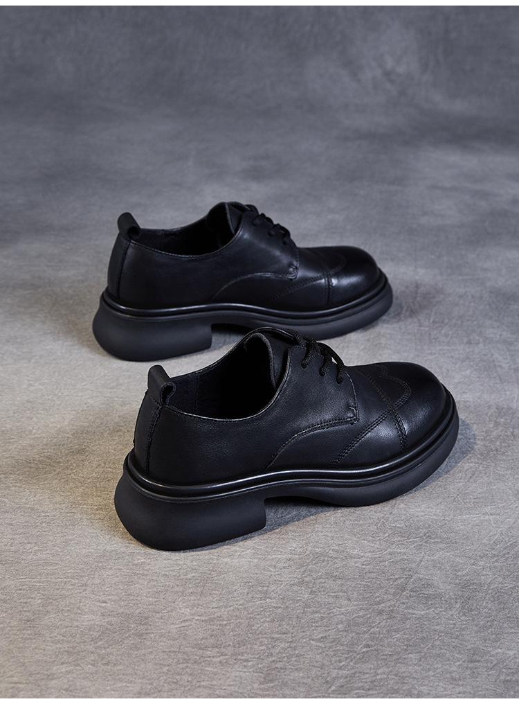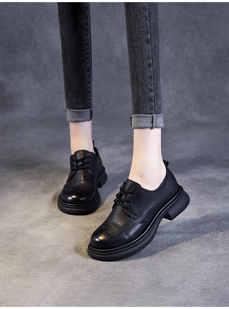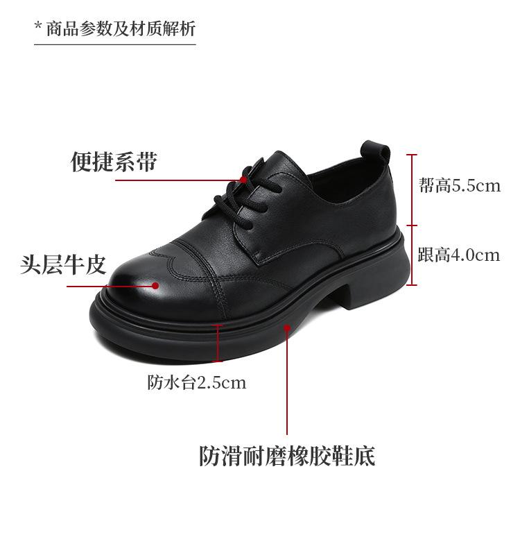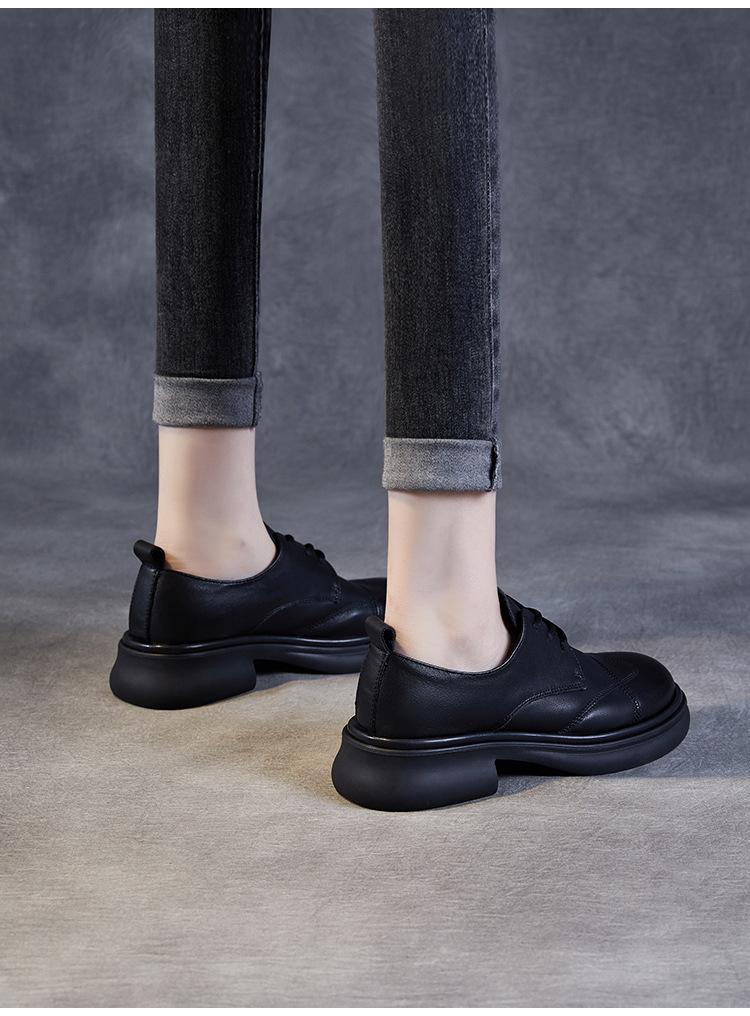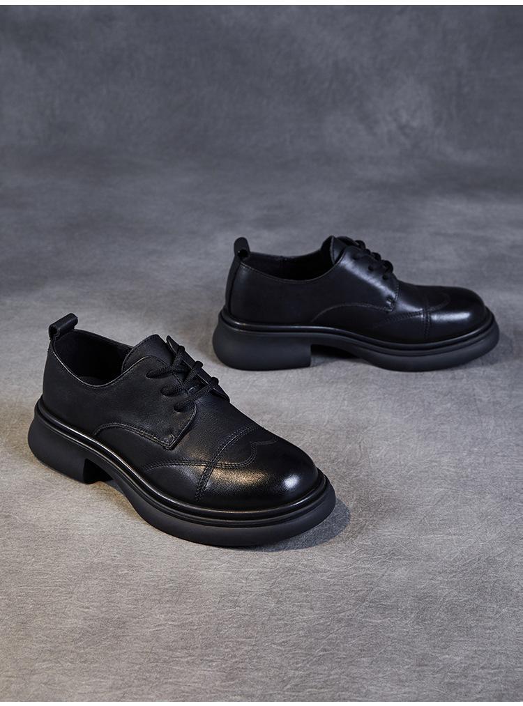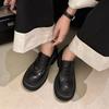 Zapatos de cuero negro transpirables de suela gruesa para mujer, primavera y otoño 2024, nuevos zapatos de una sola capa, mocasines de punta redonda estilo británico retro