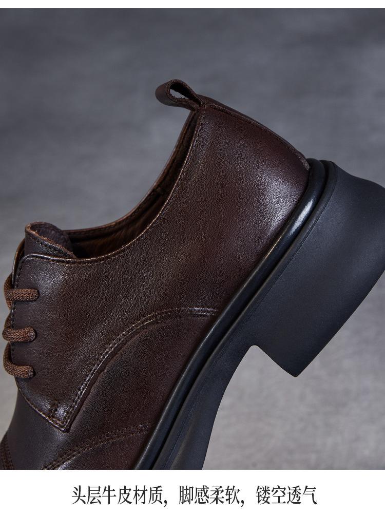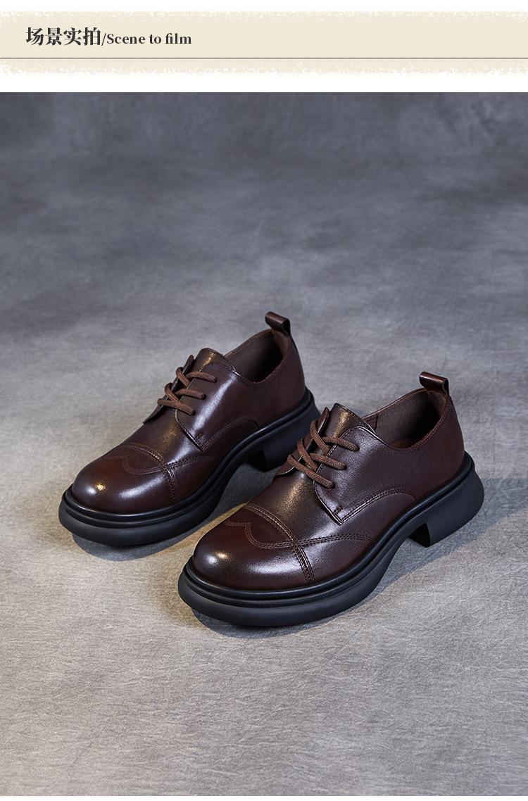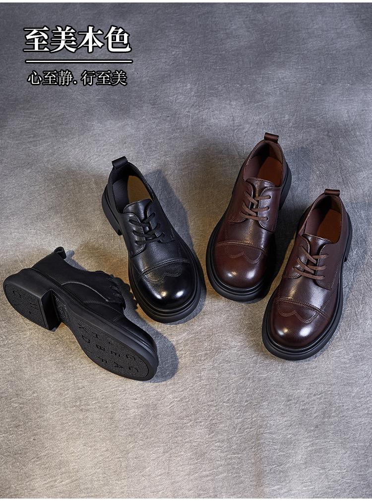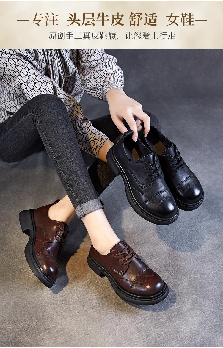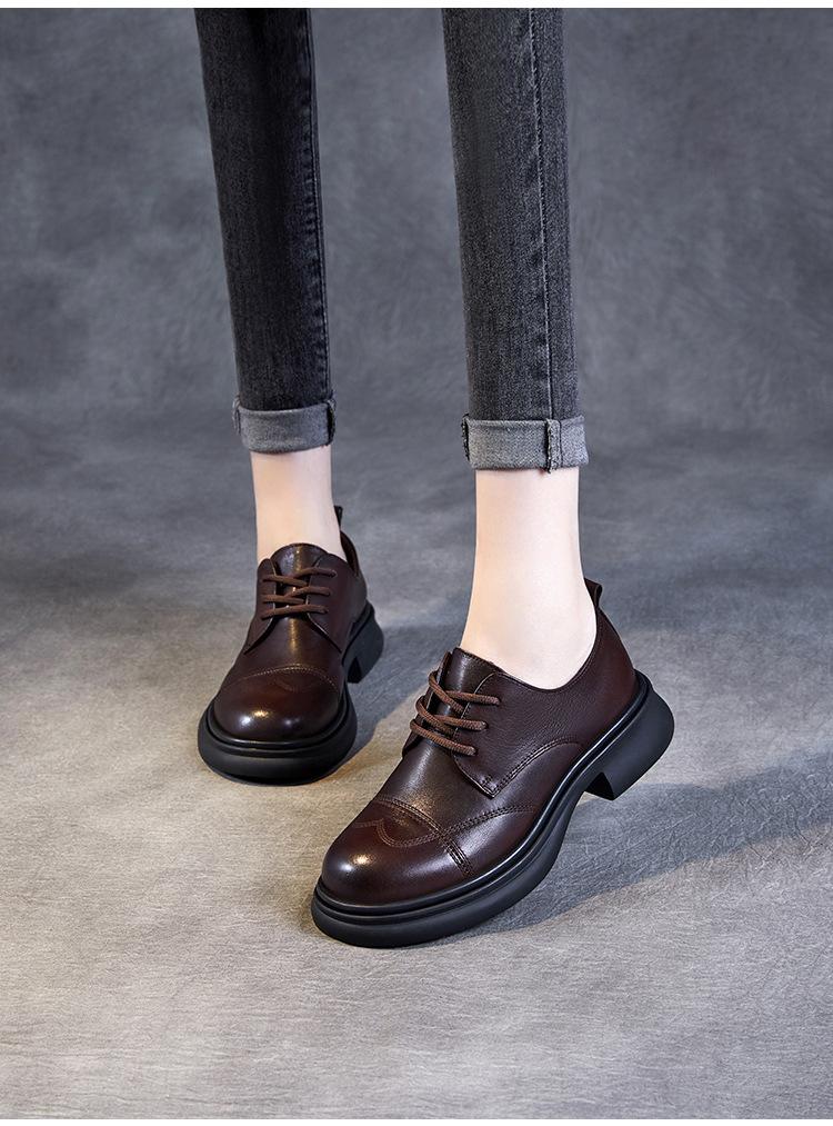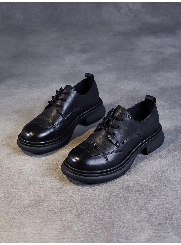 Zapatos de cuero negro transpirables de suela gruesa para mujer, primavera y otoño 2024, nuevos zapatos de una sola capa, mocasines de punta redonda estilo británico retro