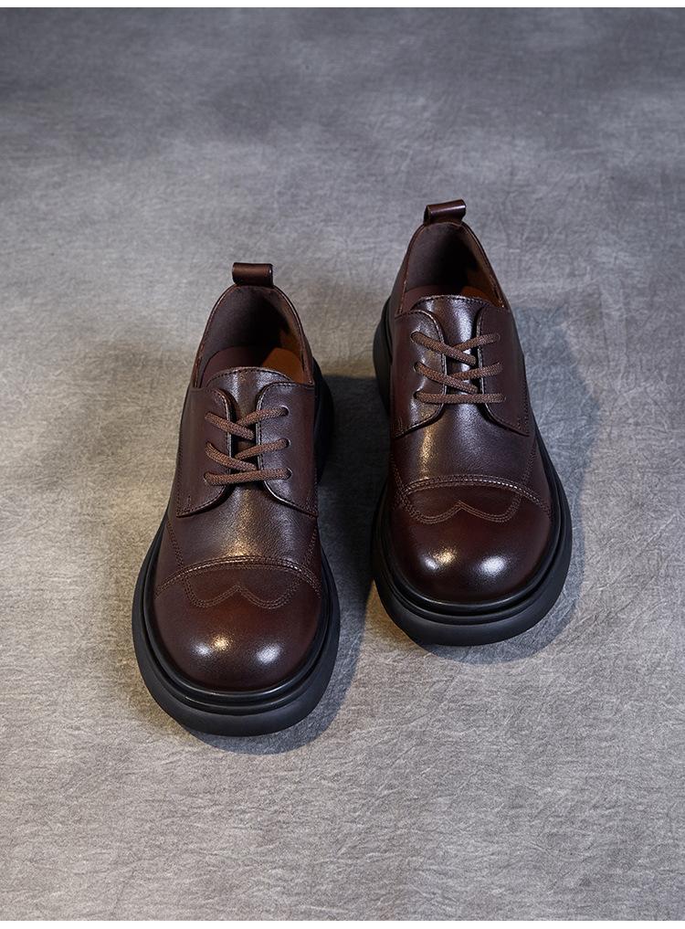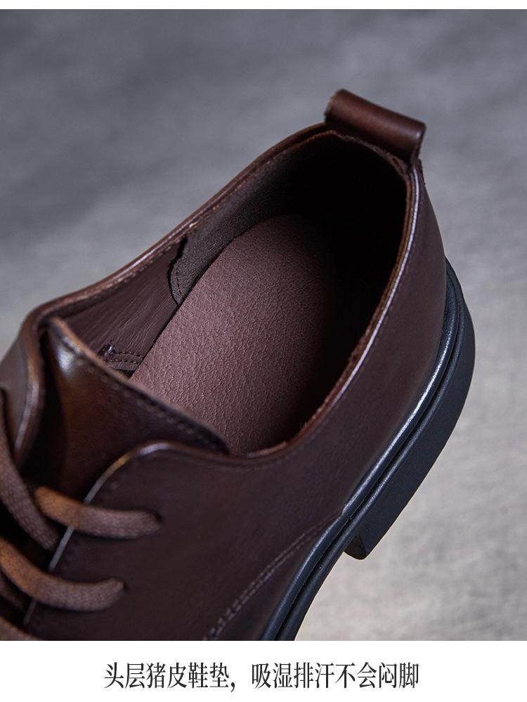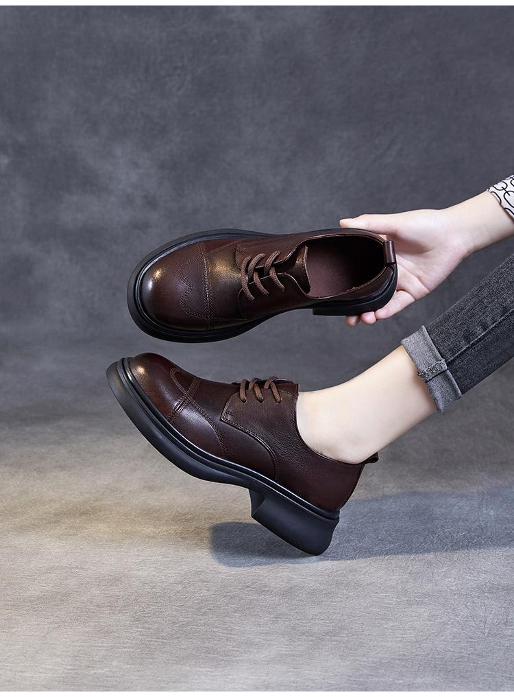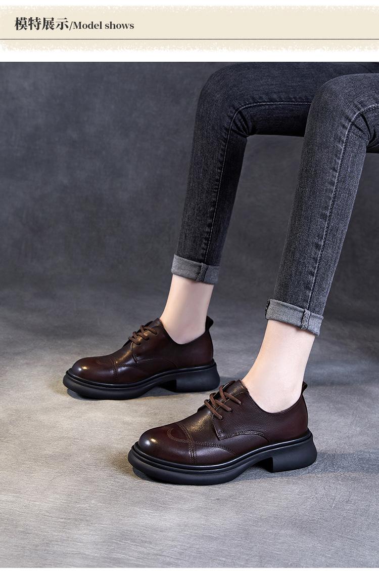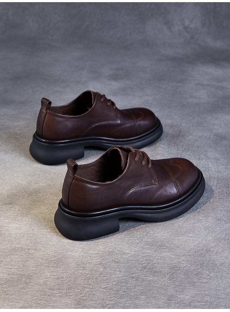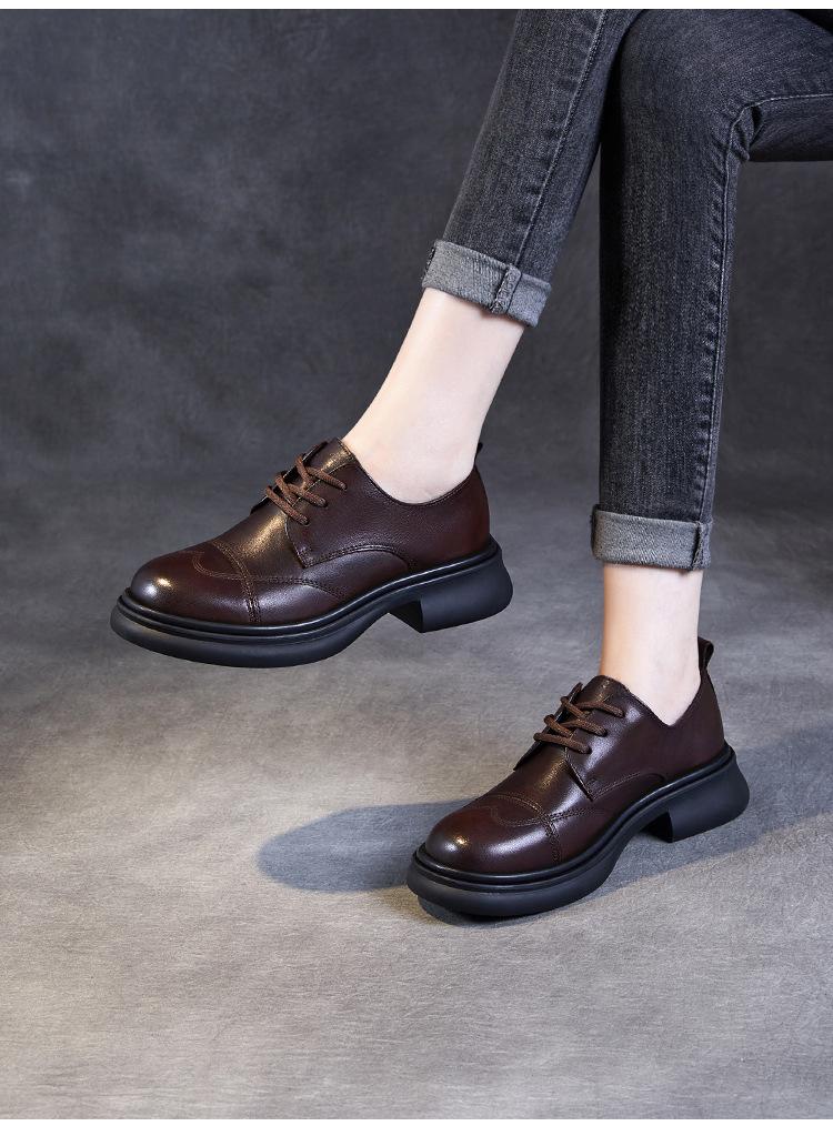 Zapatos de cuero negro transpirables de suela gruesa para mujer, primavera y otoño 2024, nuevos zapatos de una sola capa, mocasines de punta redonda estilo británico retro