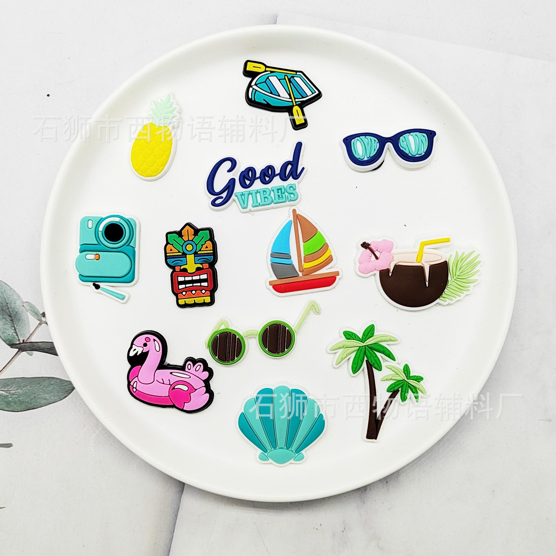 Hebilla de zapato de animales de verano colorida, accesorios para zapatos con agujeros, hebilla decorativa de flores, bricolaje, accesorios para zapatos de jardín desmontables, venta al por mayor