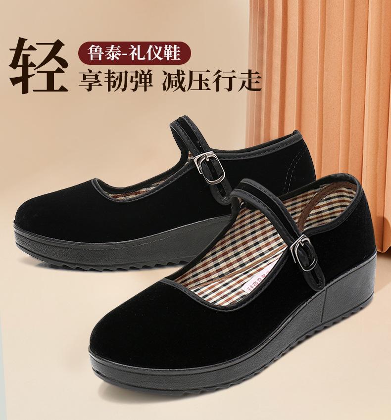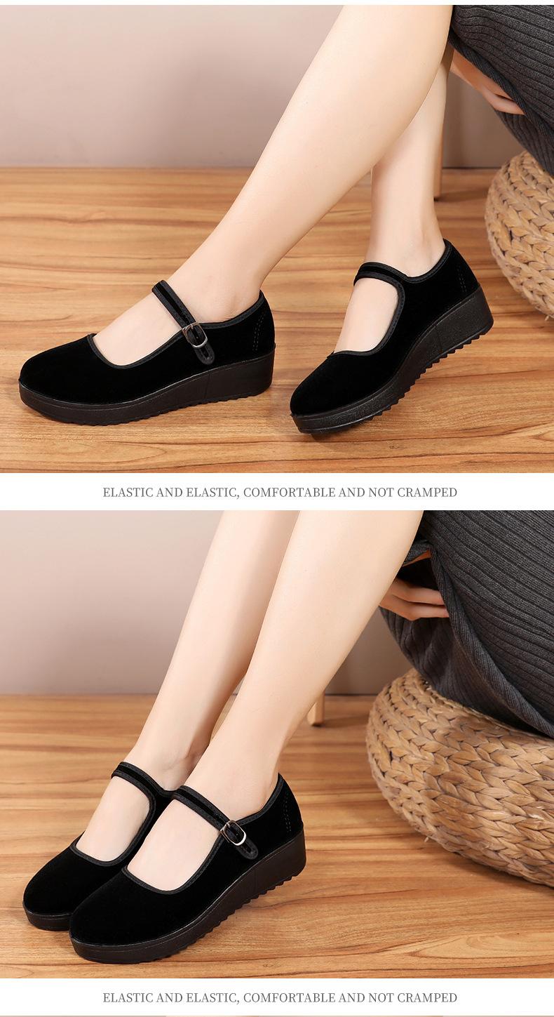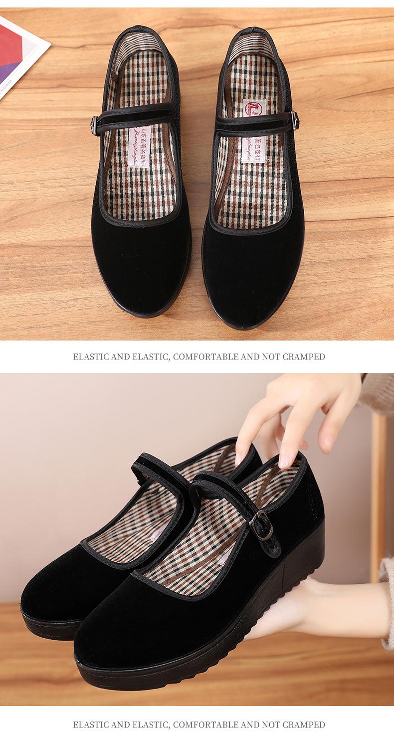 Zapatos de Tela de Pekín Antiguos Zapatos de Trabajo Zapatos de Mujer Suela Suave No Cansan los Pies Zapatos Planos Zapatos de Madre Zapatos Negros Zapatos para Personas Mayores Zapatos Individuales