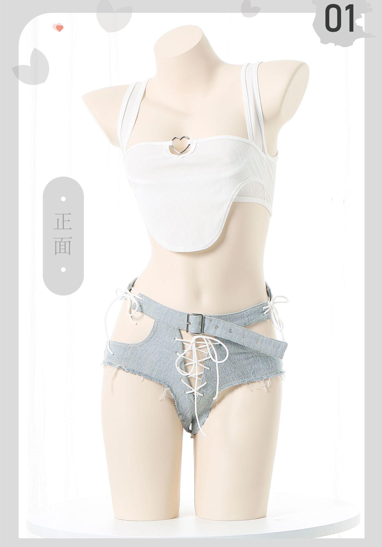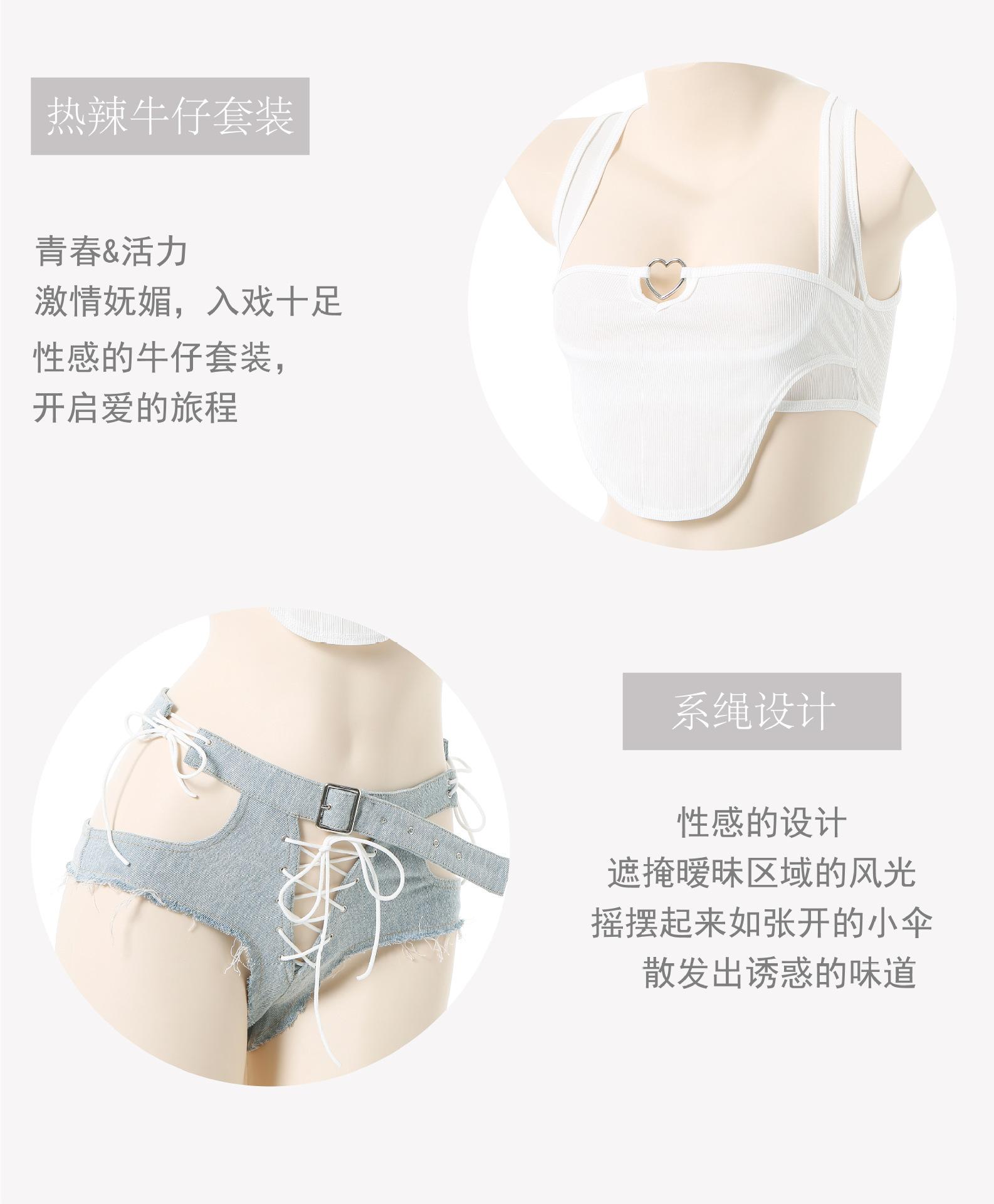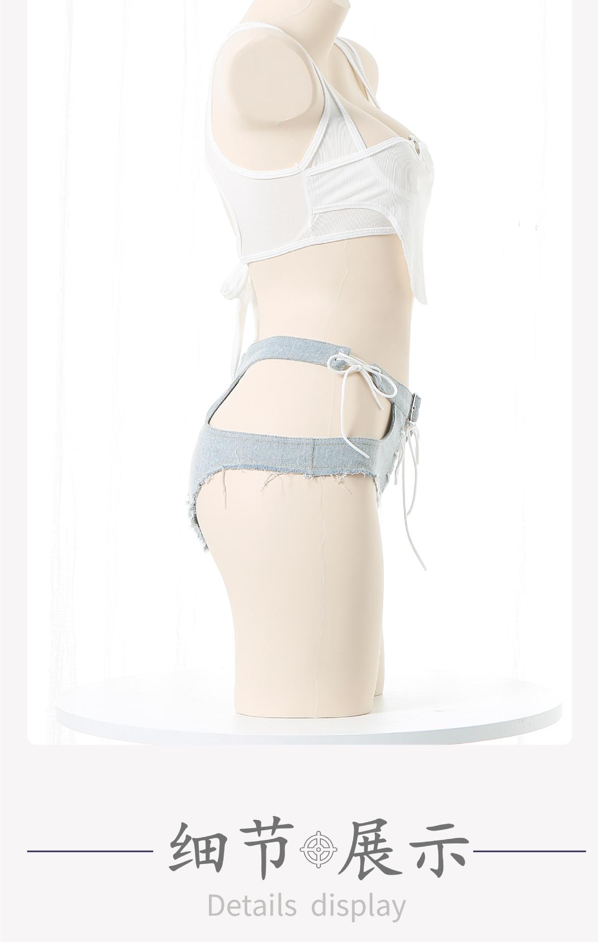 Shorts de Mezclilla Sexy de Cintura Baja Rotos para Exterior Expuestos Convenientes para Club Nocturno Chica Actuación Pantalones Calientes Jeans