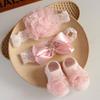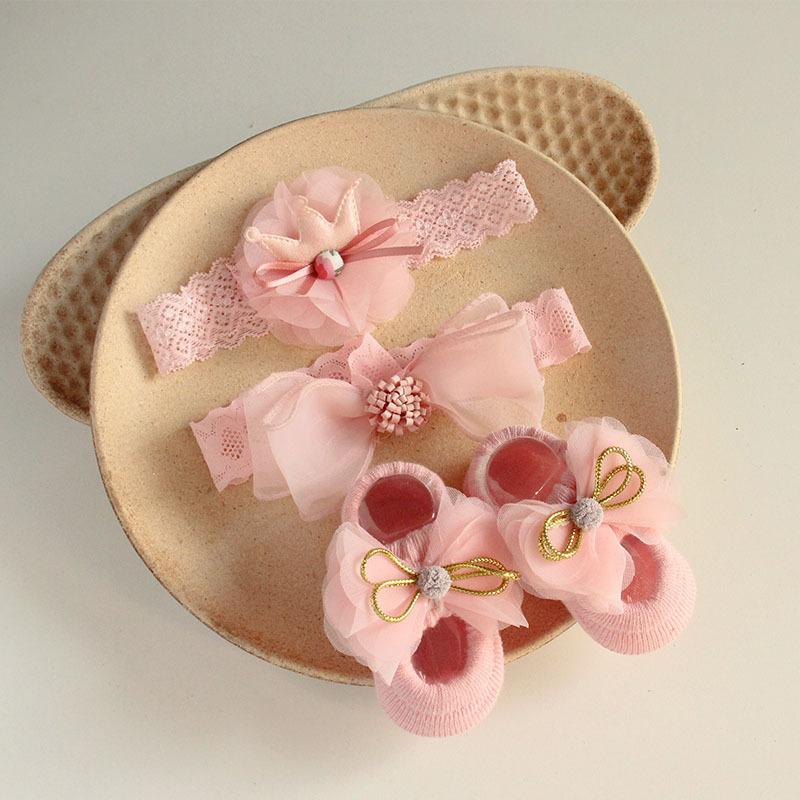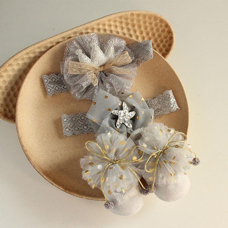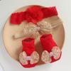 Set de Calcetines y Banda para el Cabello de Bebé Estilo Coreano Banda para el Cabello con Lazo de Bebé Banquete de Cien Días Diadema Europea y Americana