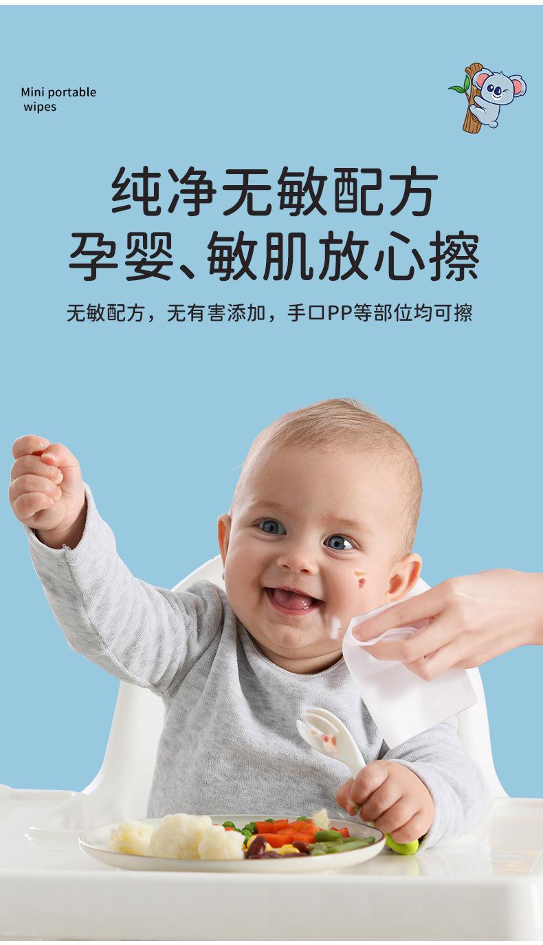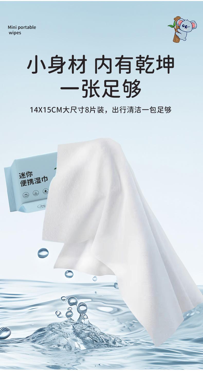 Mini toallitas húmedas para llevar en el bolso pequeño (1 paquete, 8 toallitas húmedas para bebés, 8 toallitas húmedas para bebés con bolsillo para las manos de los niños)