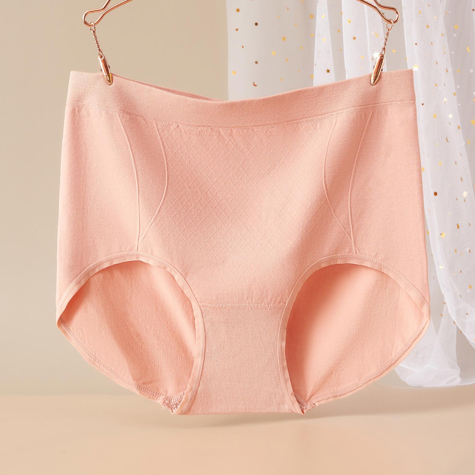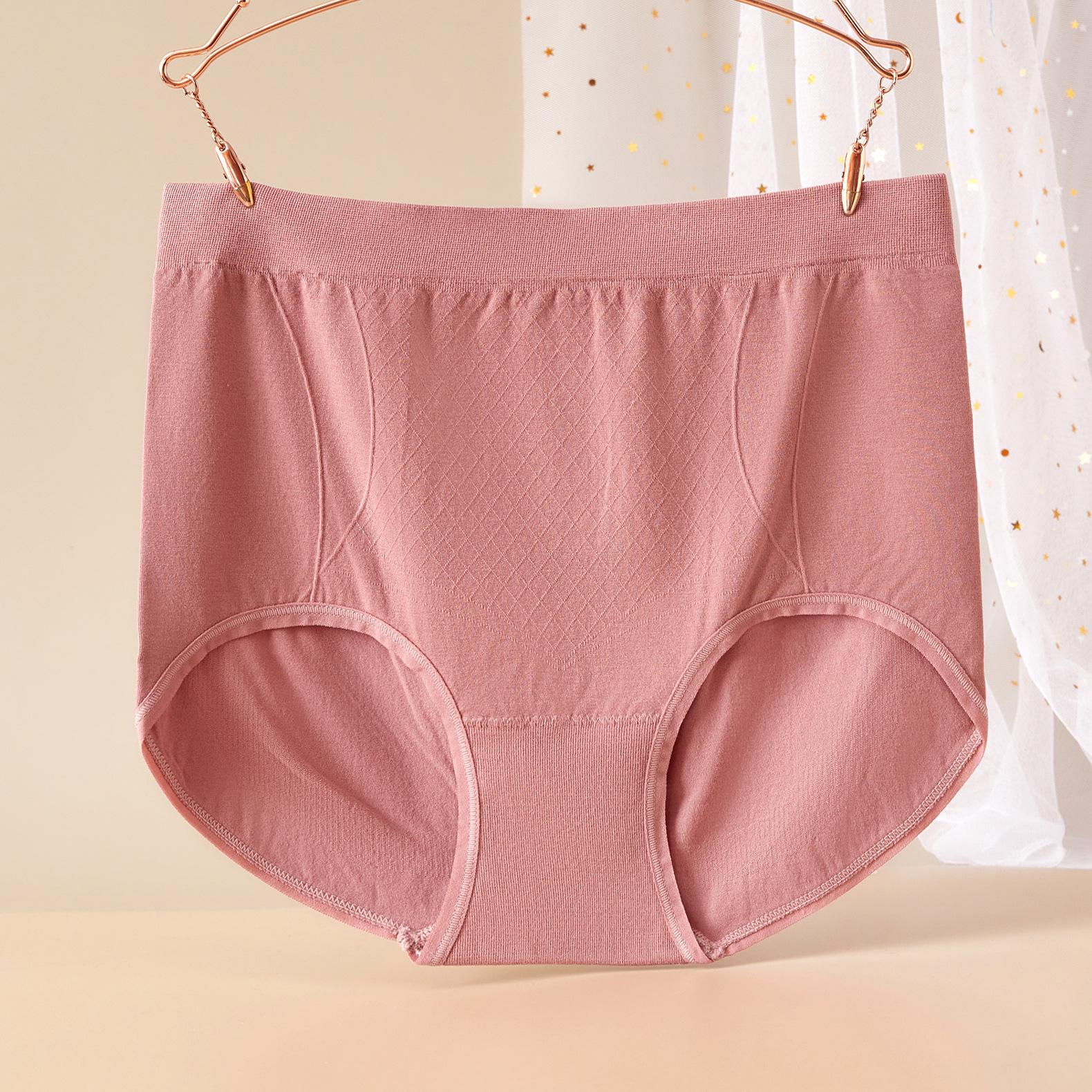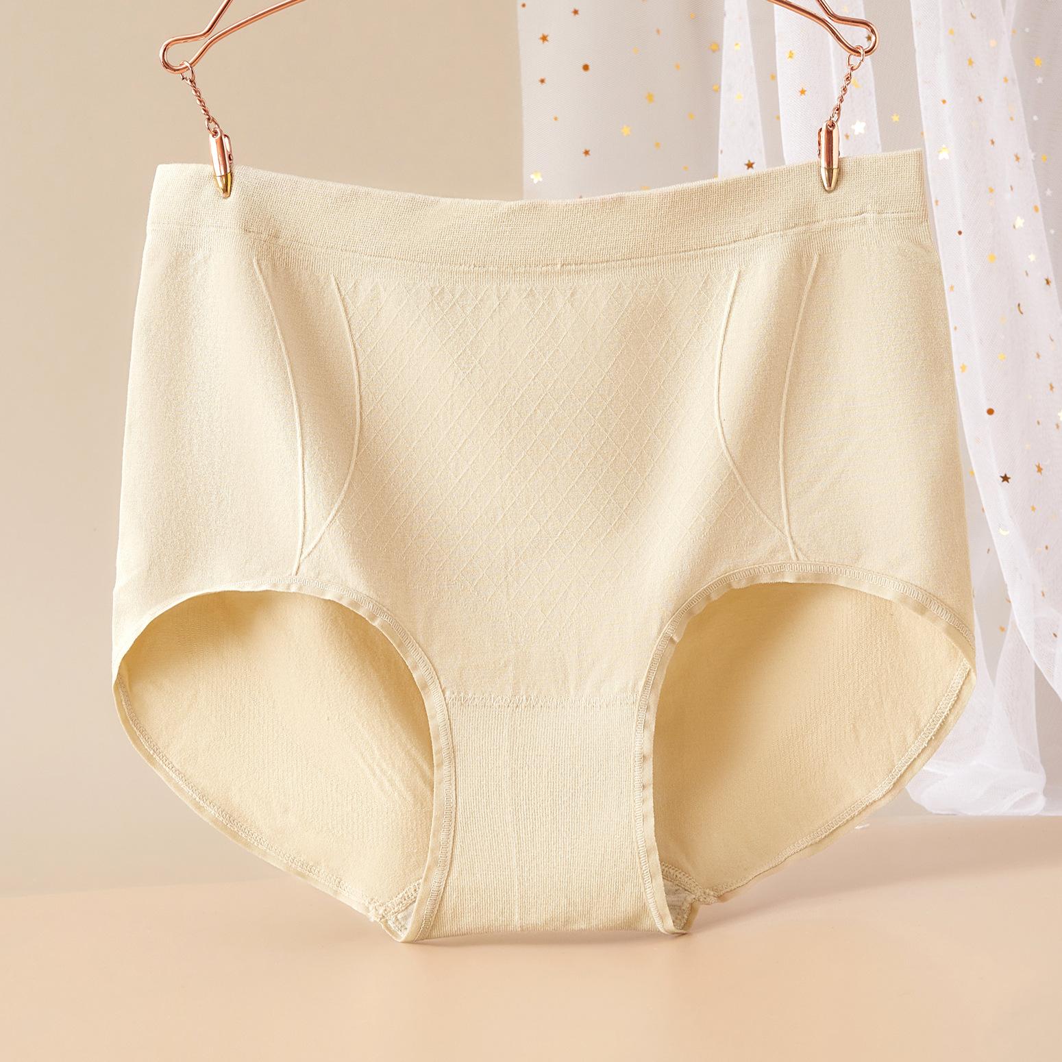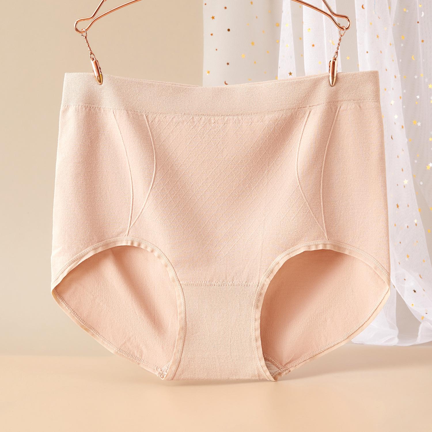 Talla grande color sólido algodón desnudo amoníaco sin costuras calzones de cintura alta señoras grasa mm200 kg algodón de alta elasticidad entrepierna