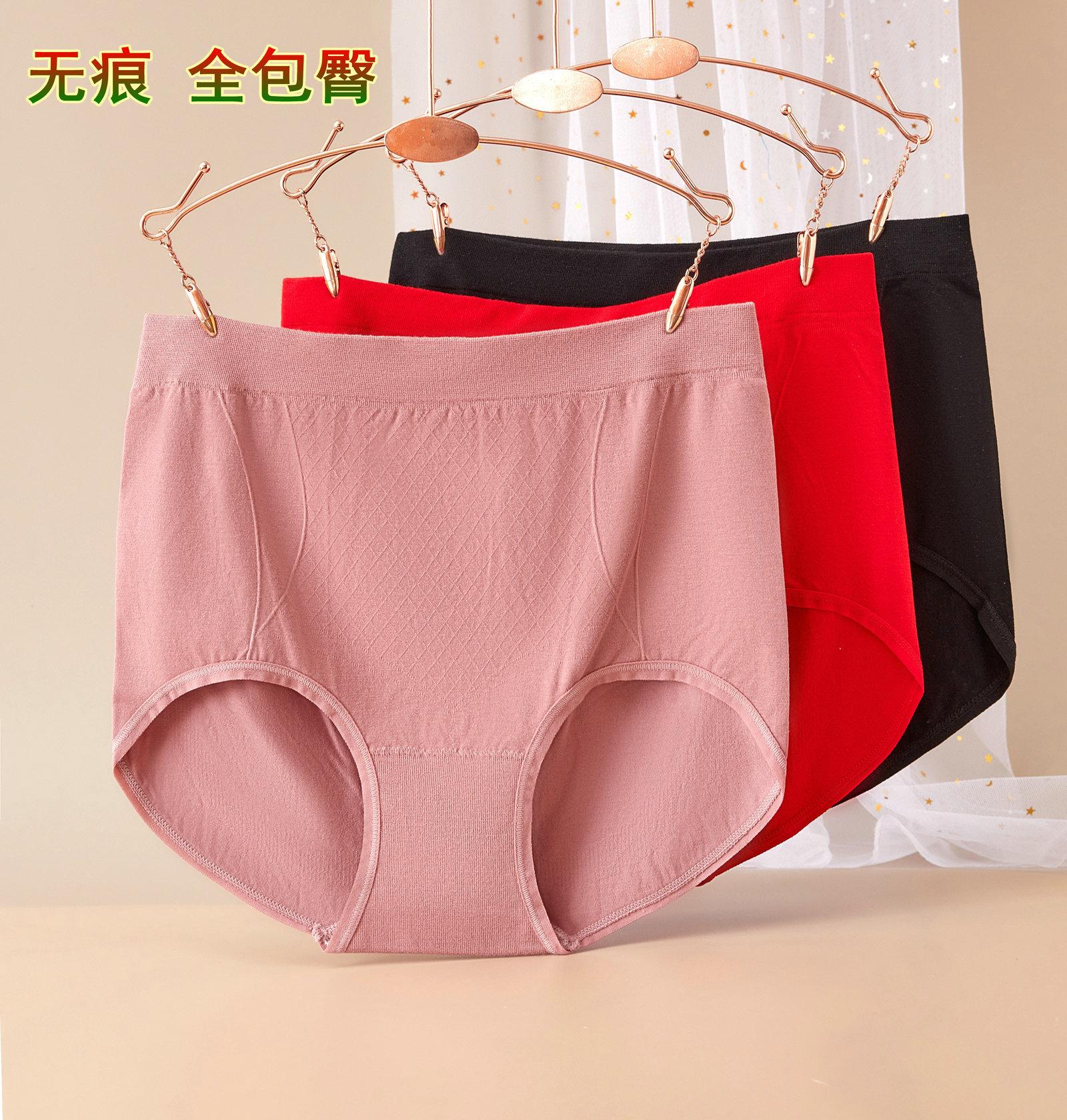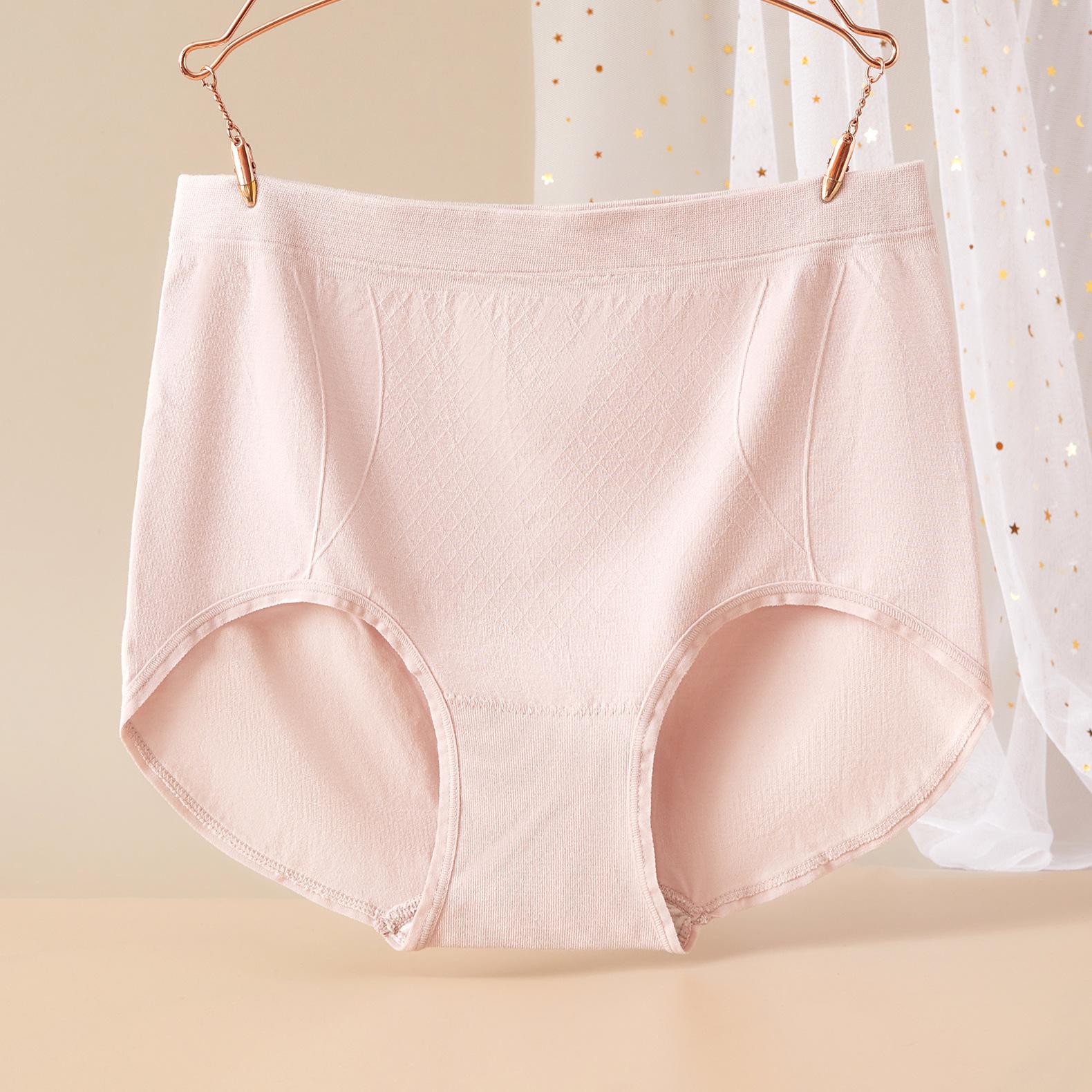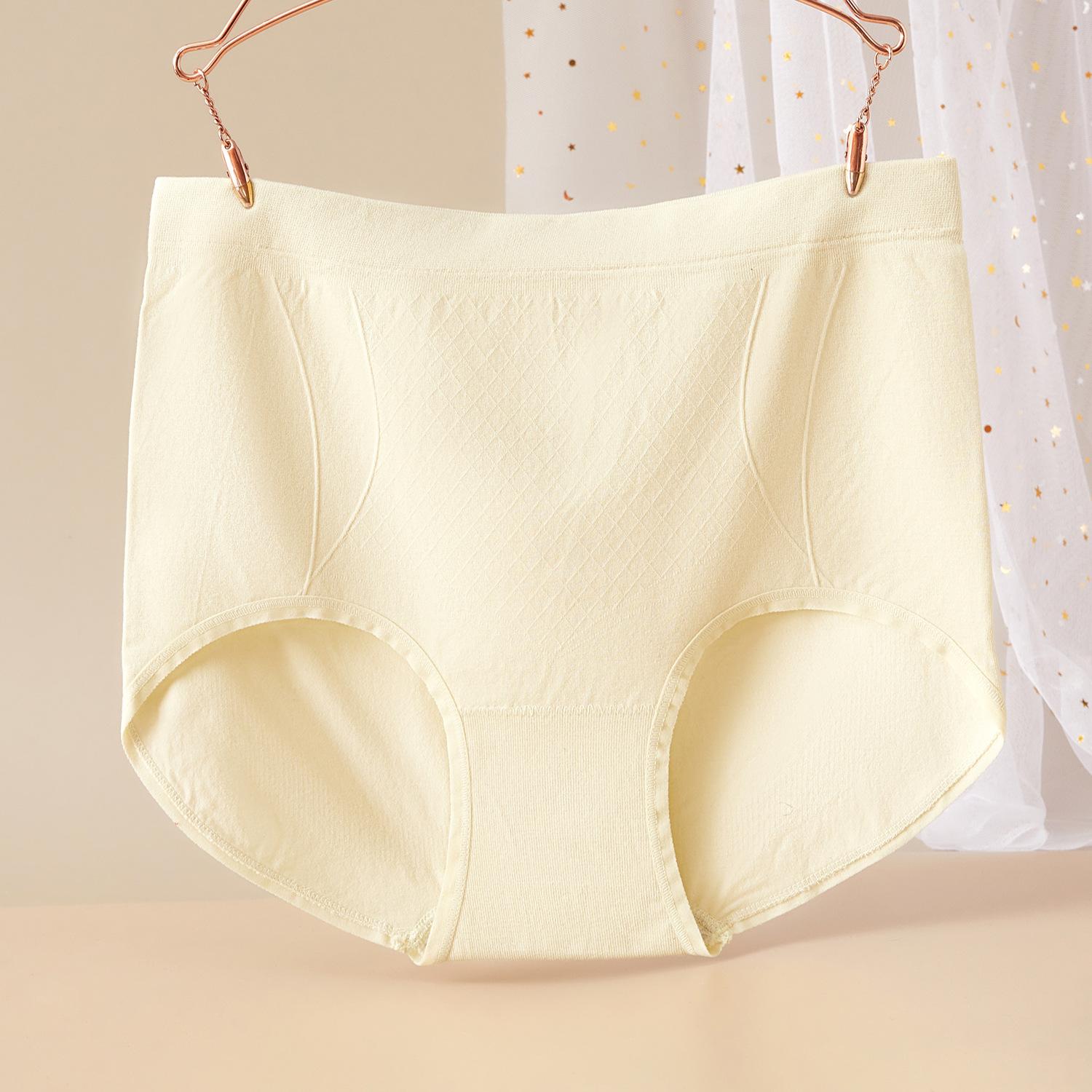 Talla grande color sólido algodón desnudo amoníaco sin costuras calzones de cintura alta señoras grasa mm200 kg algodón de alta elasticidad entrepierna