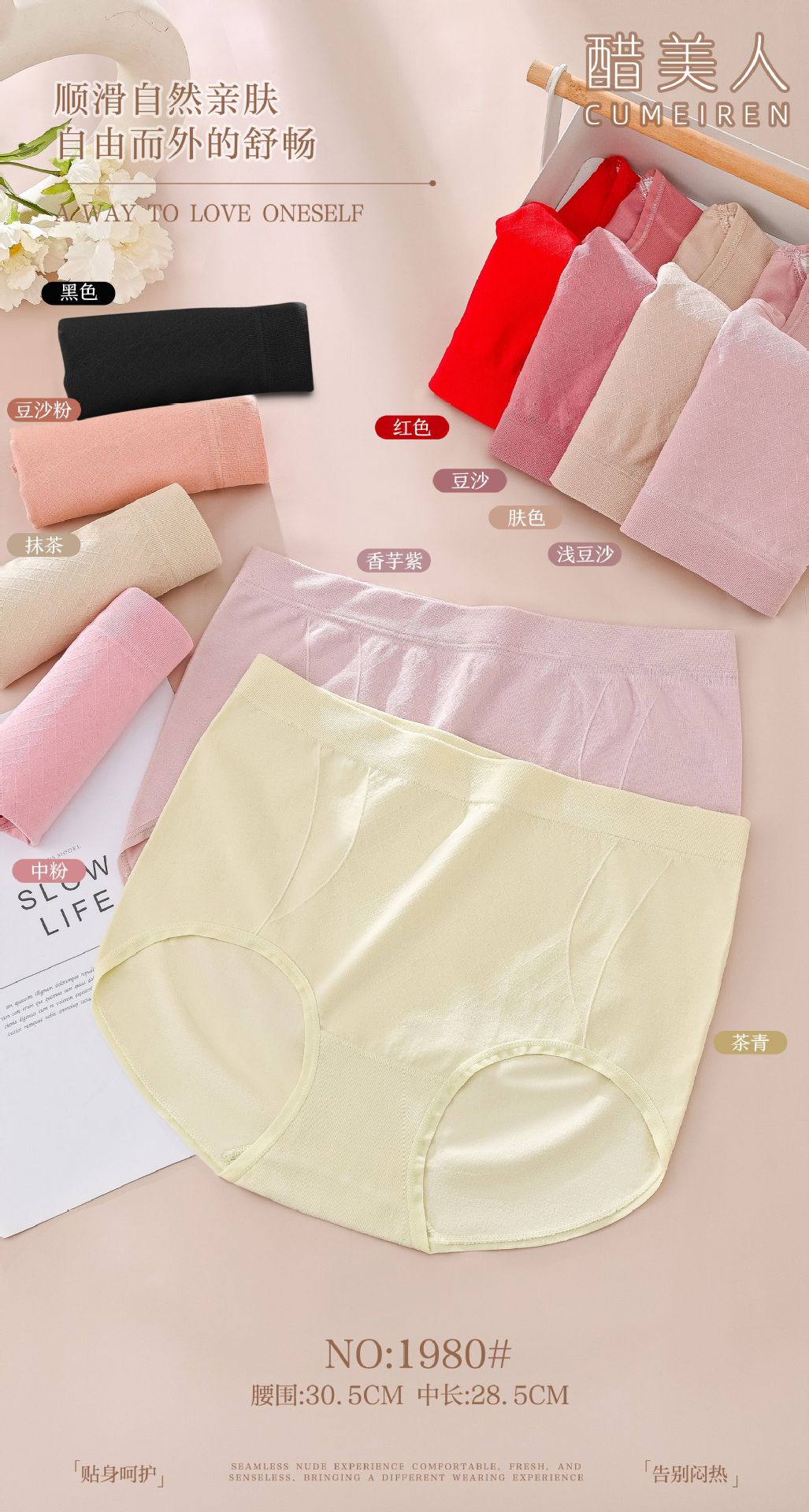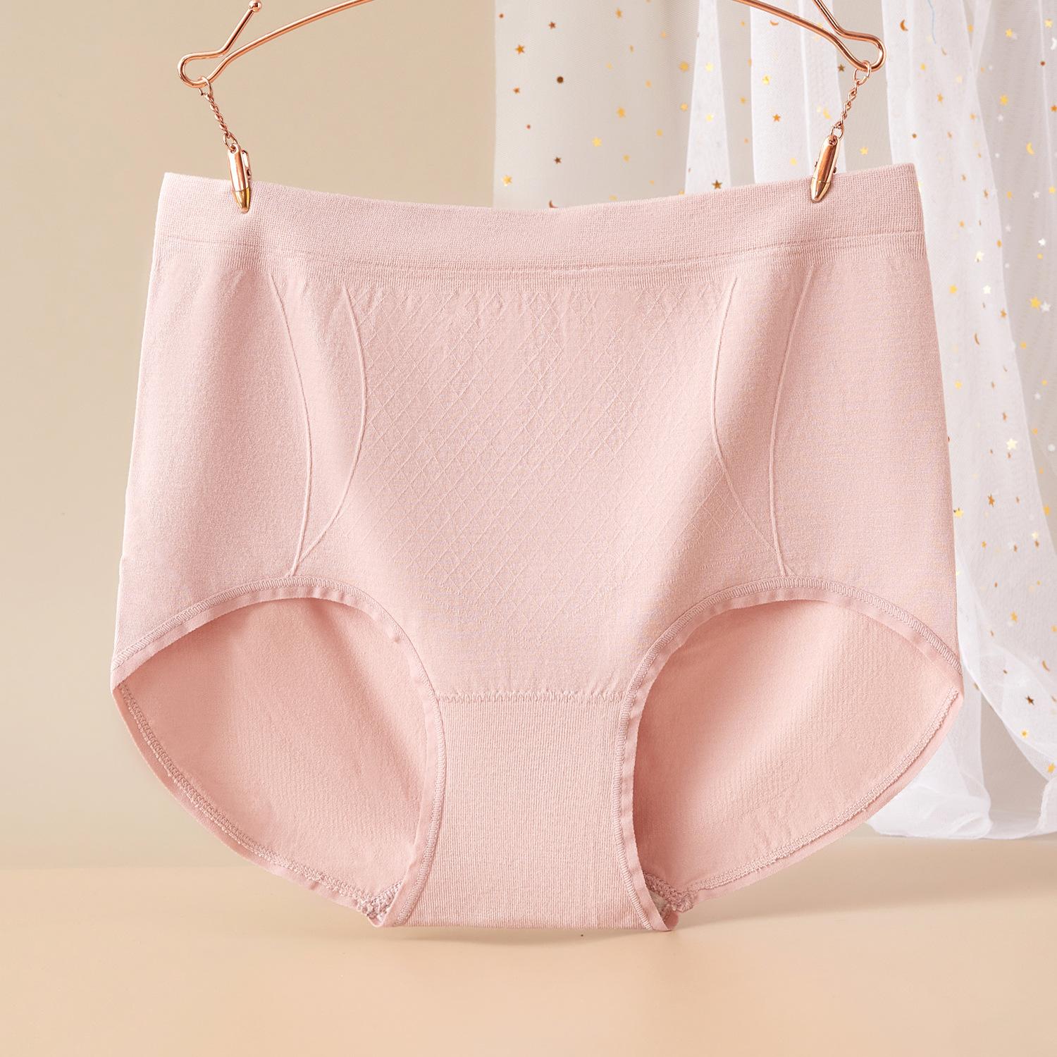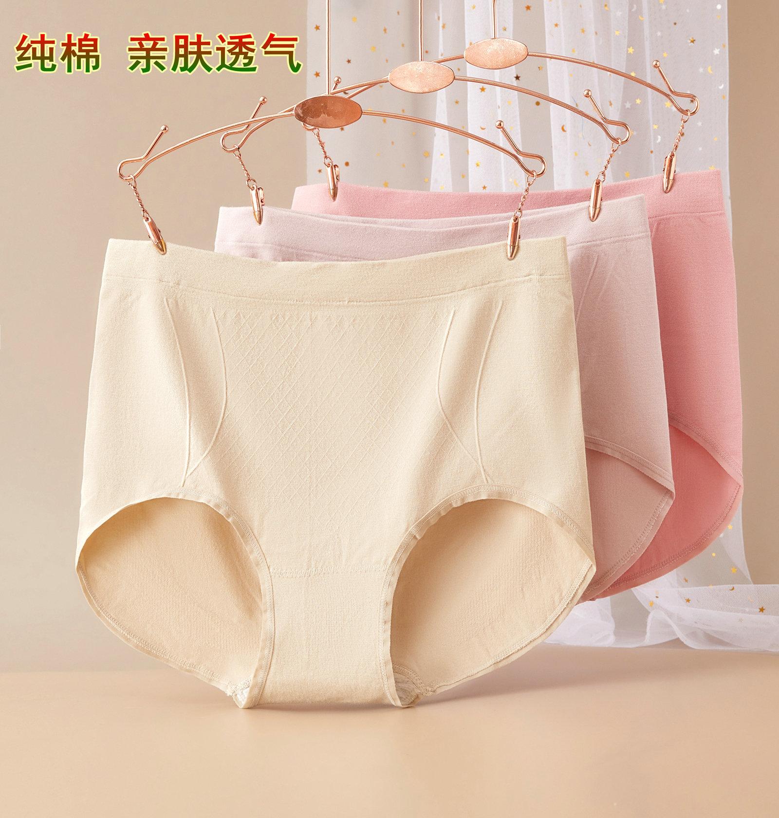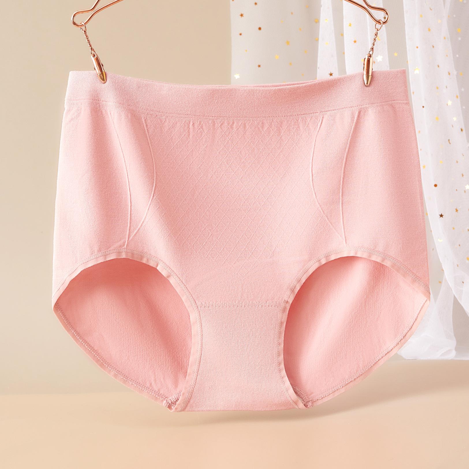 Talla grande color sólido algodón desnudo amoníaco sin costuras calzones de cintura alta señoras grasa mm200 kg algodón de alta elasticidad entrepierna