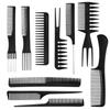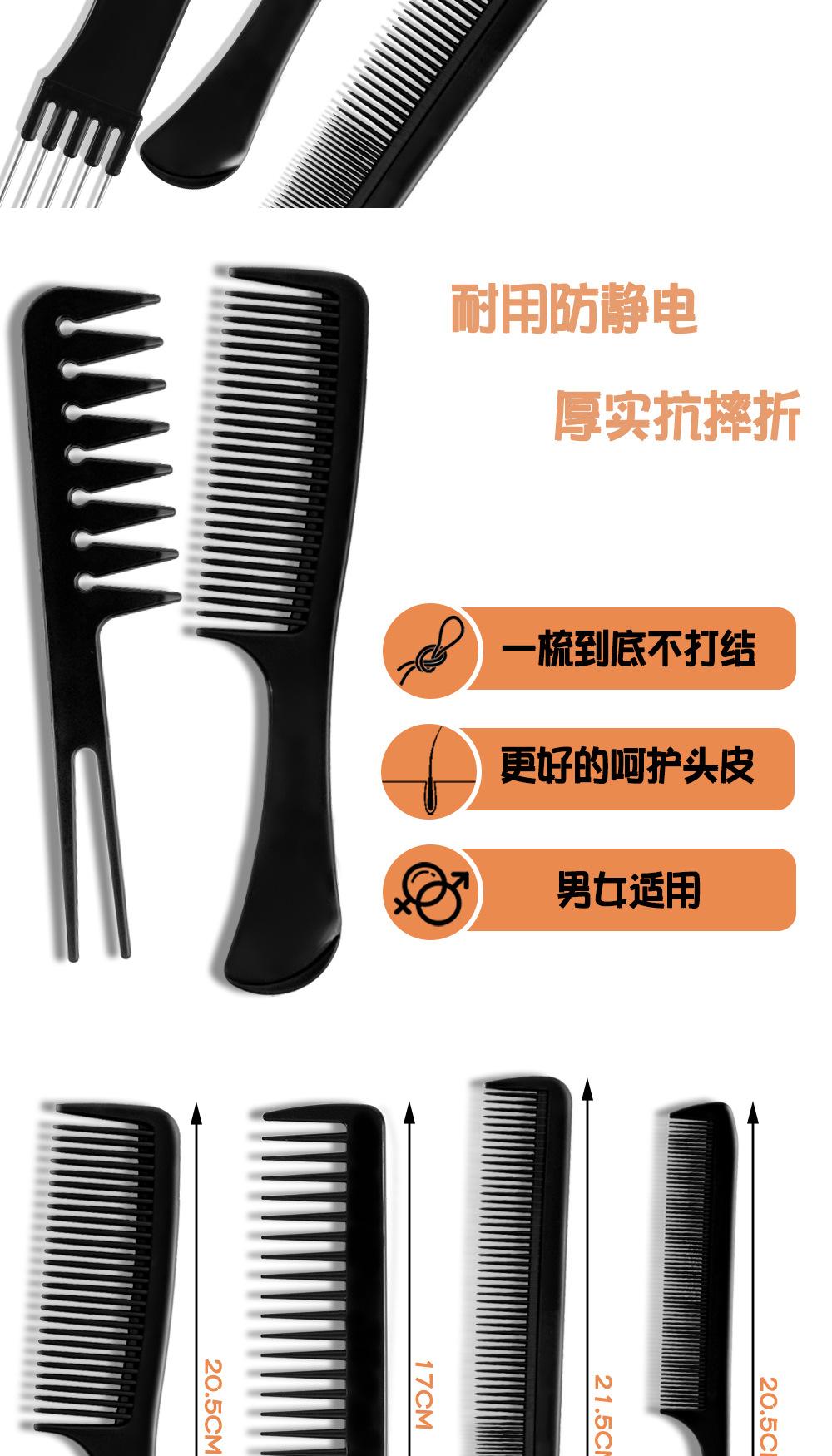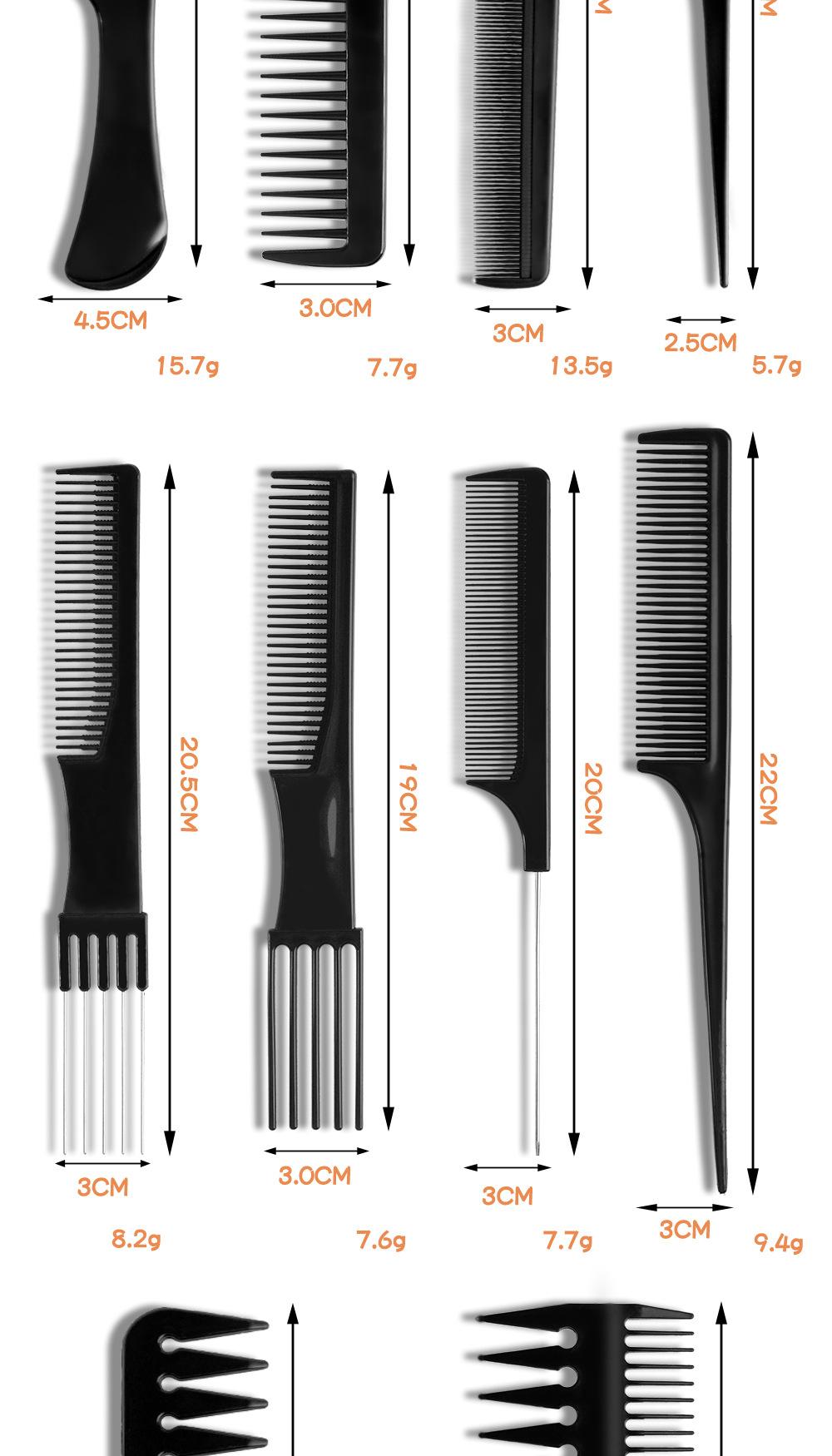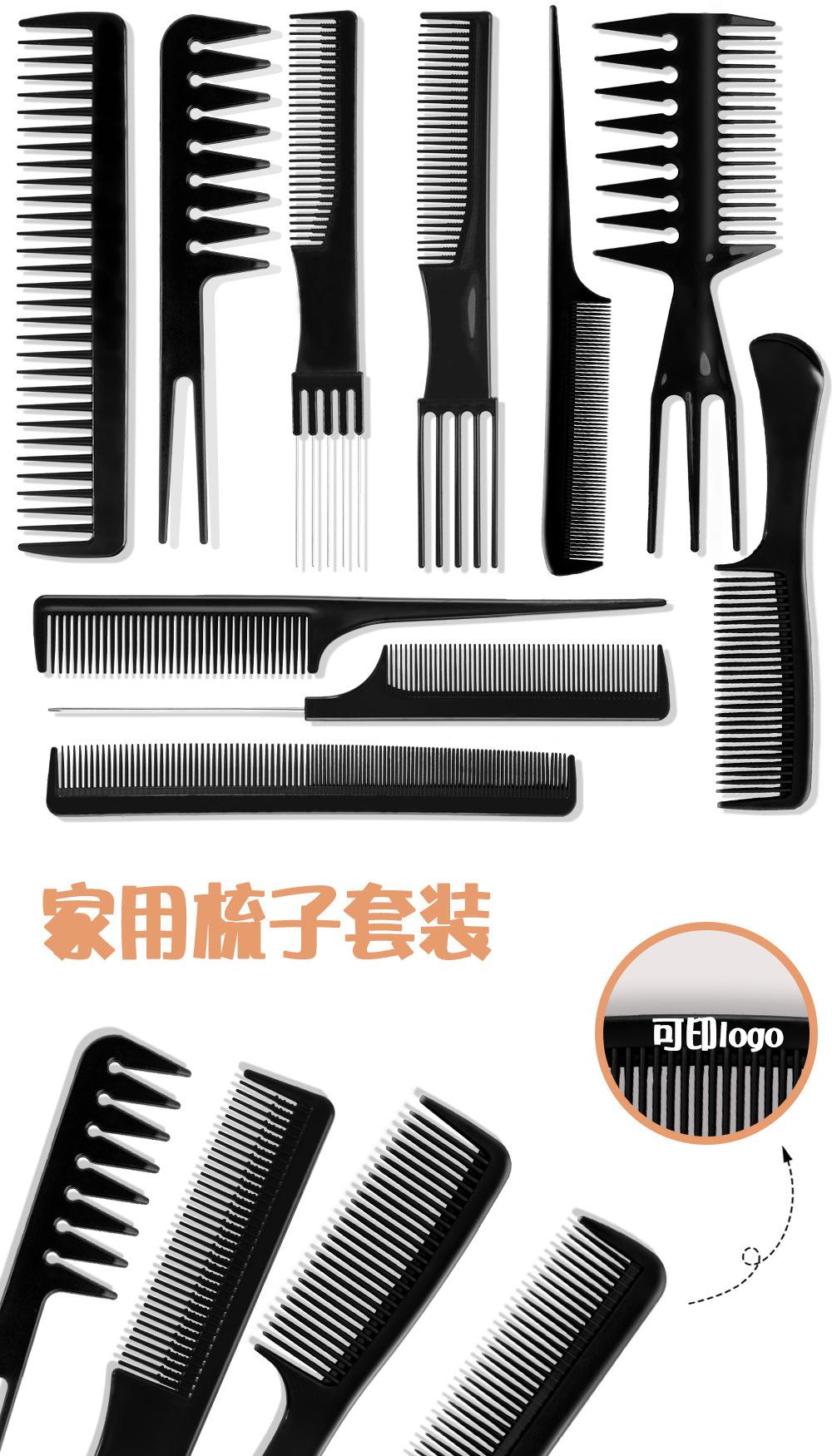 Fábrica en stock peine juego de diez piezas de plástico negro herramientas de peluquería peluquería maquillaje peinado peine exclusivo transfronterizo