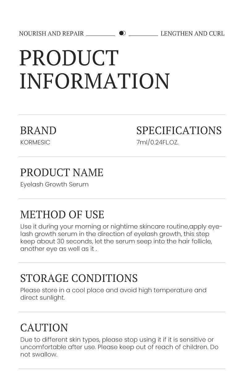 KORMESIC eyelash growth liquid 7ml [only for foreign trade export sales, domestic sales are prohibited, purchase is the default disclaimer and responsibility]