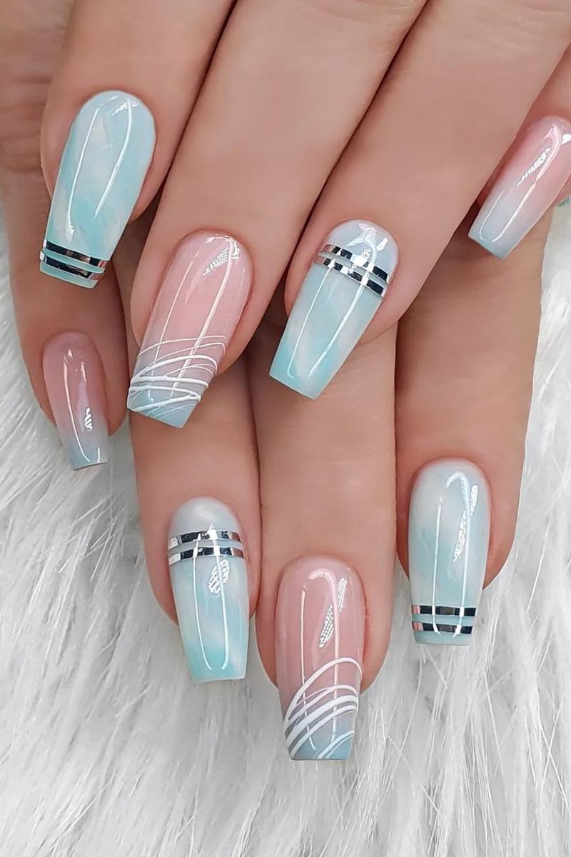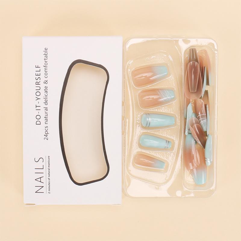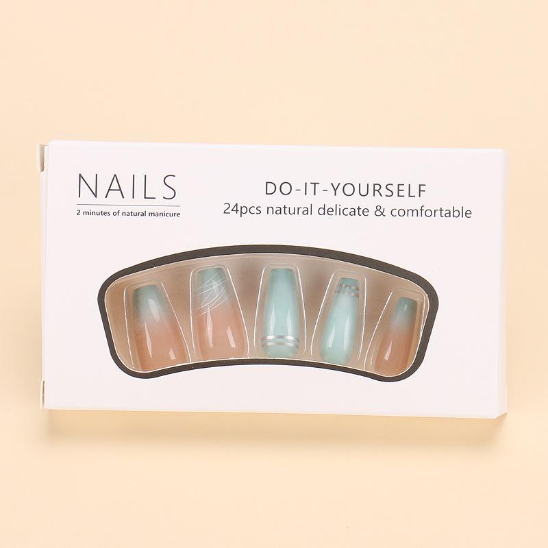 Compra Explosiones transfronterizas: Armadura con degradado, rayas de contraste, borde plateado, manicura, acabado largo, 24 uñas postizas. al por mayor en Joom.pro
