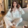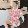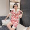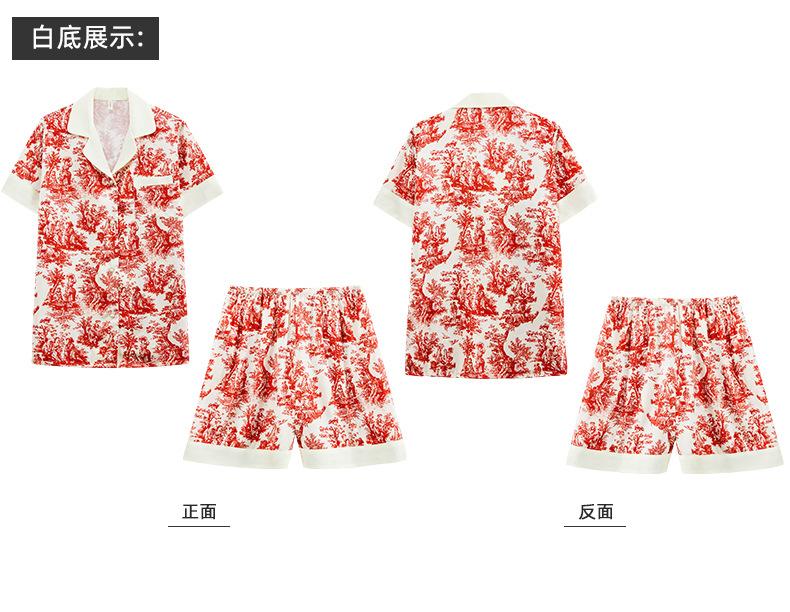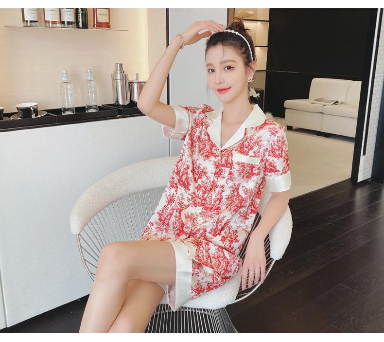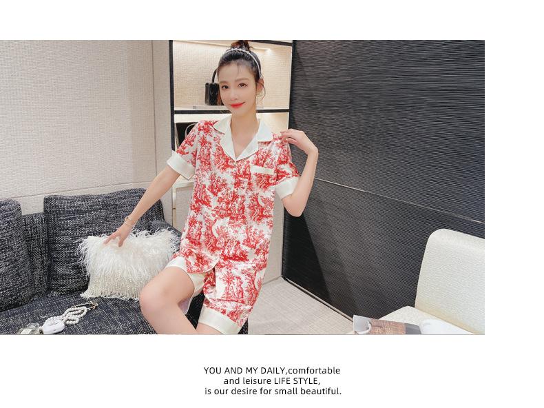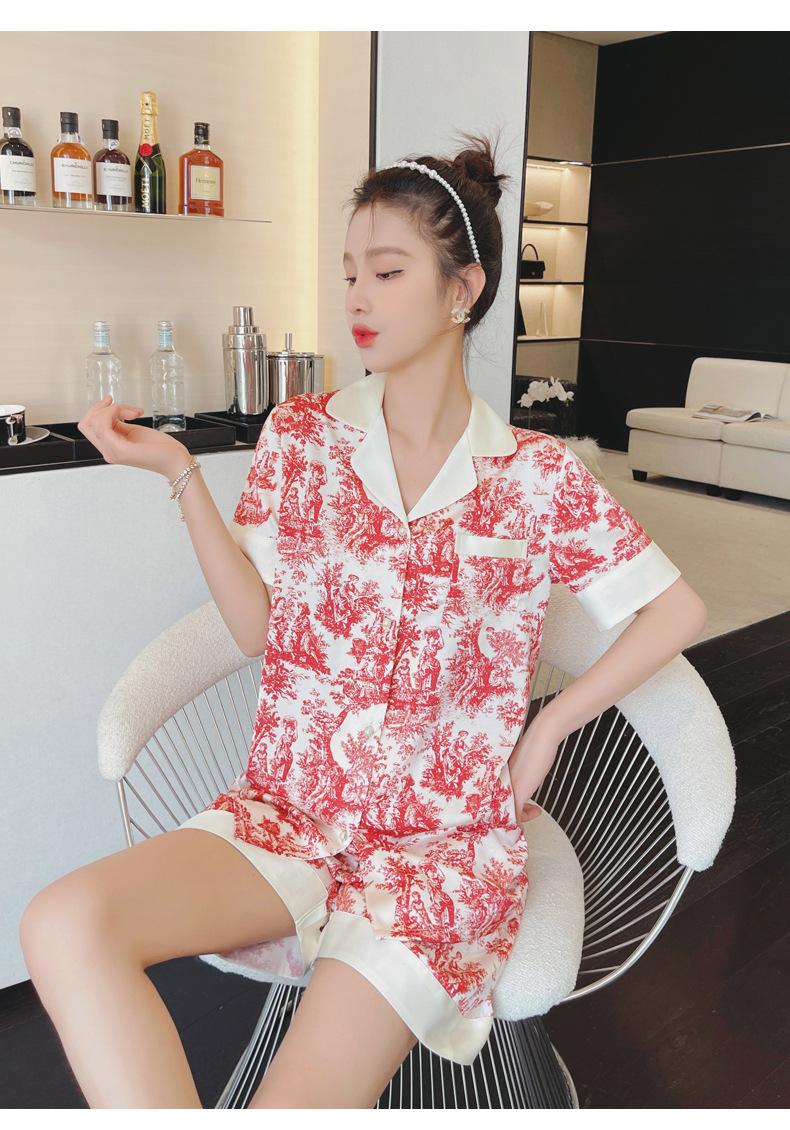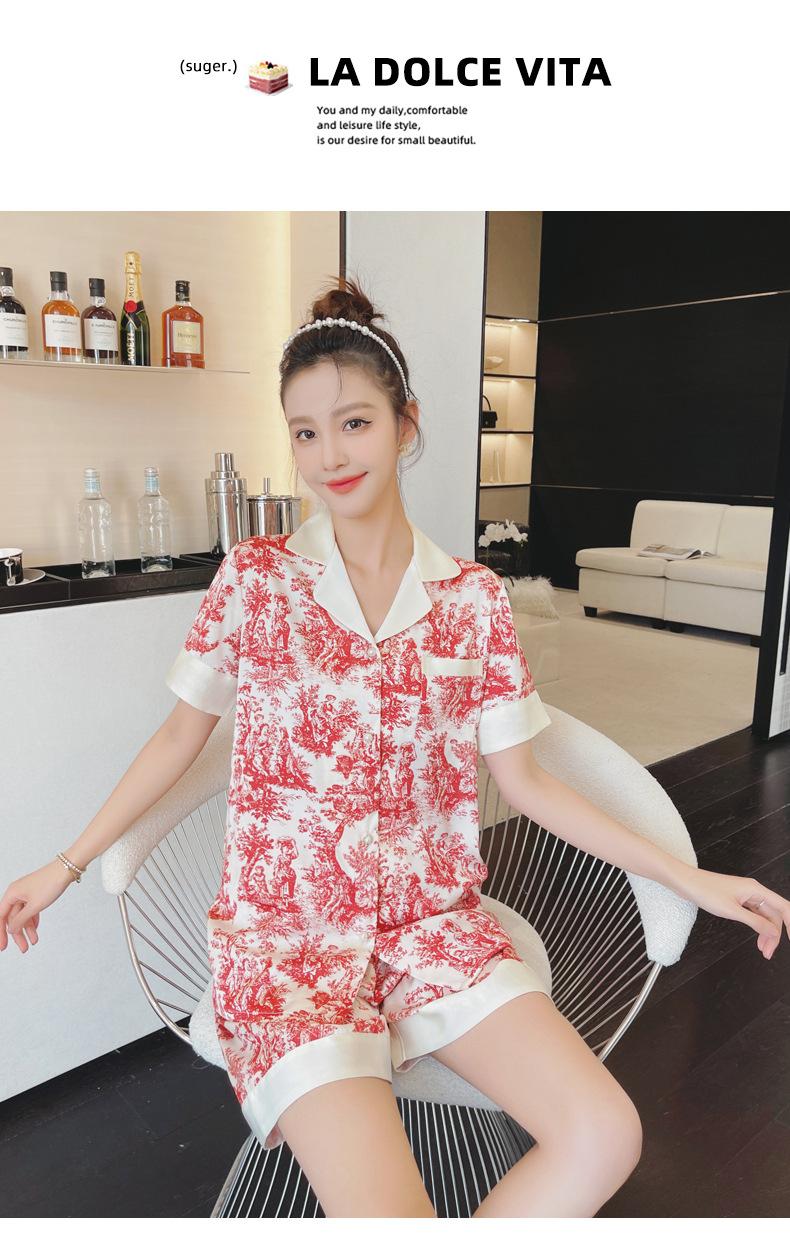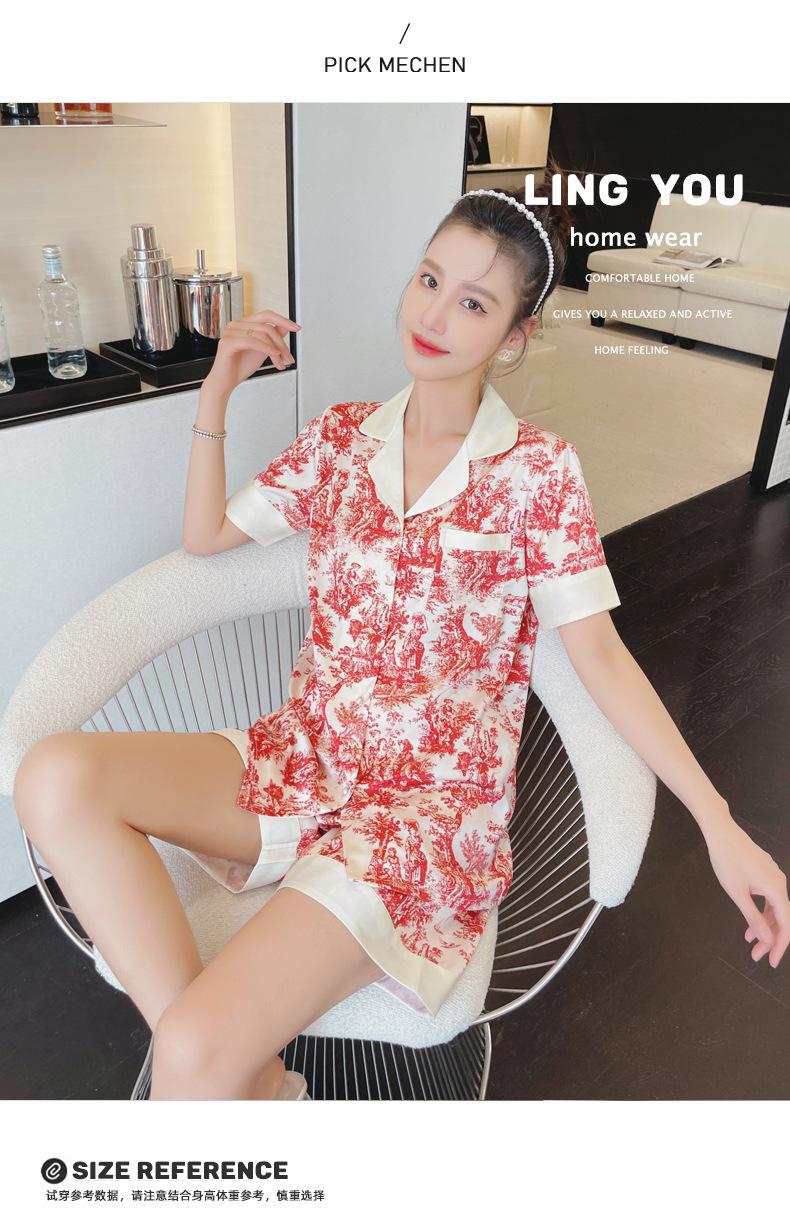 Pijamas de seda de hielo para mujer, de verano, de manga corta, finos, con paisaje, para estudiantes, bonito conjunto de dos piezas de seda, ropa fresca para el hogar, primavera y verano.