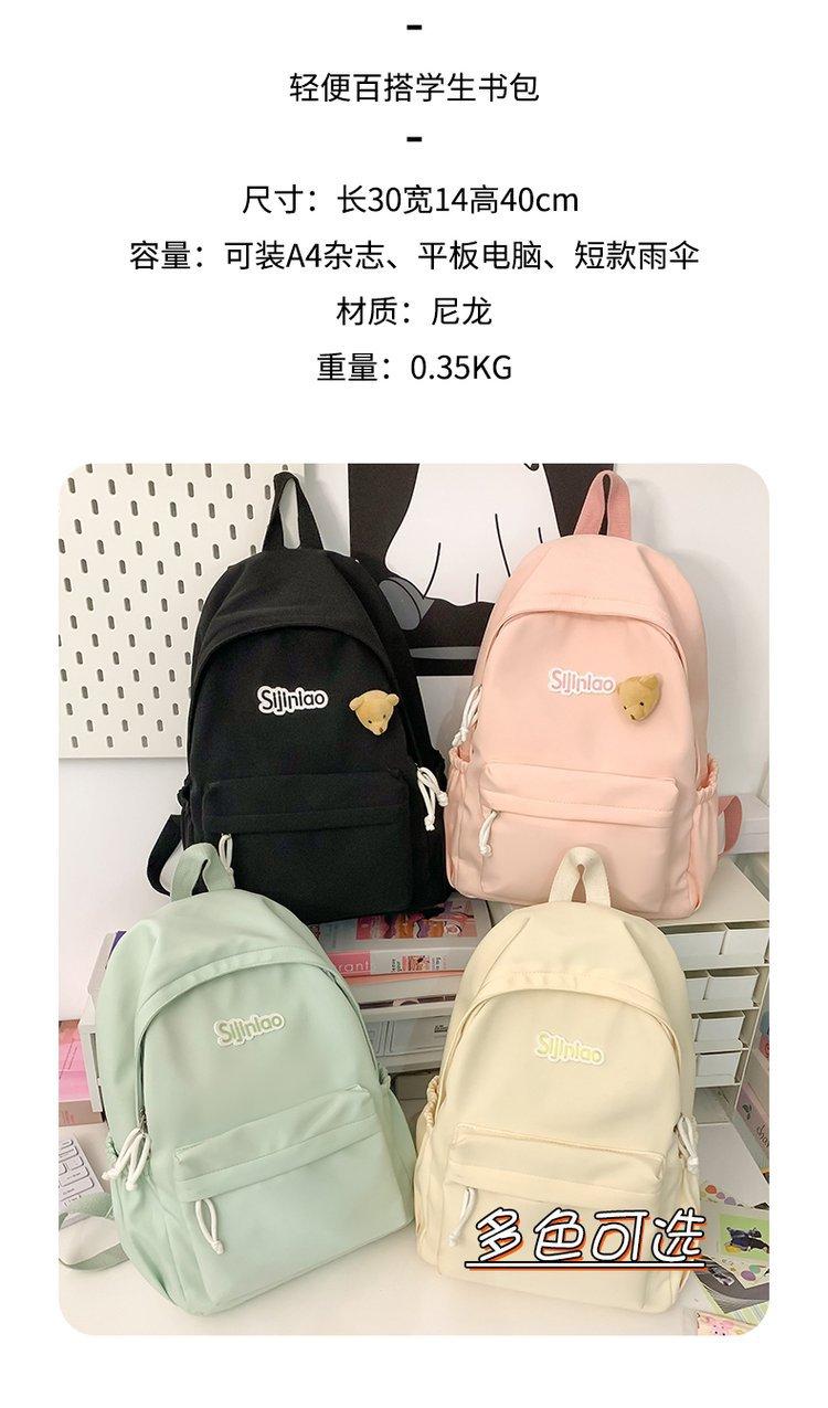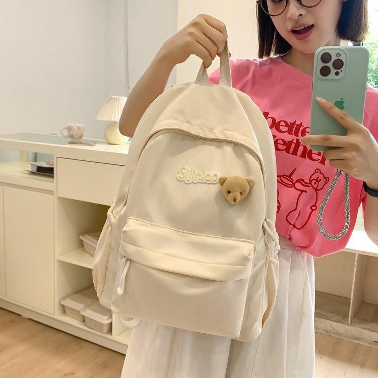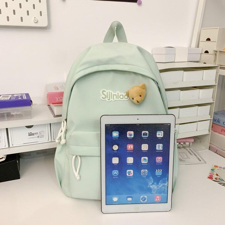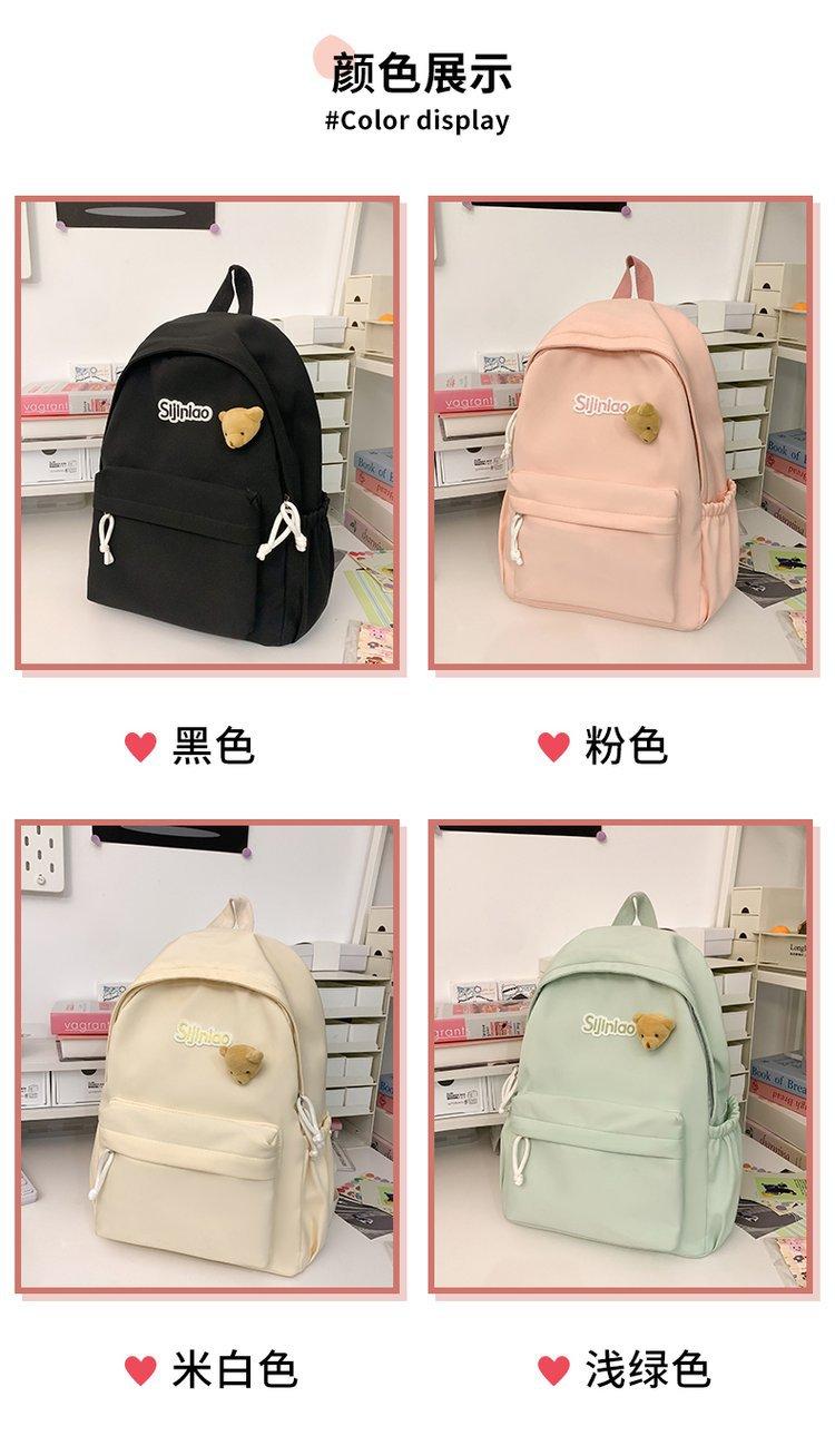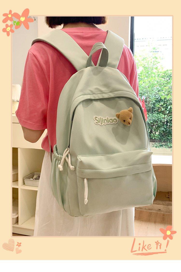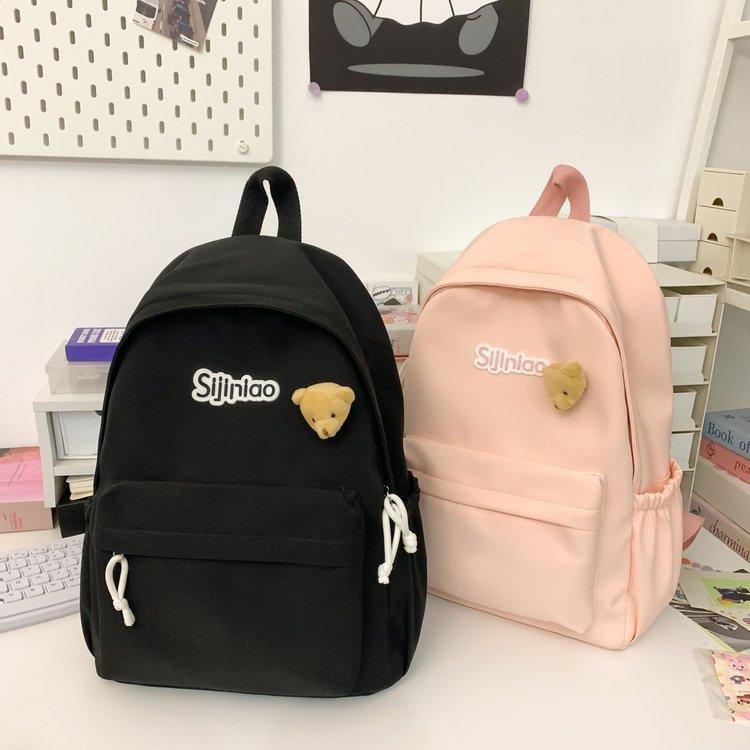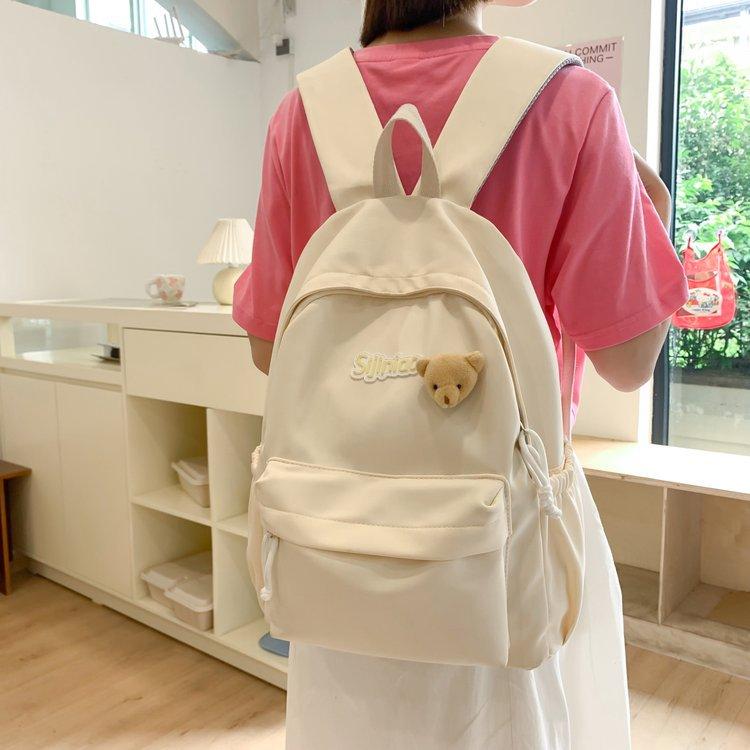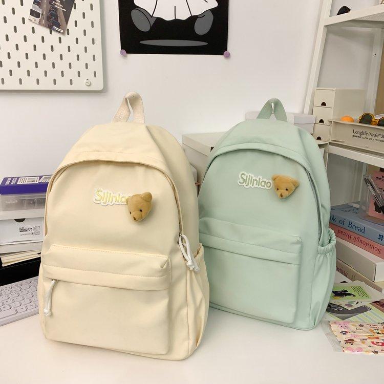 Mochila escolar japonesa de color sólido, bonita, estilo coreano, con diseño de oso, para estudiantes universitarios, de secundaria.