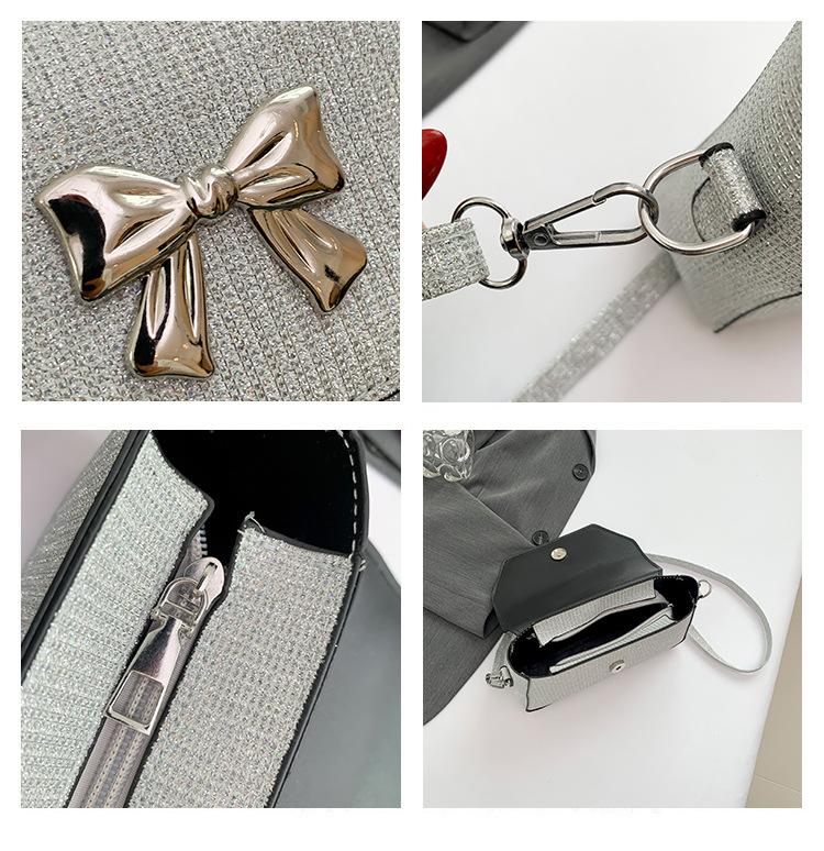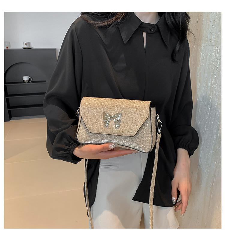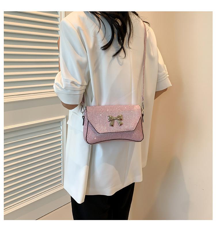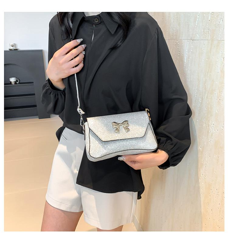 Bolso de cadena de diseño de nicho, novedad de verano 2024, bolso de mujer con bonito lazo, bolso bandolera con lentejuelas personalizado.