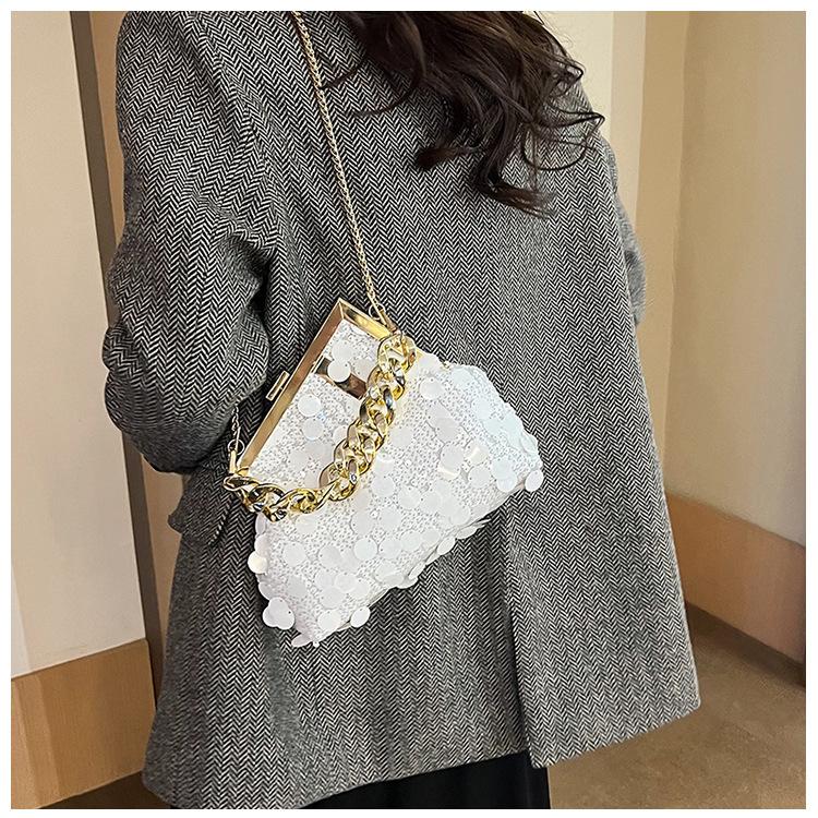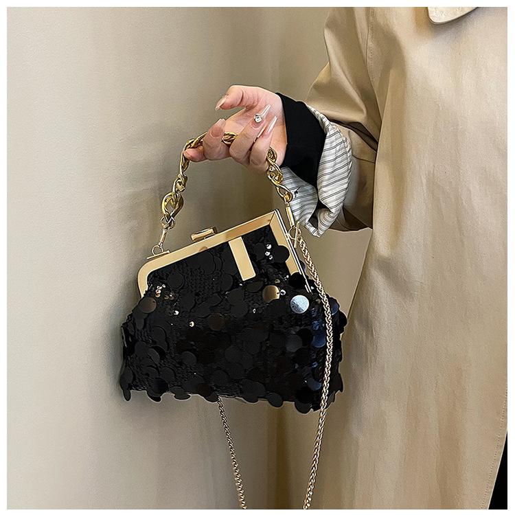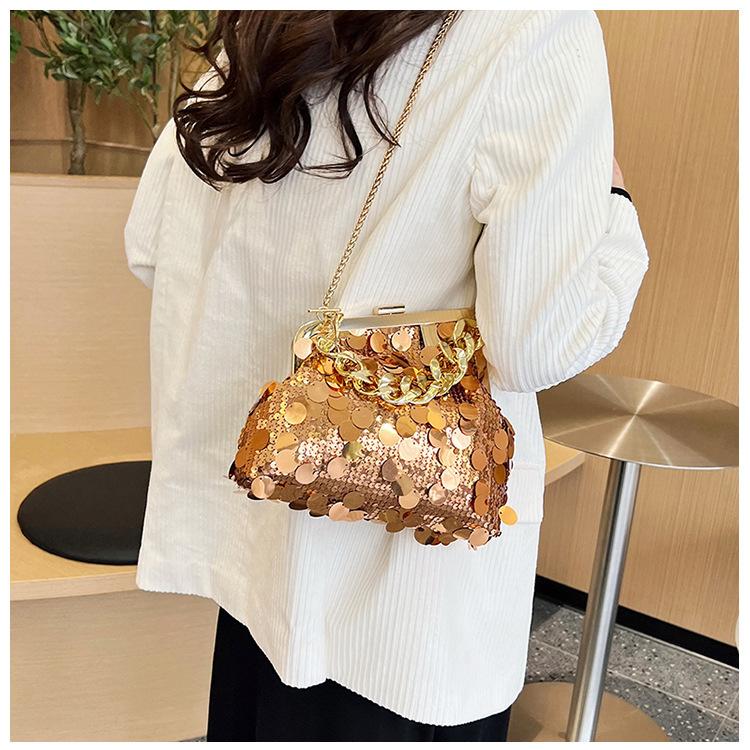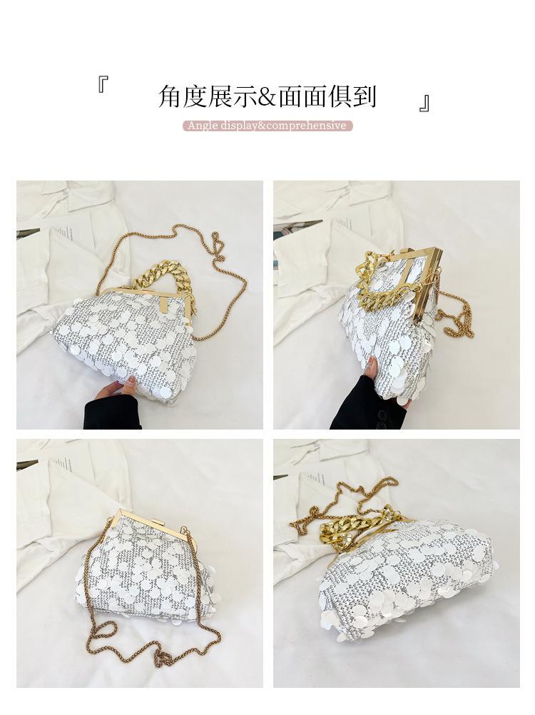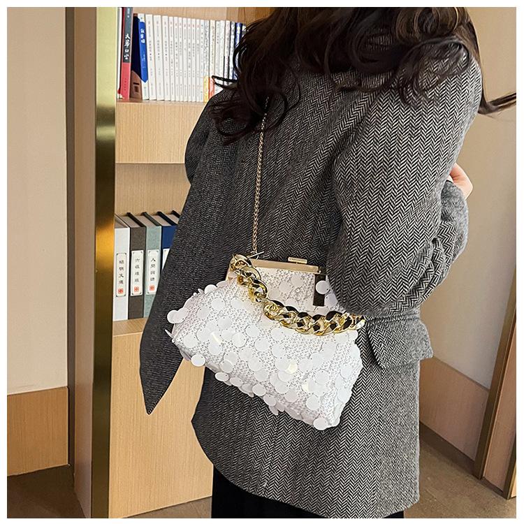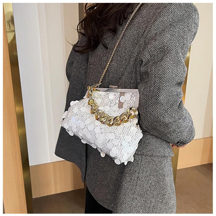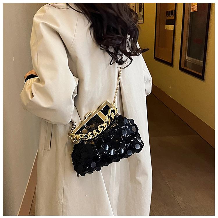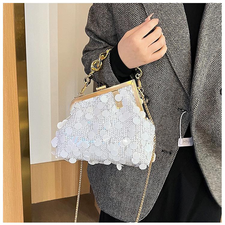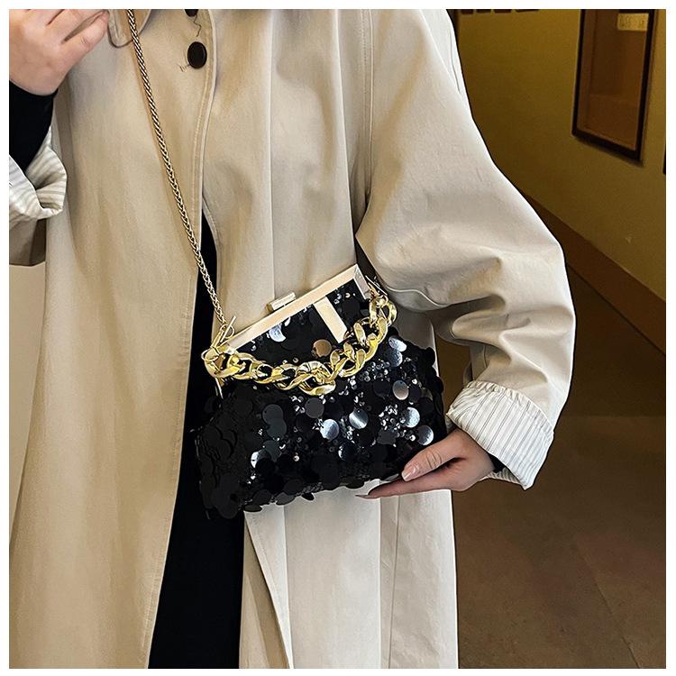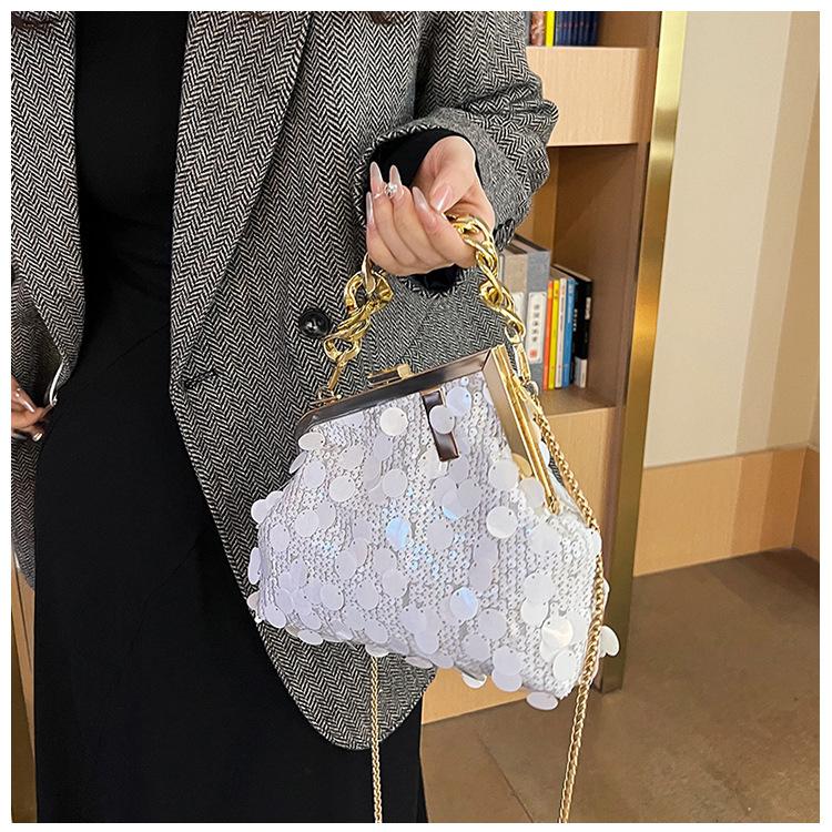 Bolso texturizado para mujer estilo coreano, nuevo bolso bandolera de cadena de moda 2024, bolso de clip de moda para hombro con cadena de lentejuelas