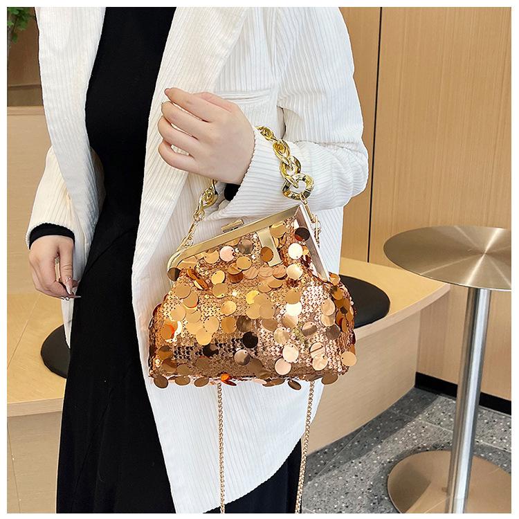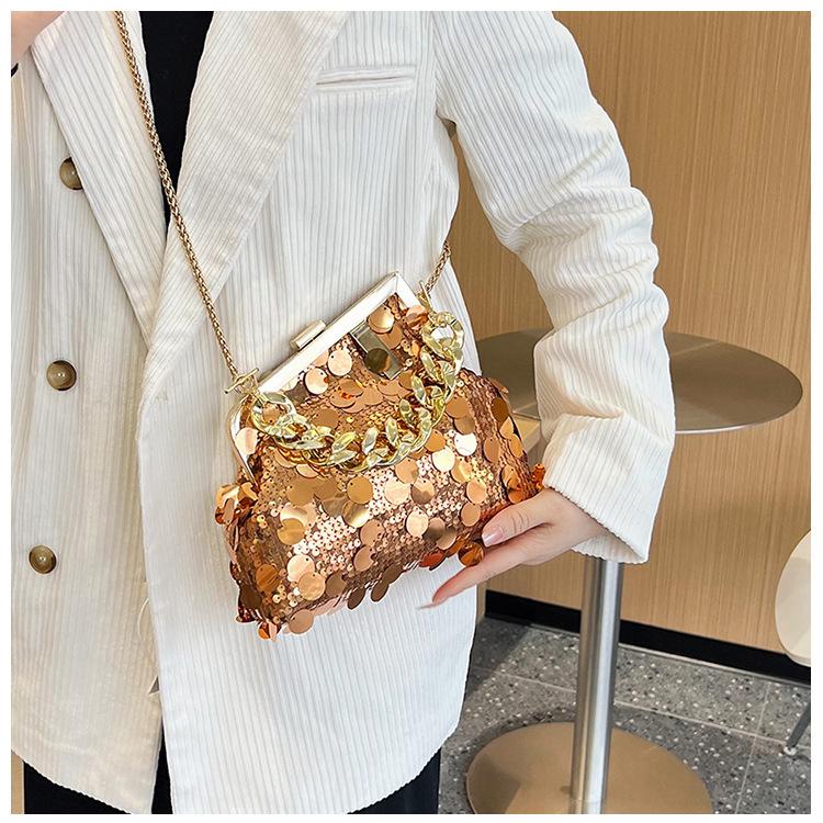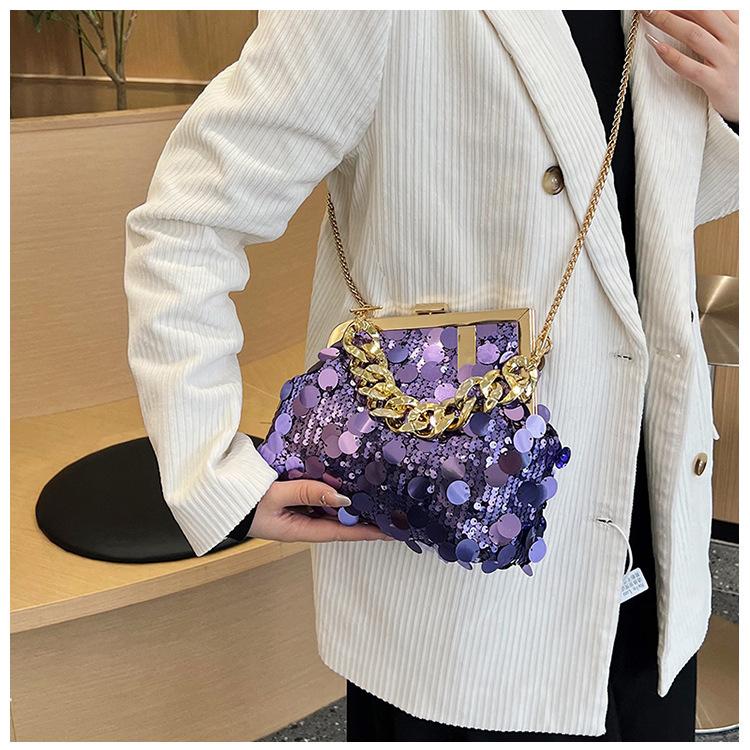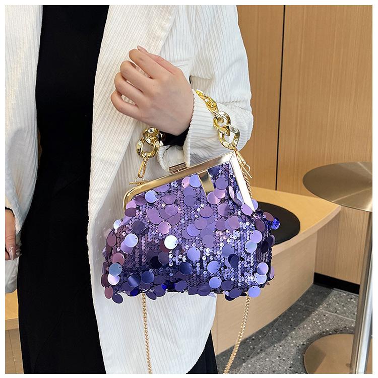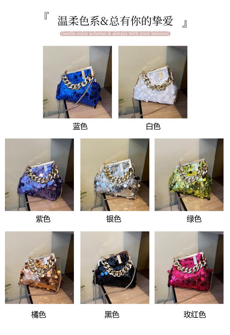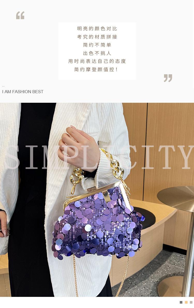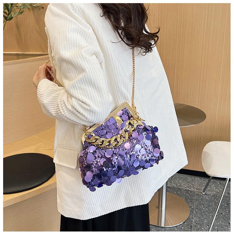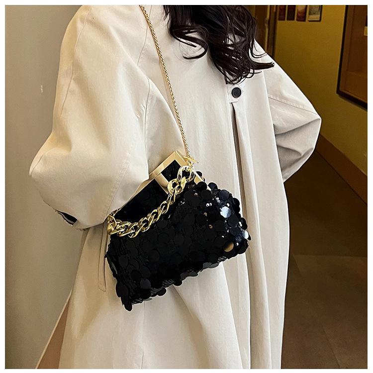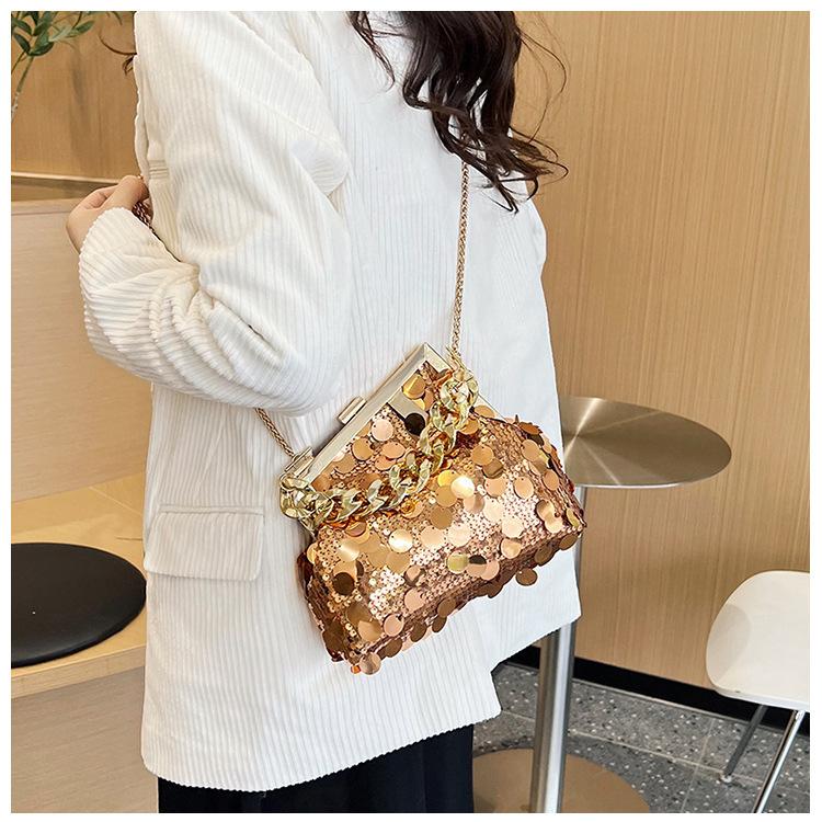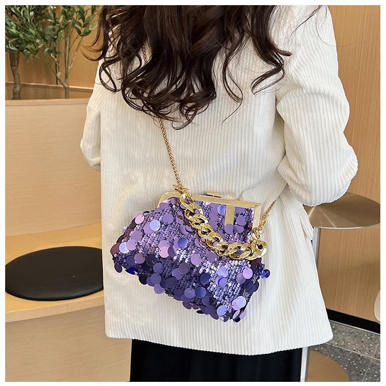 Bolso texturizado para mujer estilo coreano, nuevo bolso bandolera de cadena de moda 2024, bolso de clip de moda para hombro con cadena de lentejuelas