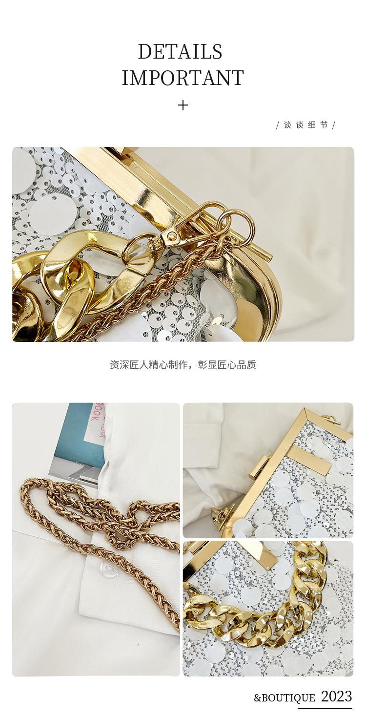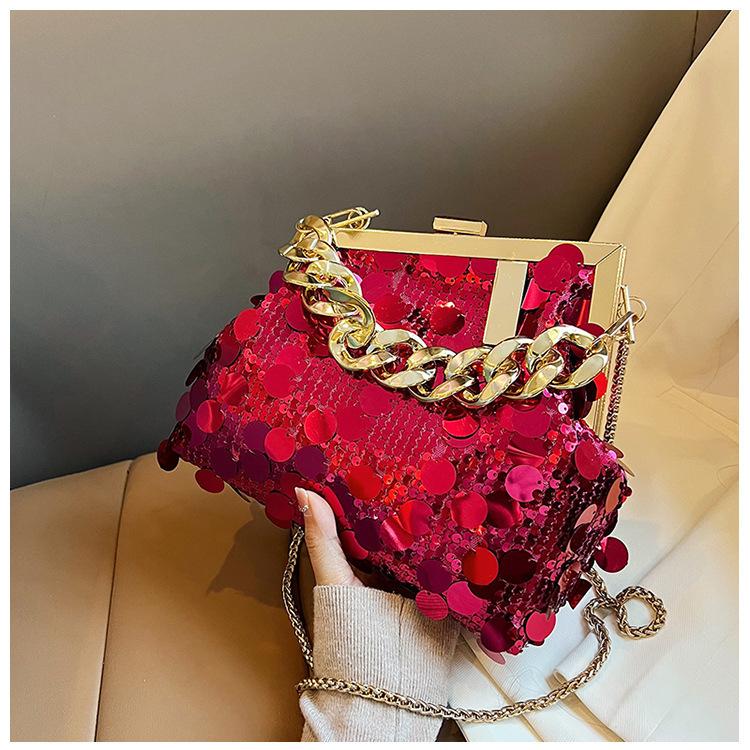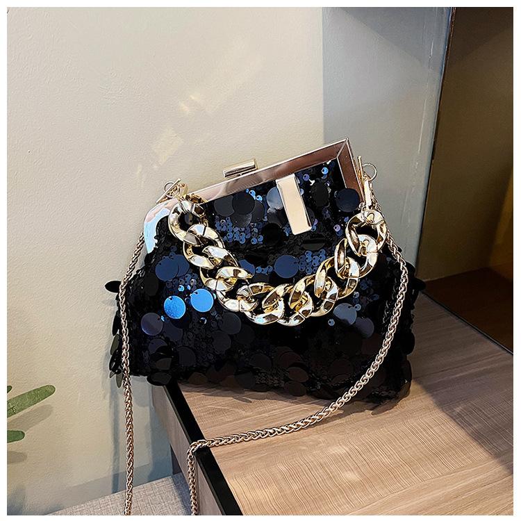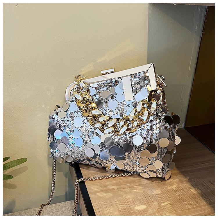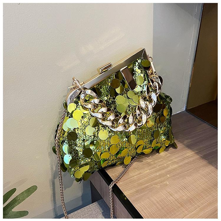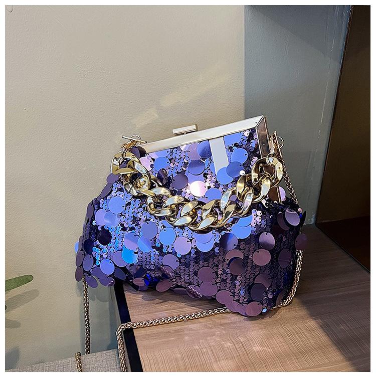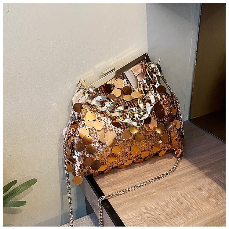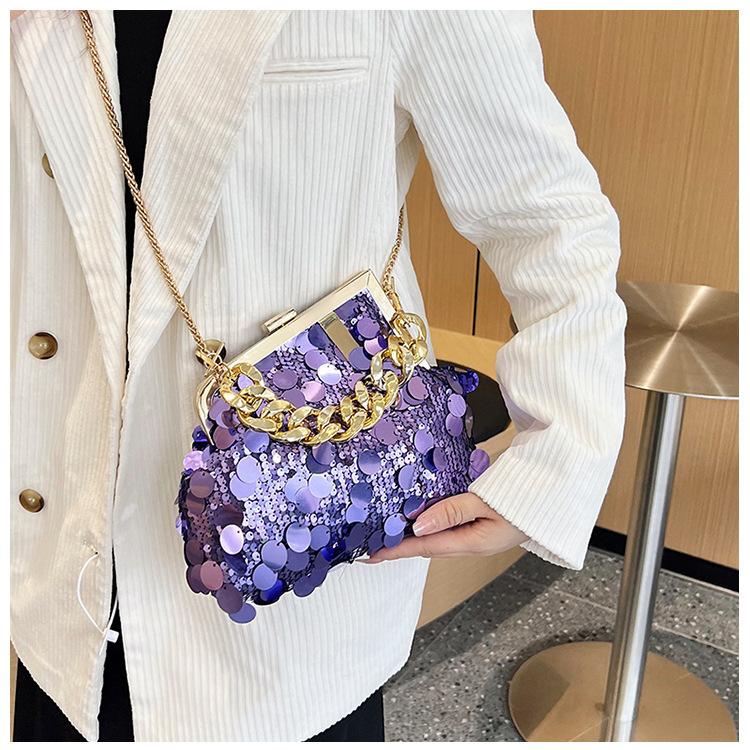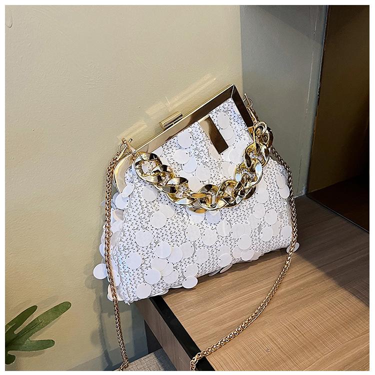 Bolso texturizado para mujer estilo coreano, nuevo bolso bandolera de cadena de moda 2024, bolso de clip de moda para hombro con cadena de lentejuelas