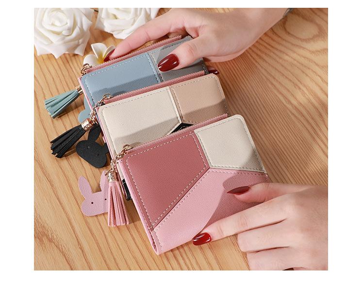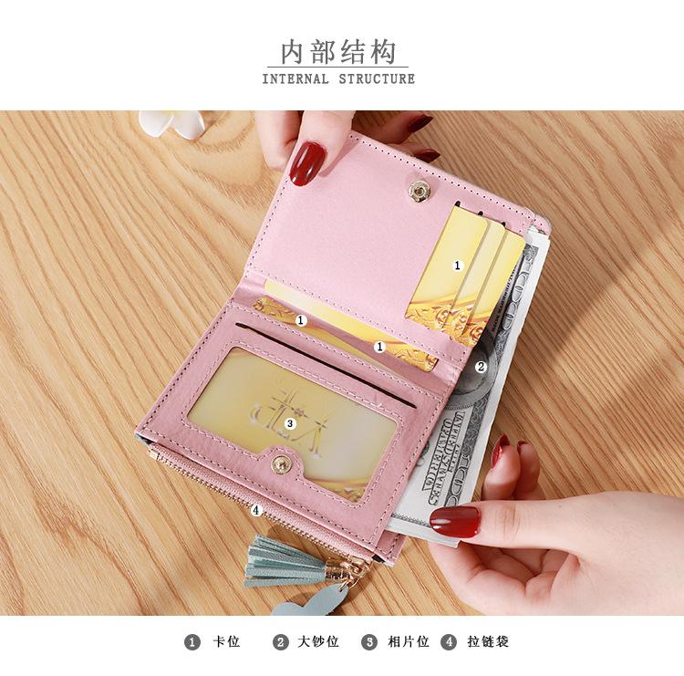 Ventas Directas de Fábrica 2020 Nueva Cartera Corta para Mujer con Cierre de Cremallera Estilo Coreano Borla Simple Versátil Monedero