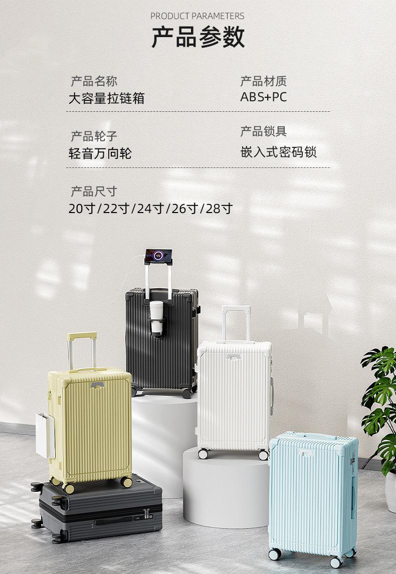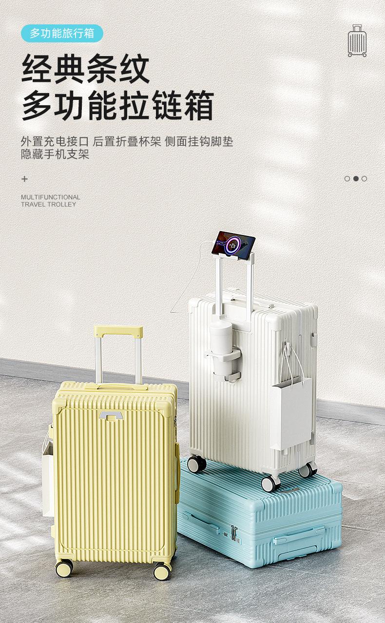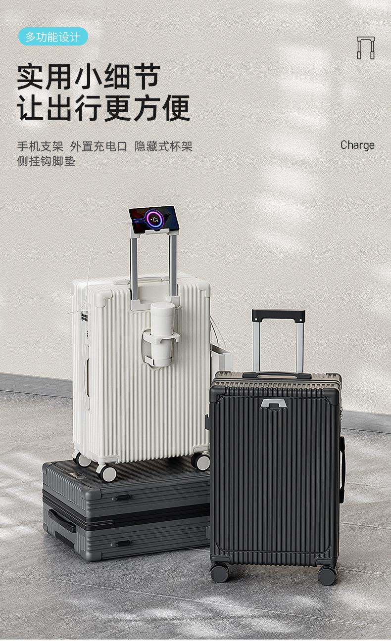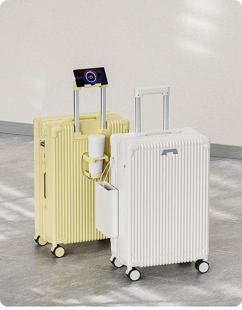 Maleta de equipaje para estudiante universitario, maleta con ruedas de gran capacidad, puerto de carga, portavasos