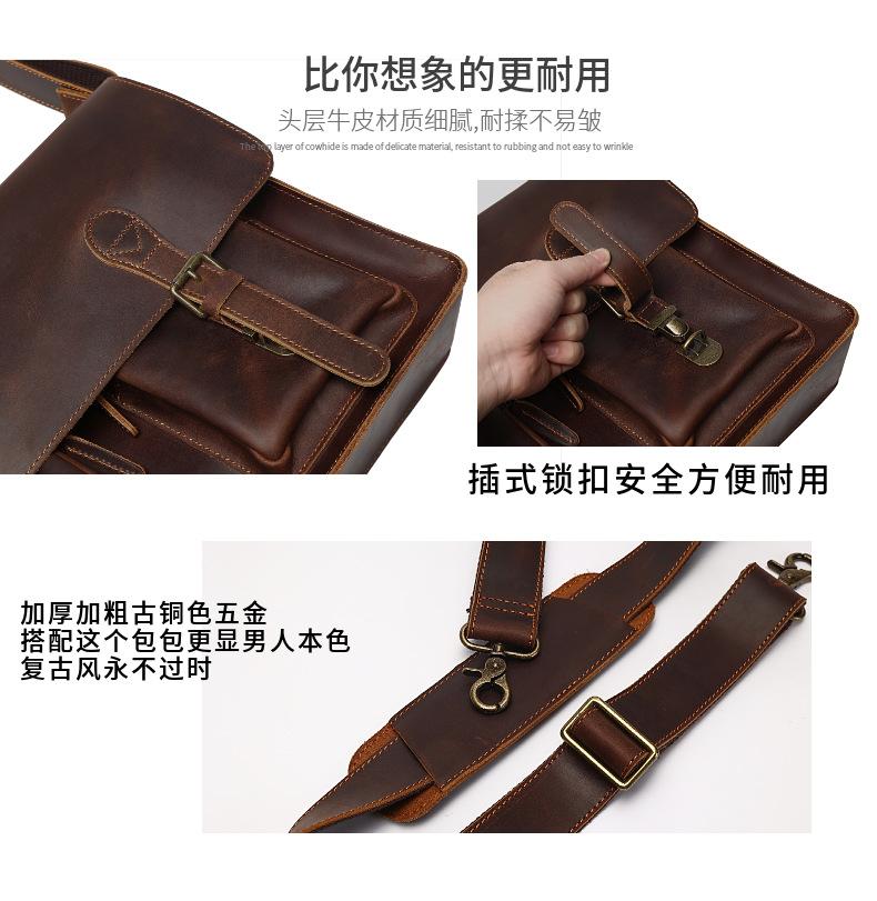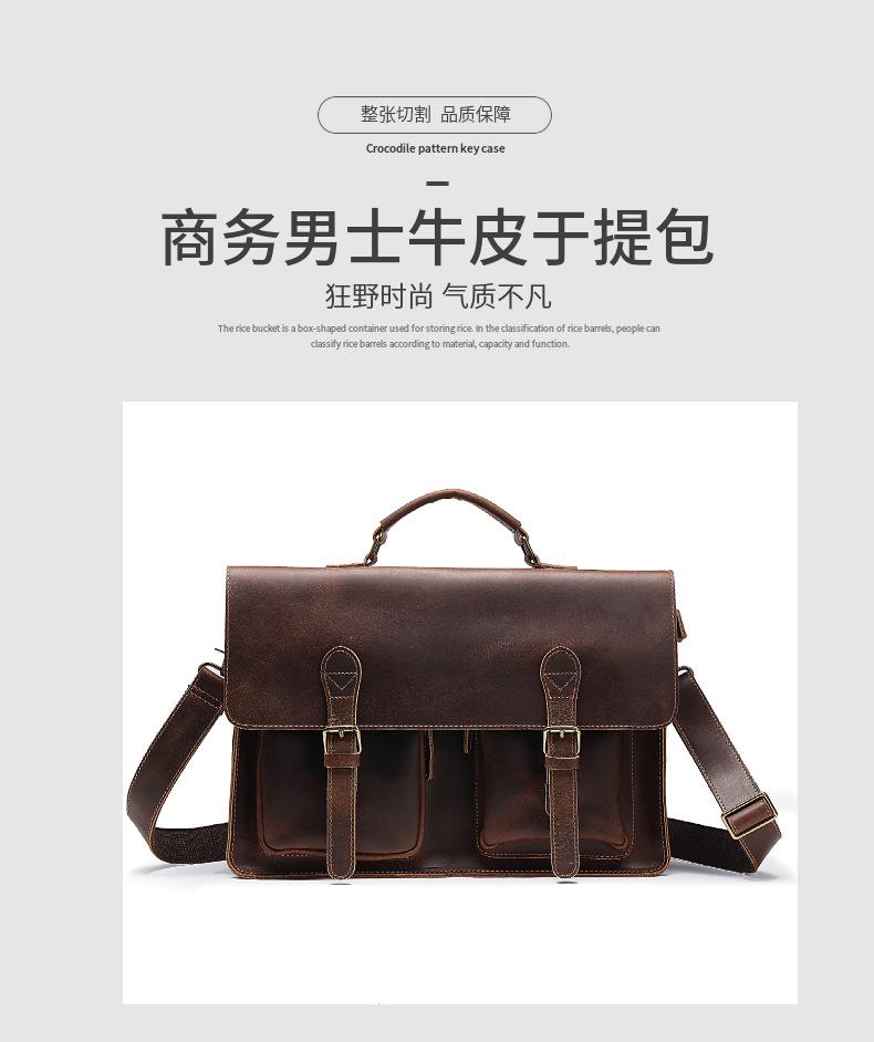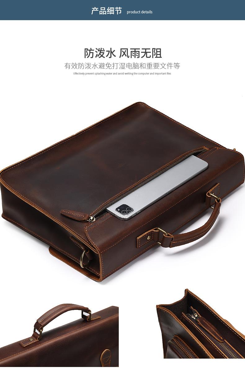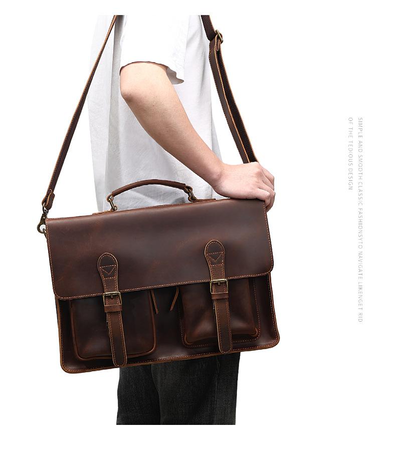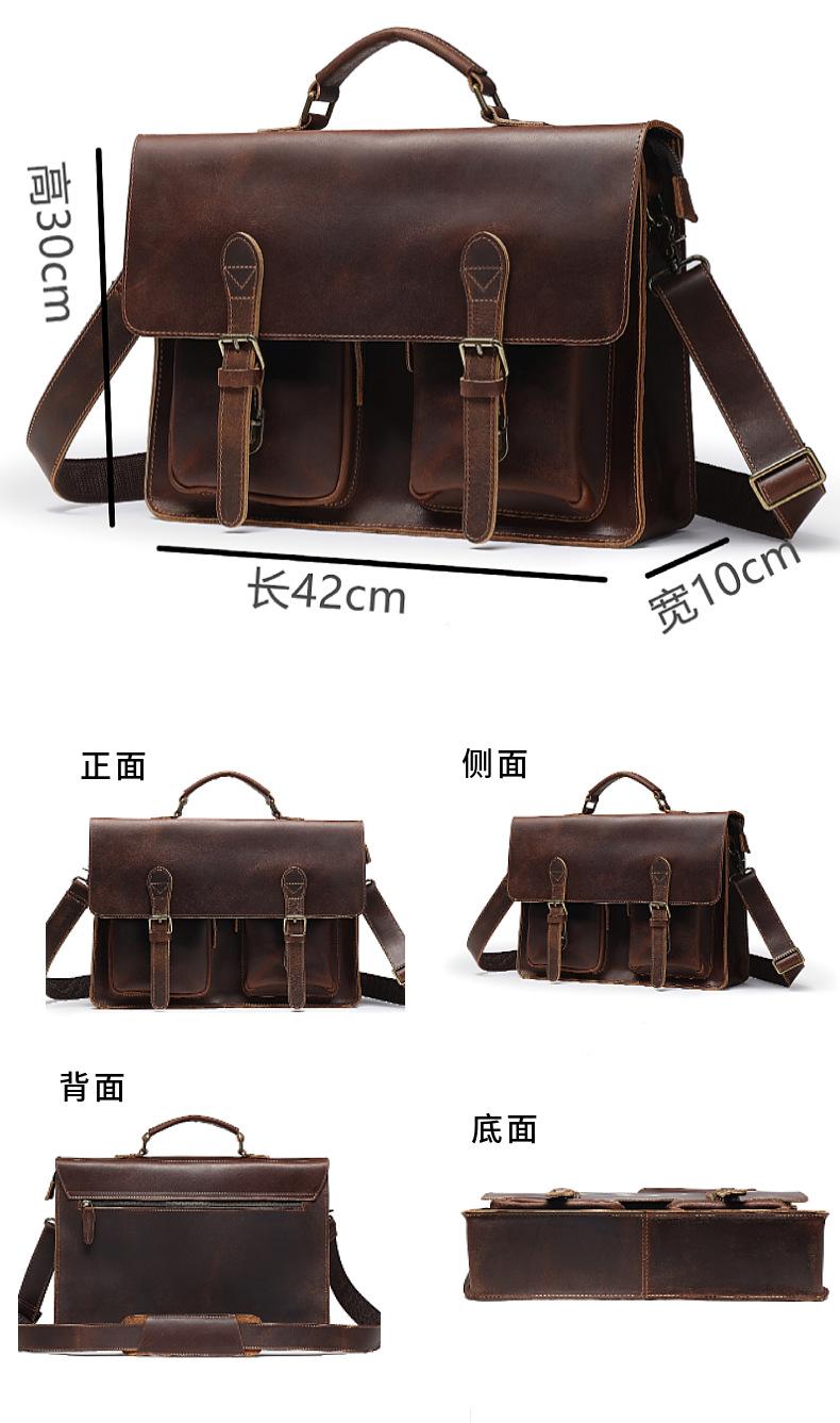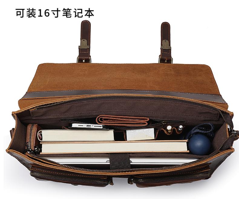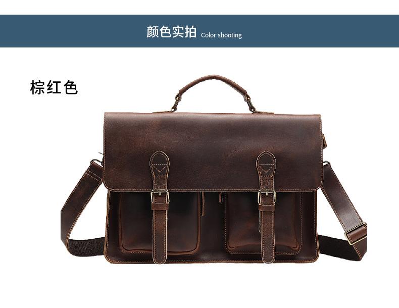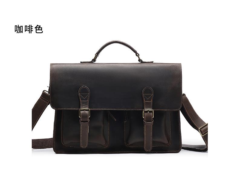 Bolso de mano de cuero genuino estilo retro para hombre, funda de cuero de Caballo Loco, bolso cruzado, maletín de negocios para portátil