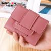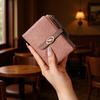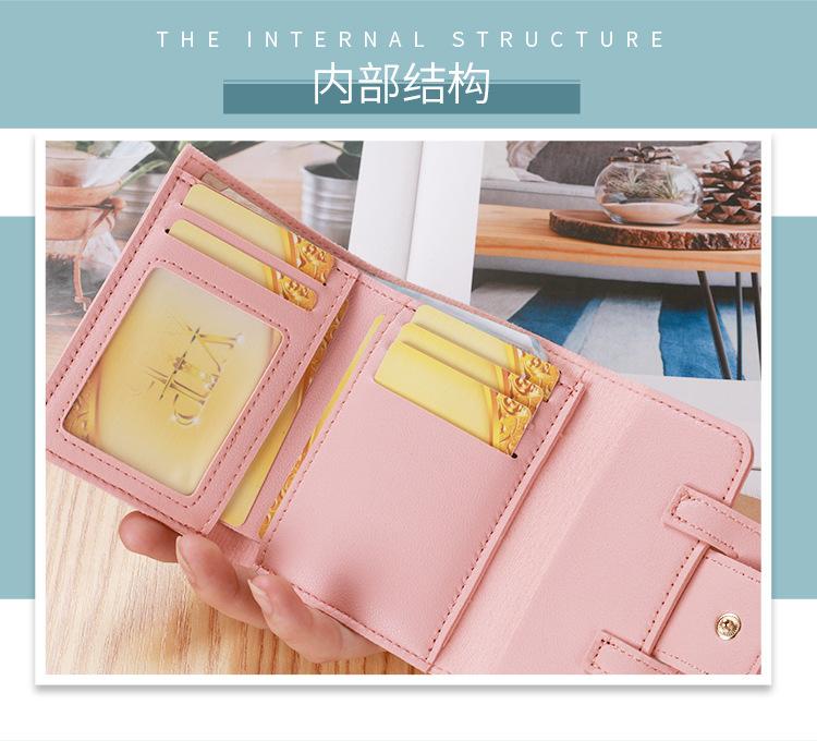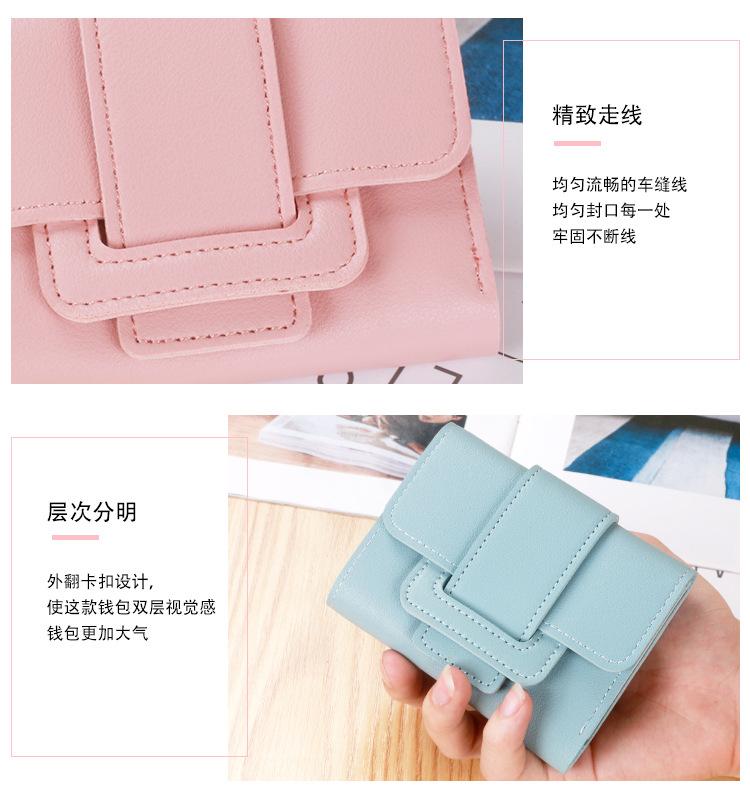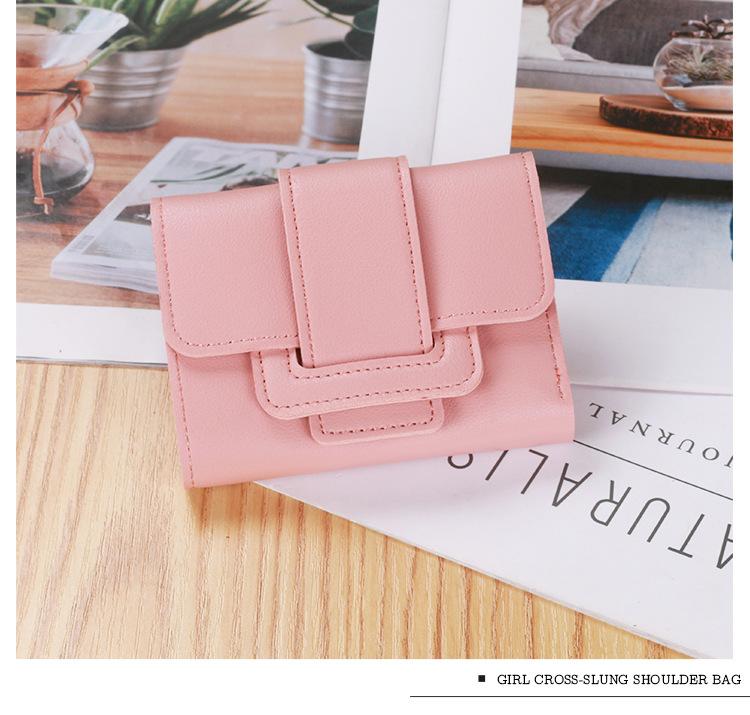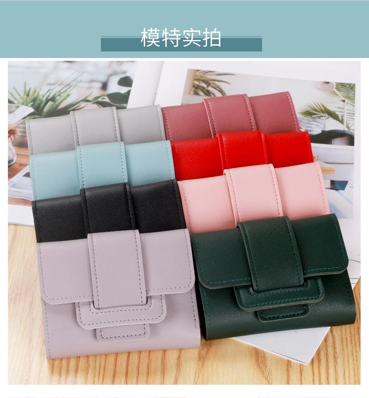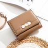 Nueva cartera de mujer de tres pliegues con cordón de color sólido de estilo coreano, monedero de mujer, bolso de mano, billetera corta para estudiante.