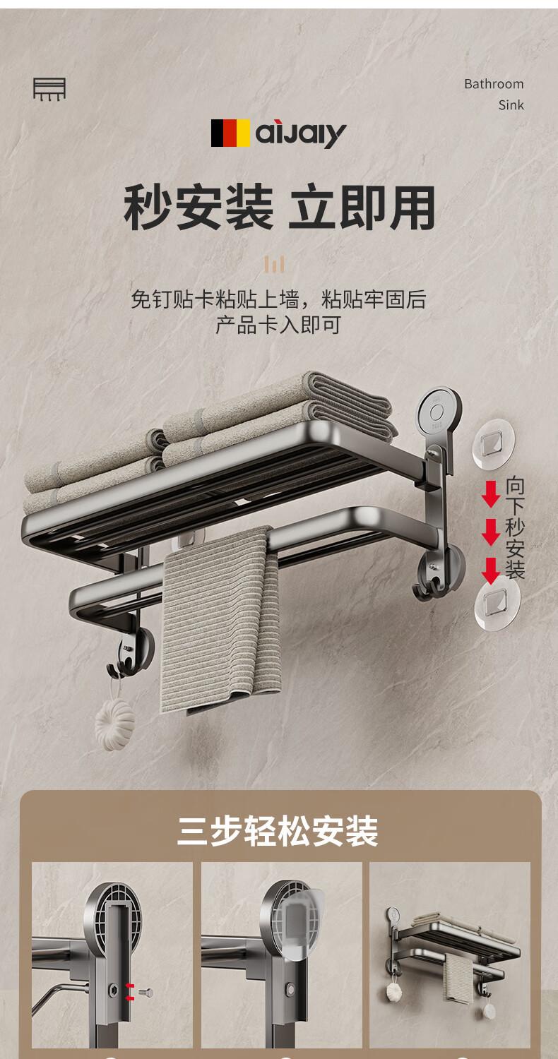 Aijiali 1001 bath towel rack 60cm-with installation tool