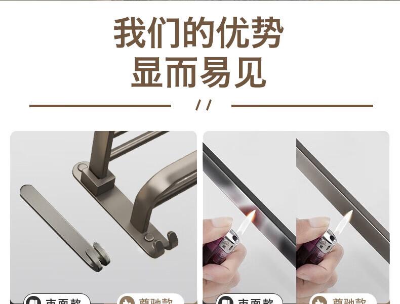 Toallero de baño de aluminio gris pistola sin perforaciones, toallero grueso para baño, montado en la pared