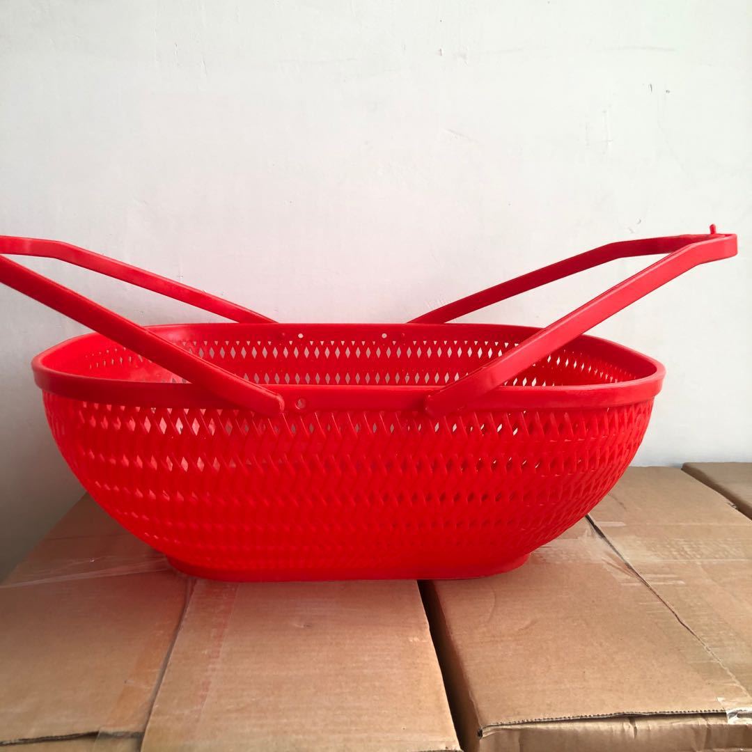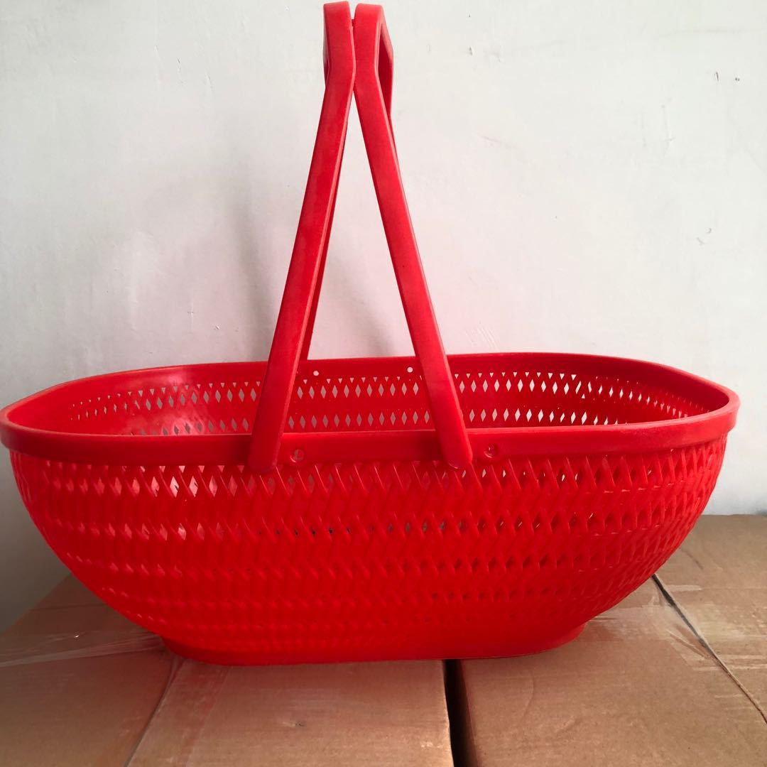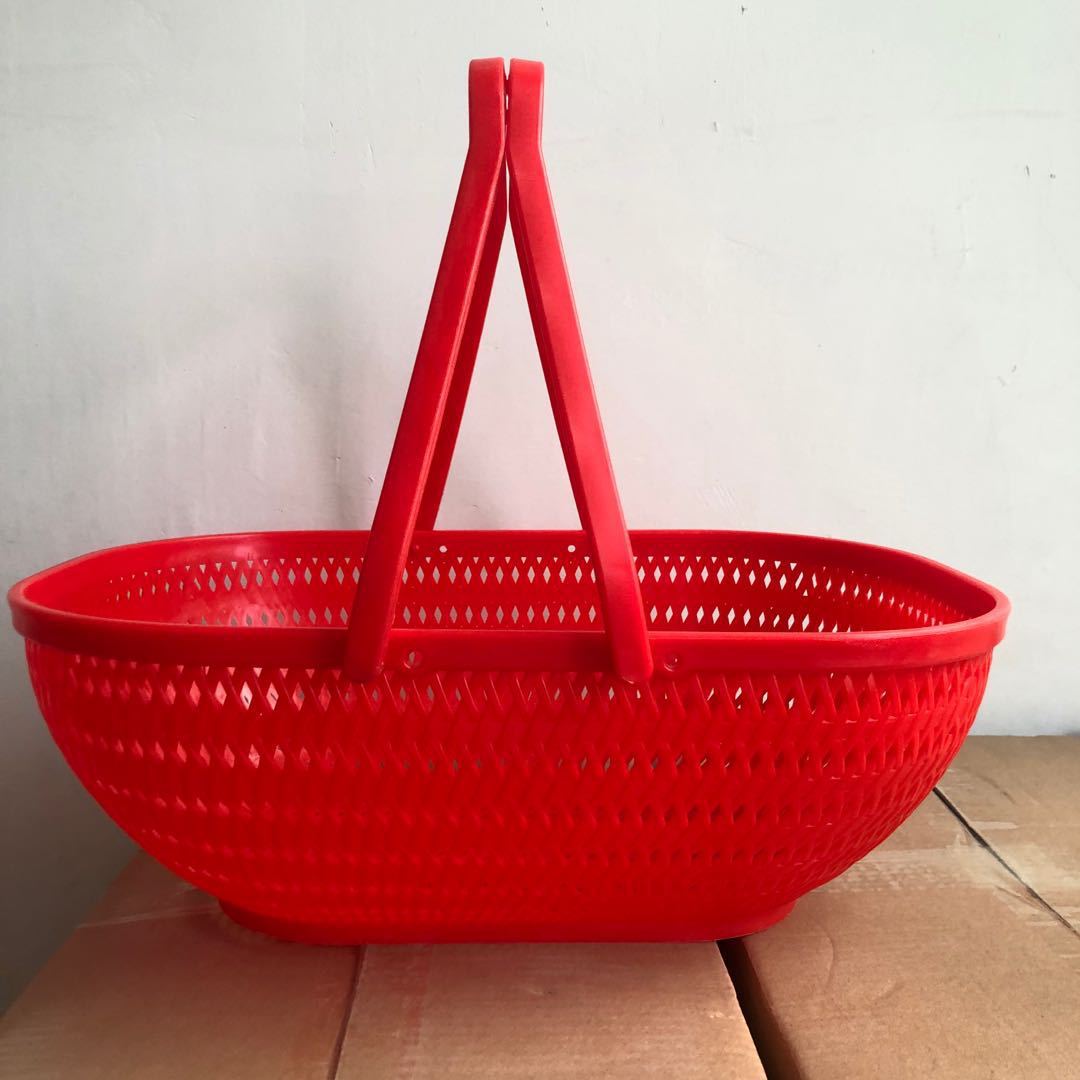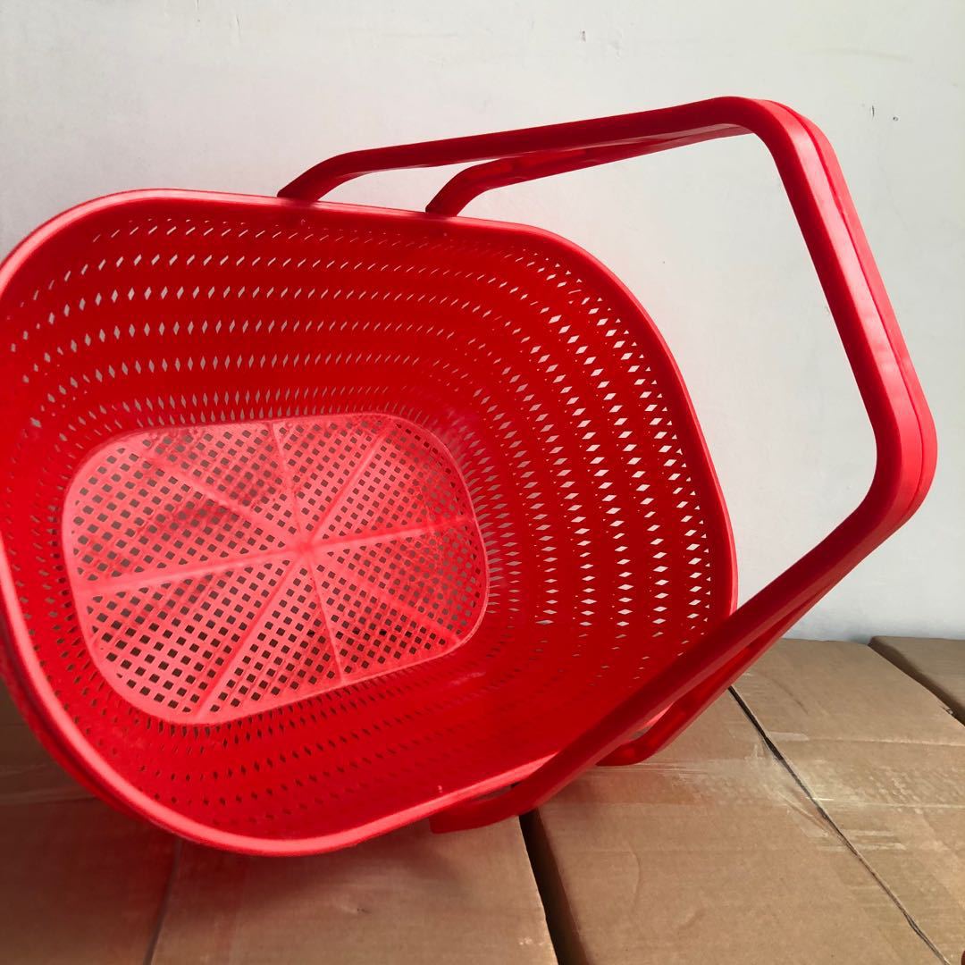 Cesta de plástico portátil para supermercado, cesta de plástico portátil roja, cesta de plástico para la compra de frutas y verduras, cesta de plástico