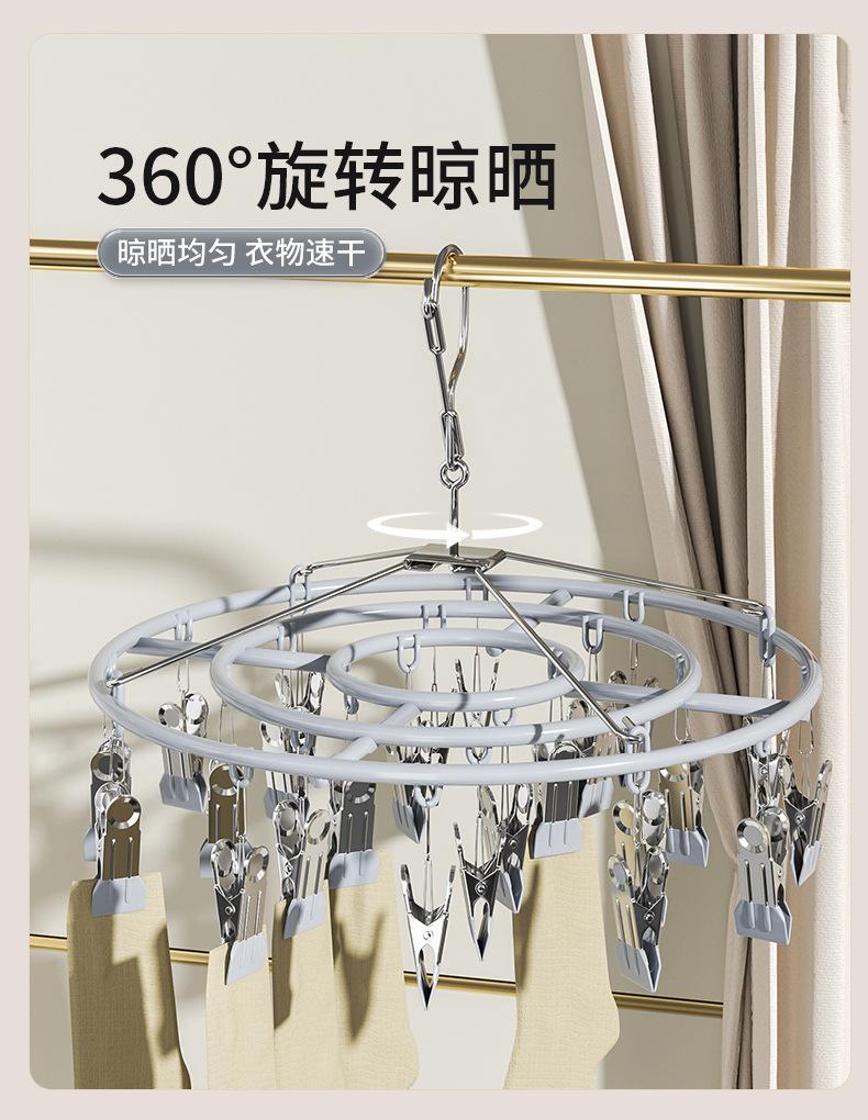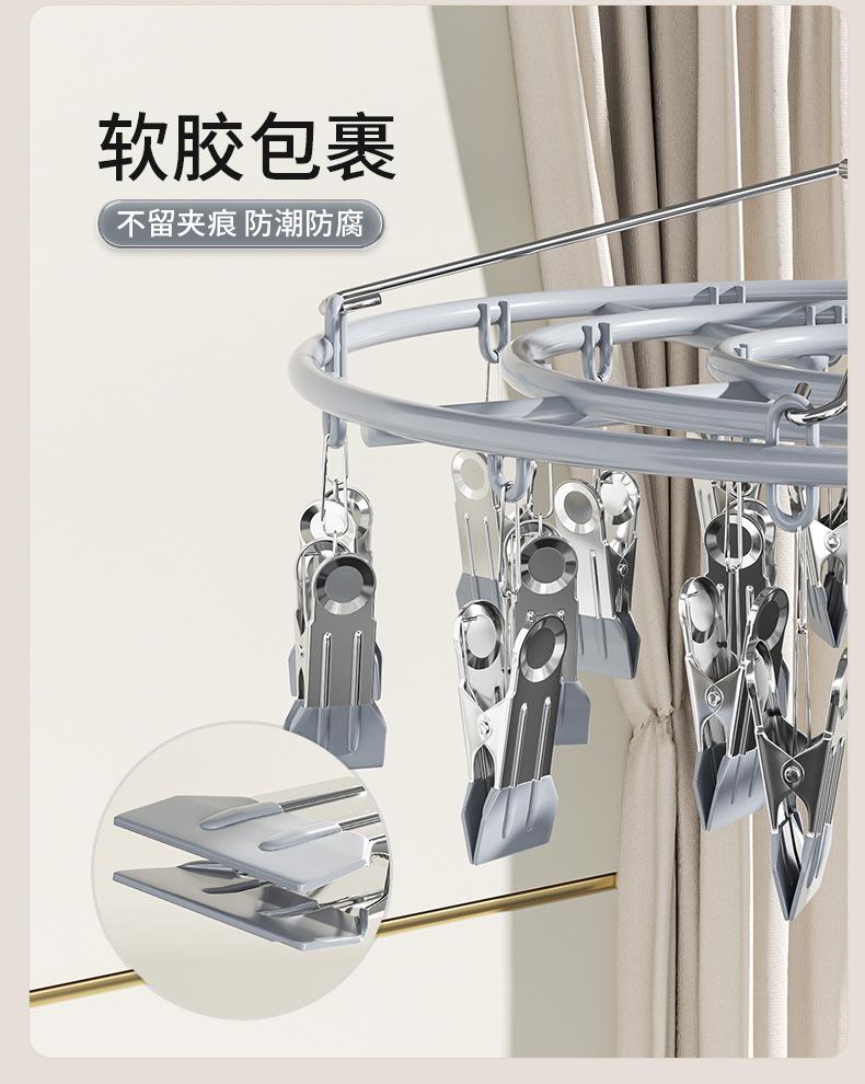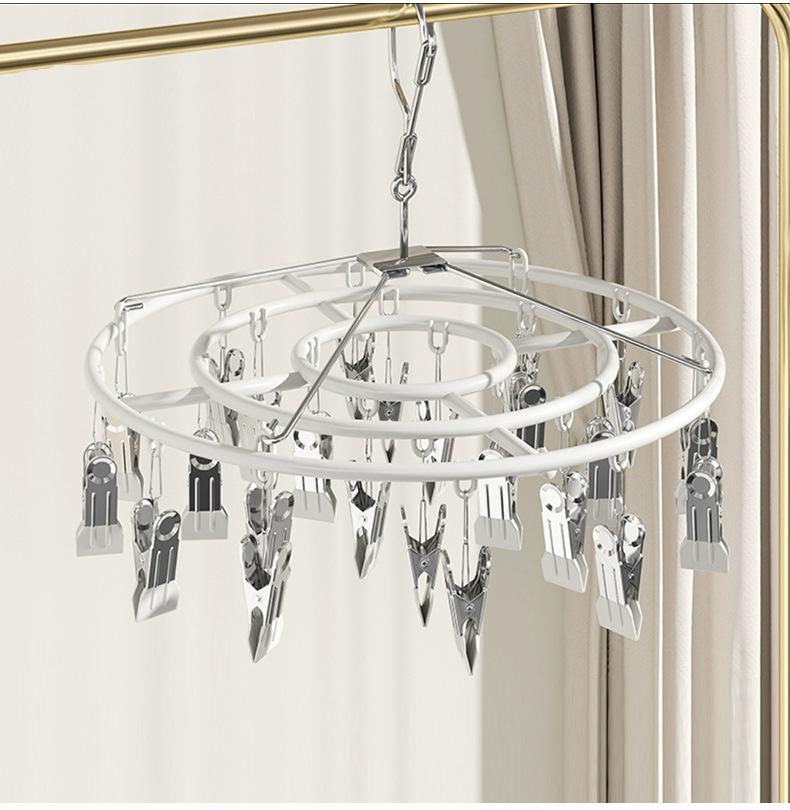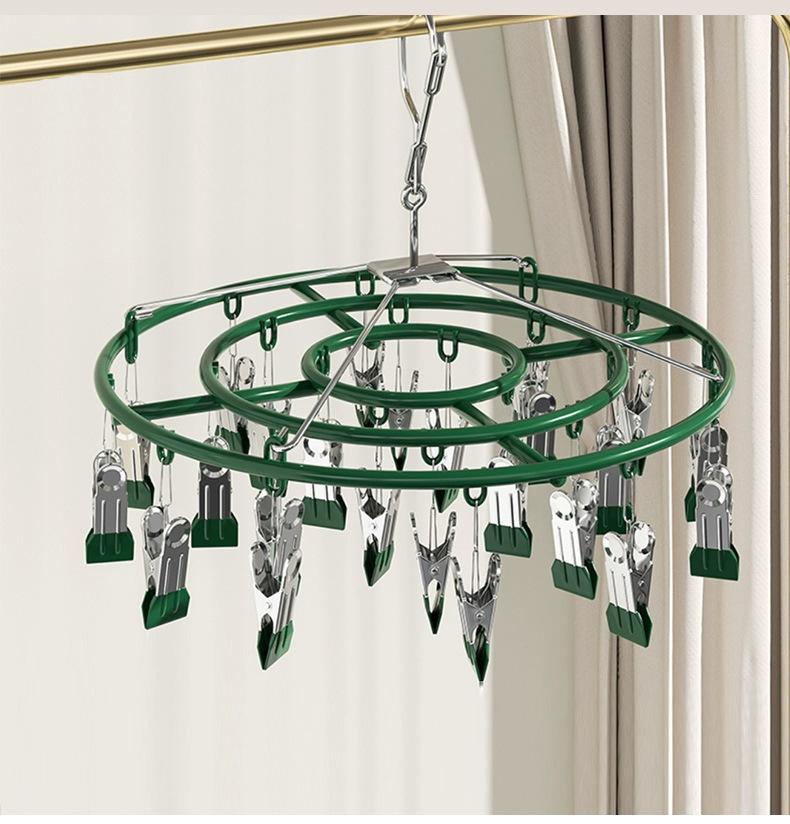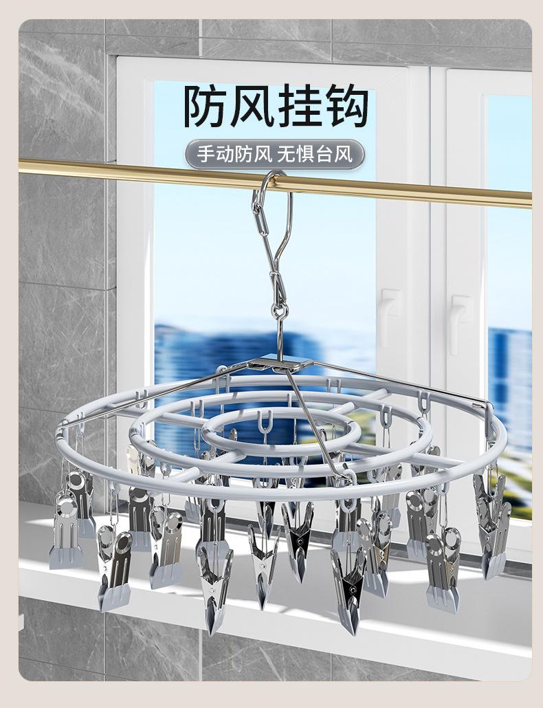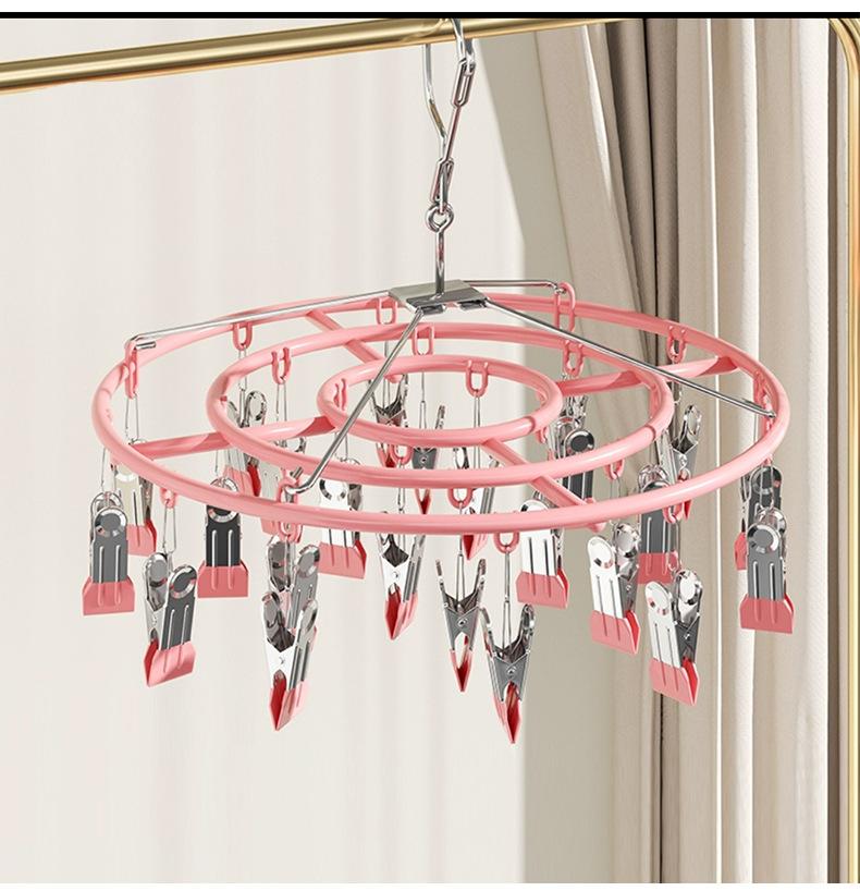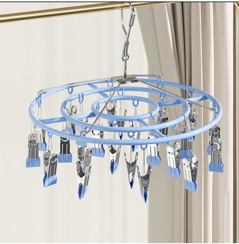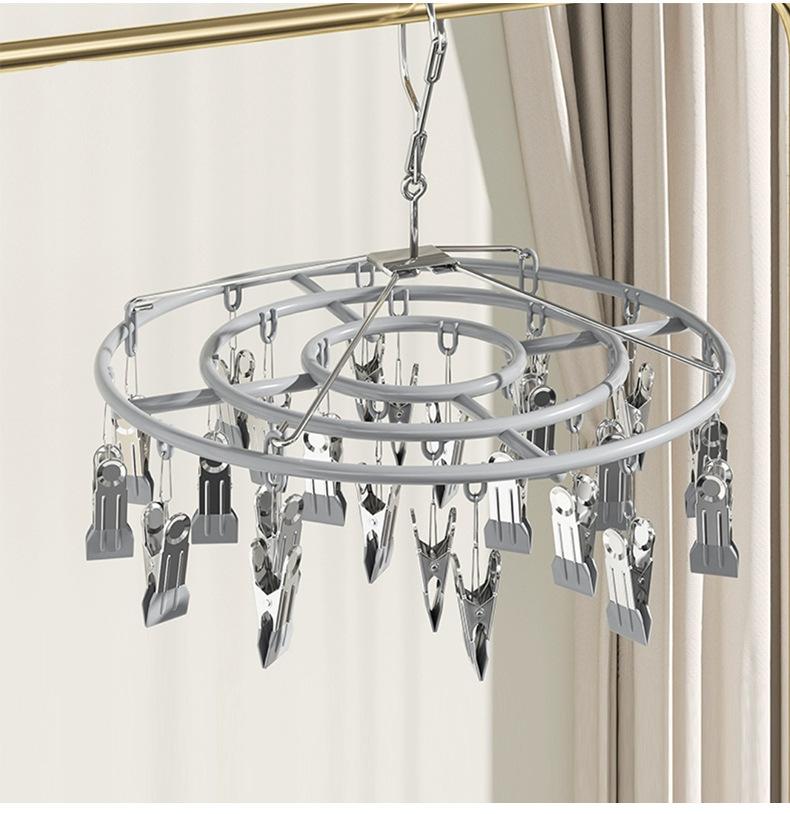 Tendedero de calcetines de acero inoxidable con múltiples clips, multifuncional para el hogar, para ropa interior, resistente al viento, para colgar calcetines.