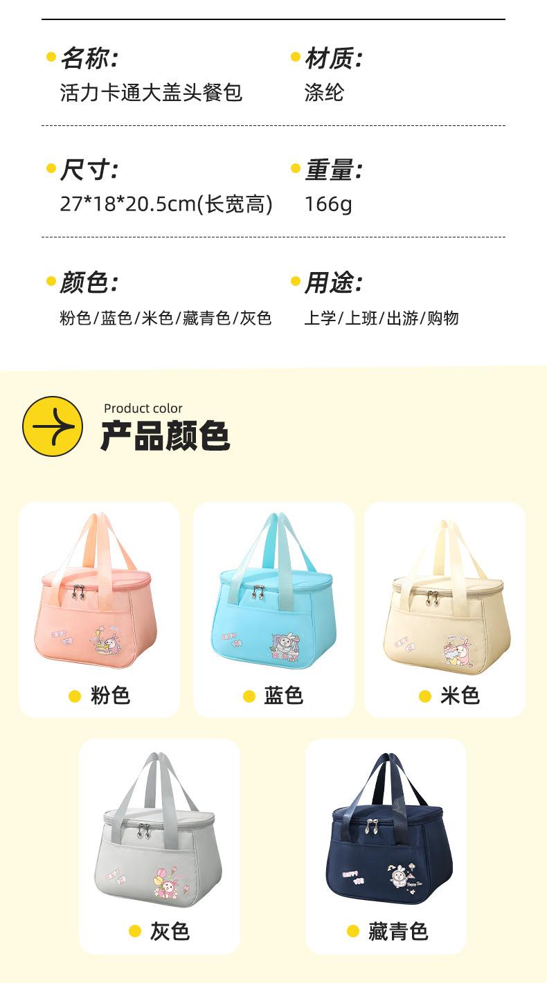 Nueva Bolsa de Almuerzo Portátil Linda Estudiante Oficina Estudiante Bolsa de Almuerzo con Comida Dibujos Animados Engrosada Bolsa de Almuerzo para Picnic
