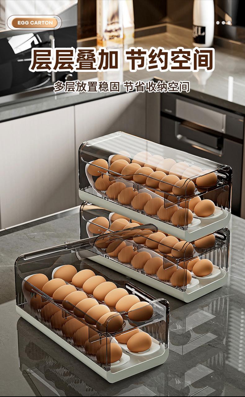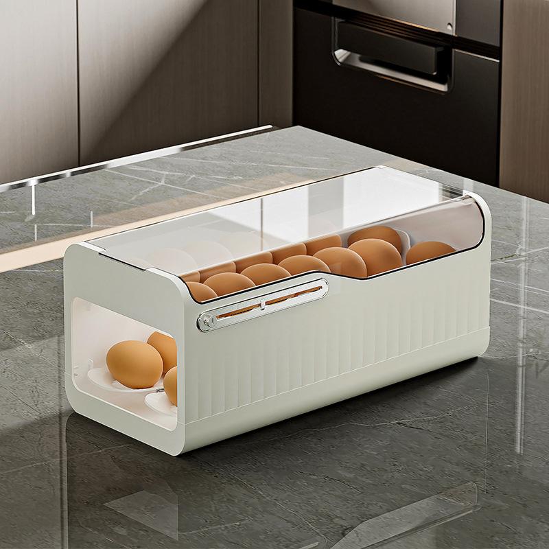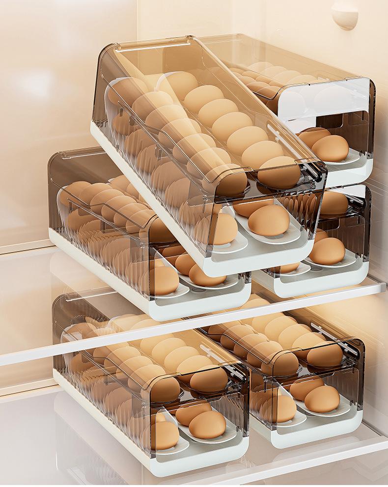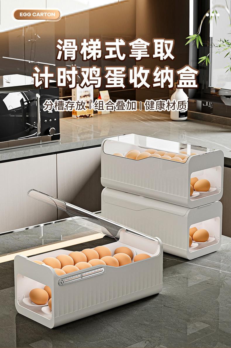Caja de almacenamiento multifuncional para refrigerador de cocina, caja de huevos tipo deslizable de múltiples capas, puerta lateral, estante de almacenamiento con temporizador, caja de huevos