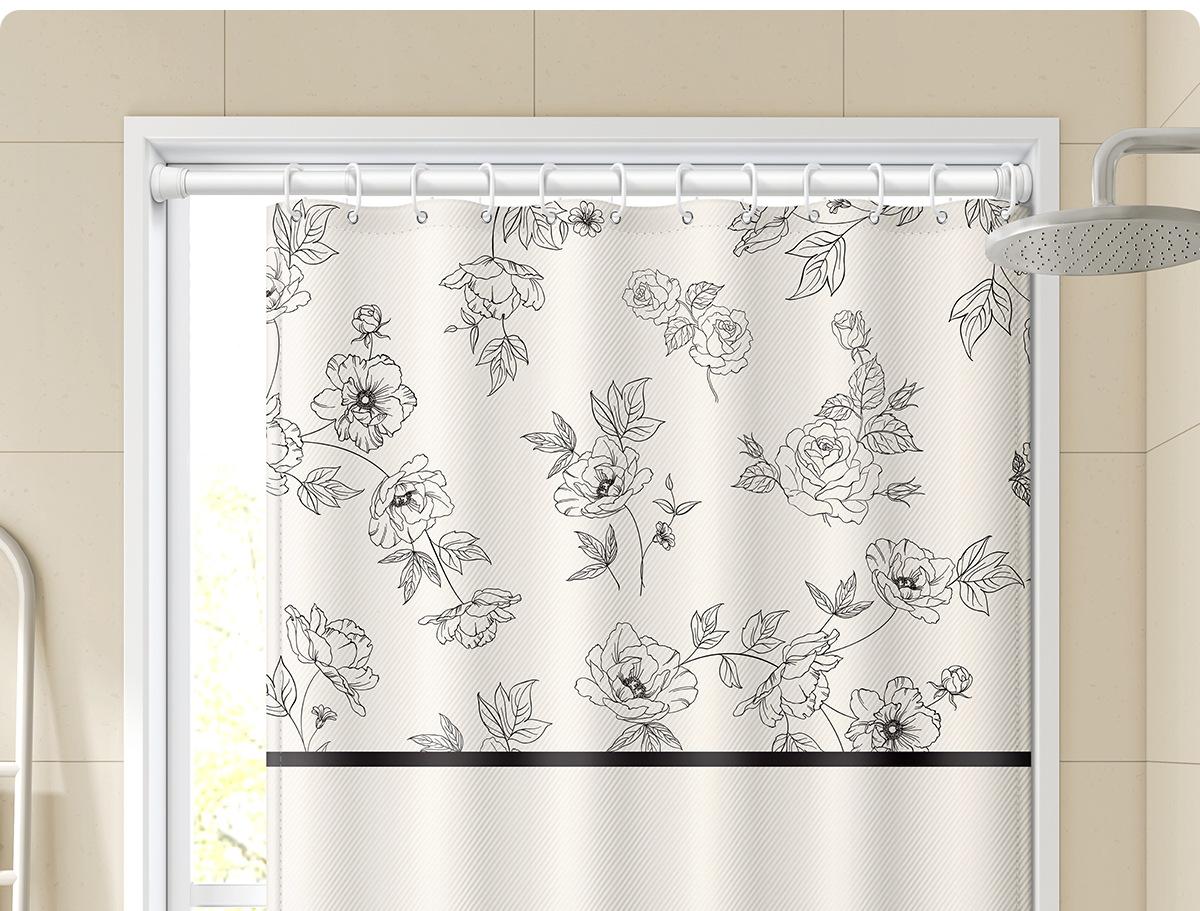 Cortina de Ducha Nueva Francesa Impermeable y Resistente al Moho Cortina de Baño Cortina de Ducha de Tela Impermeable Juego sin Perforaciones Cortina de Partición de Baño