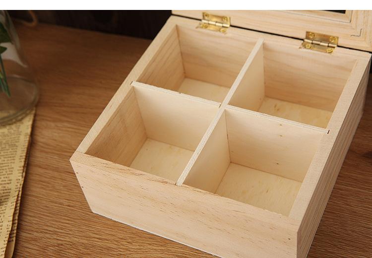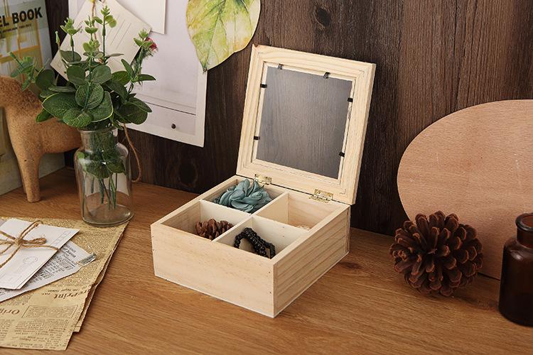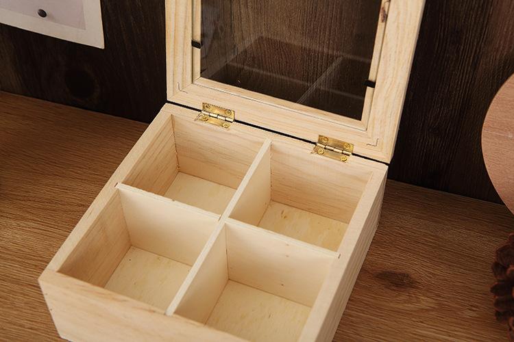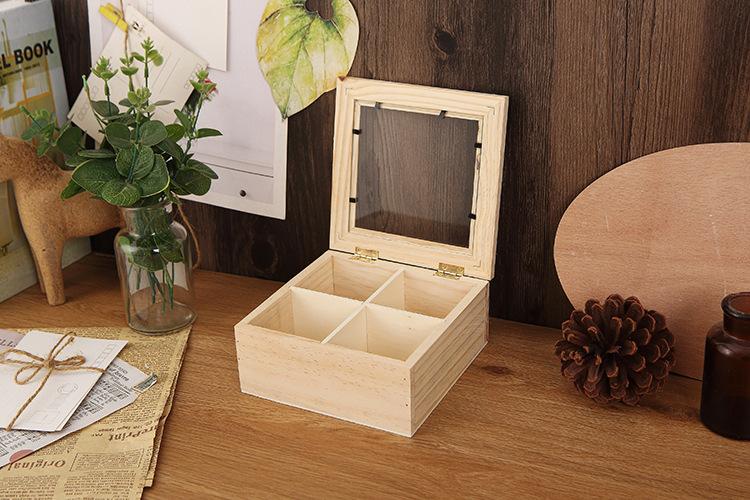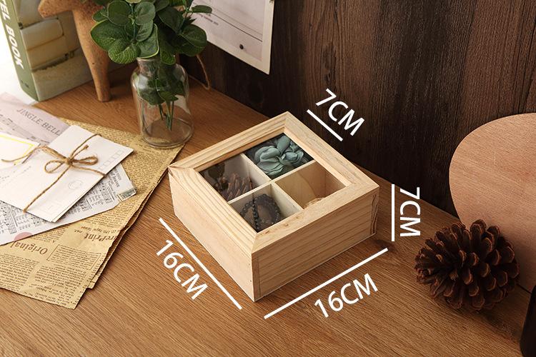 Rejillas Cuadradas y Cuatro Rejillas Caja de Almacenamiento de Escritorio de Madera Maciza Cuadrada con Vidrio Transparente y Tapa Caja Pequeña Caja de Joyería con Tapa Abatible