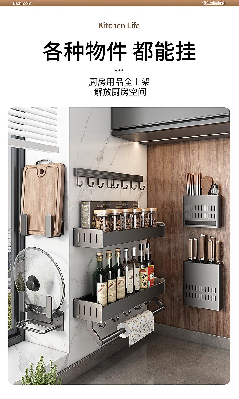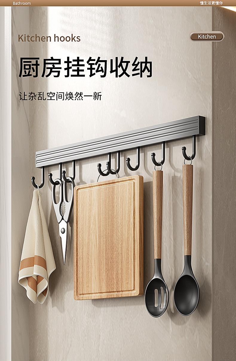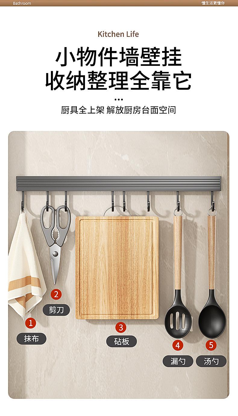 Estante de ganchos para cocina, sin perforaciones, para almacenamiento de cocina, accesorios, montado en la pared, multifuncional, para utensilios de cocina, cuchara, pala, barra para colgar, almacenamiento