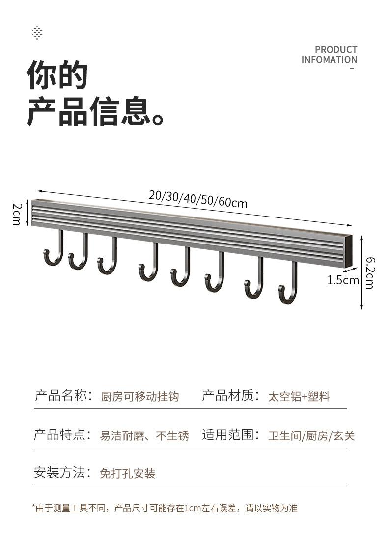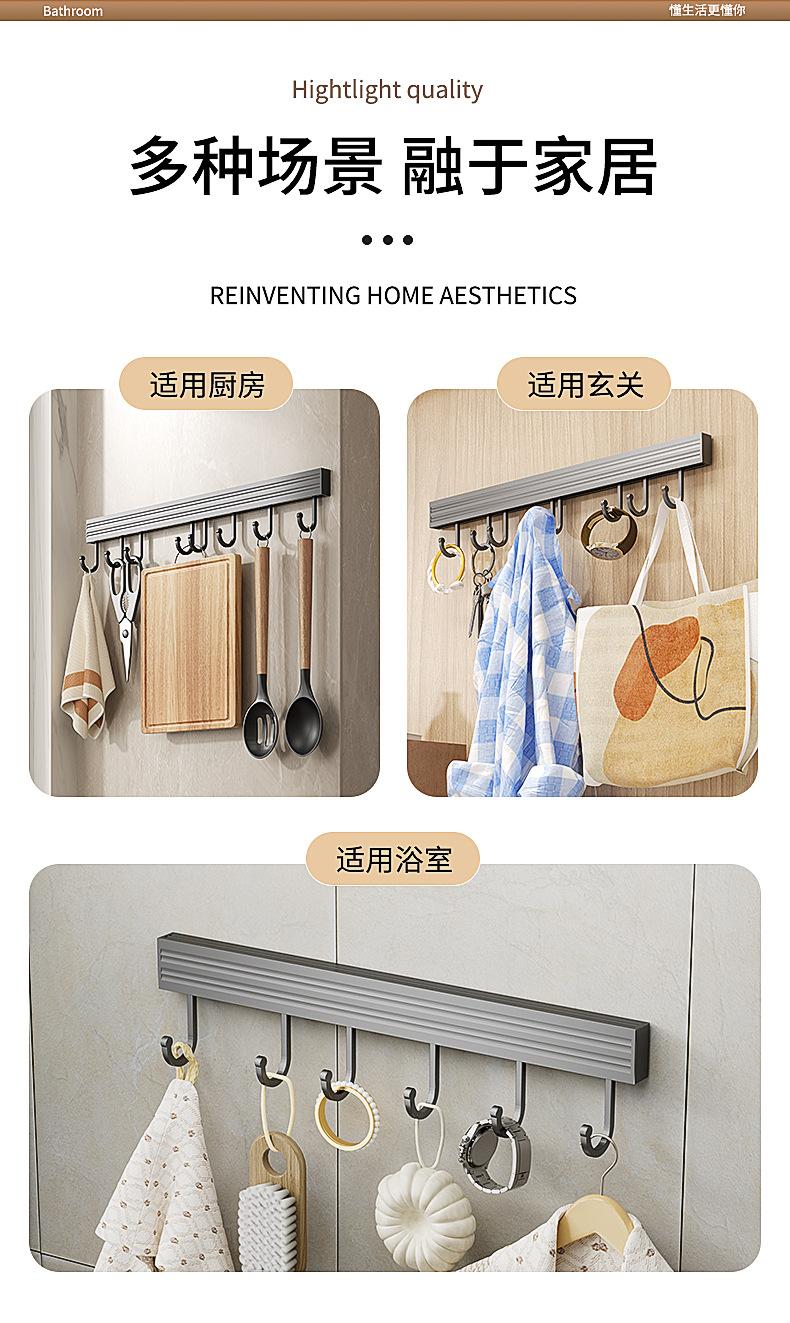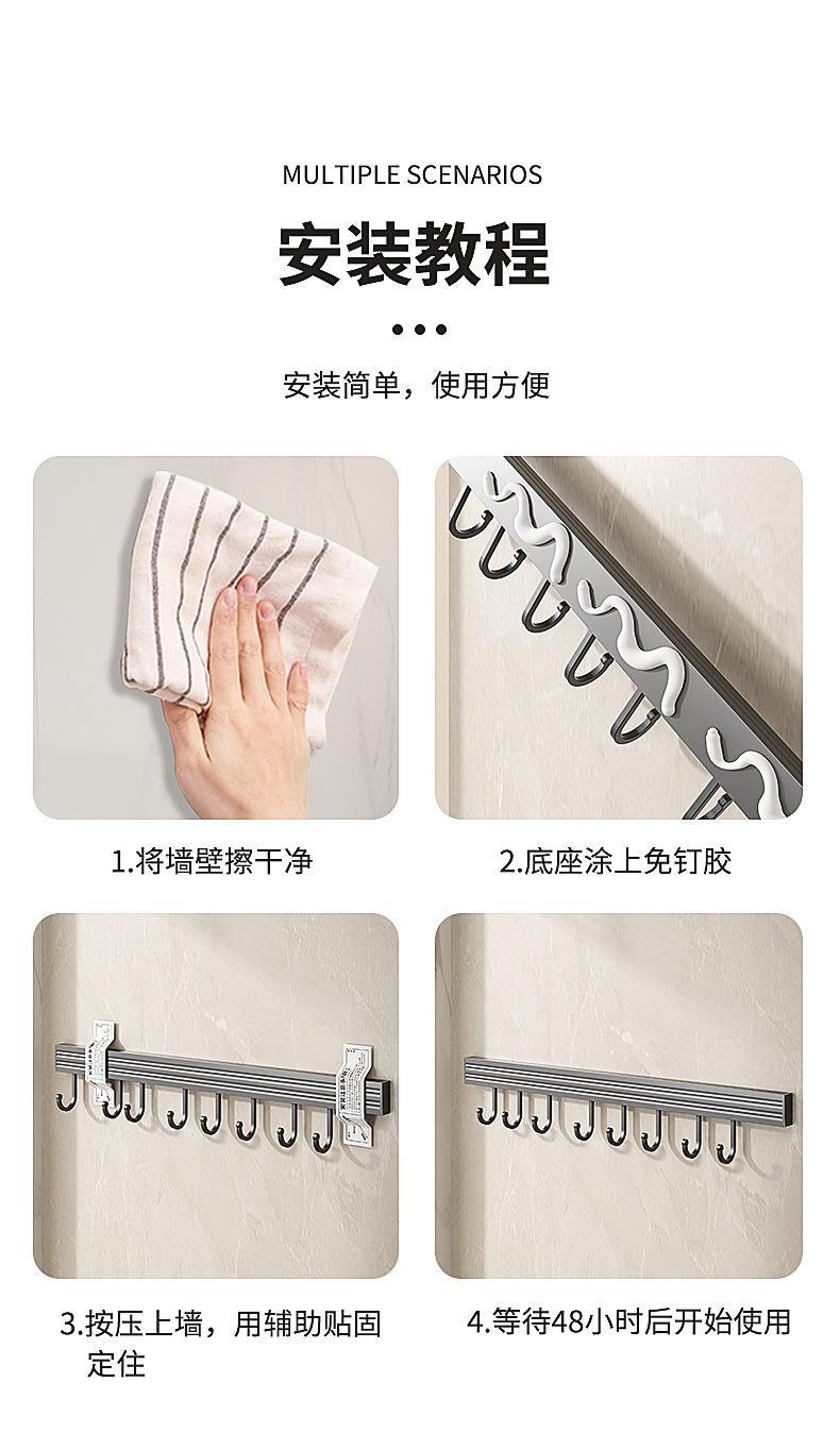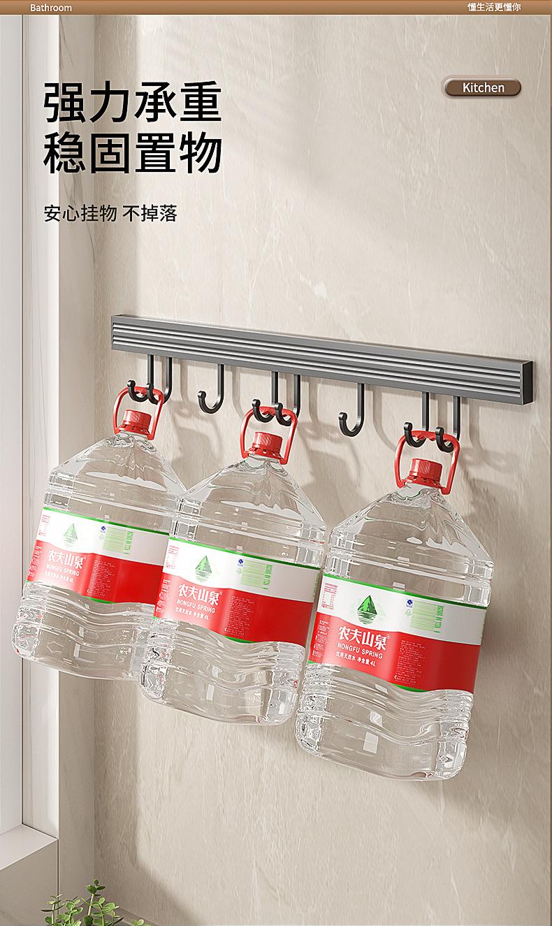 Estante de ganchos para cocina, sin perforaciones, para almacenamiento de cocina, accesorios, montado en la pared, multifuncional, para utensilios de cocina, cuchara, pala, barra para colgar, almacenamiento