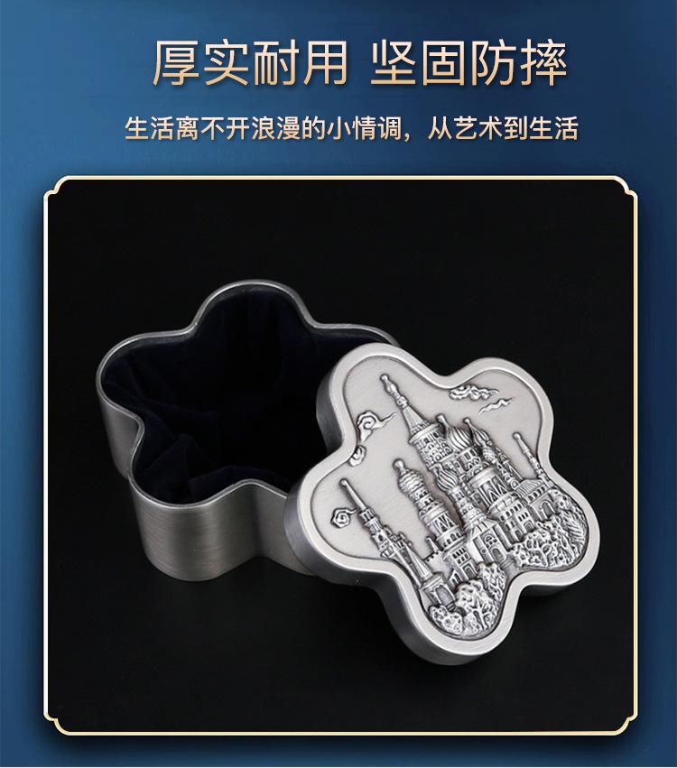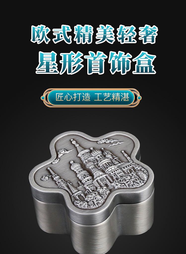 Joyero de escritorio de metal creativo de estilo europeo, caja de almacenamiento de joyas con castillo de aleación de zinc, caja de embalaje para anillos de boda y cumpleaños