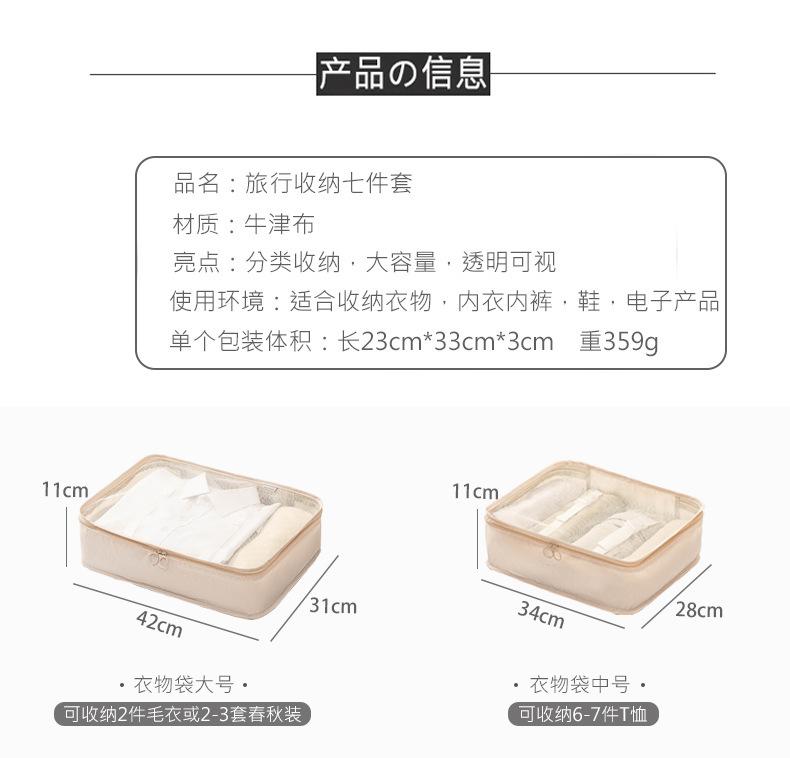 Tamaño y peso del embalaje del juego de viaje de siete piezas