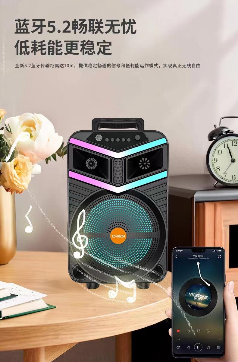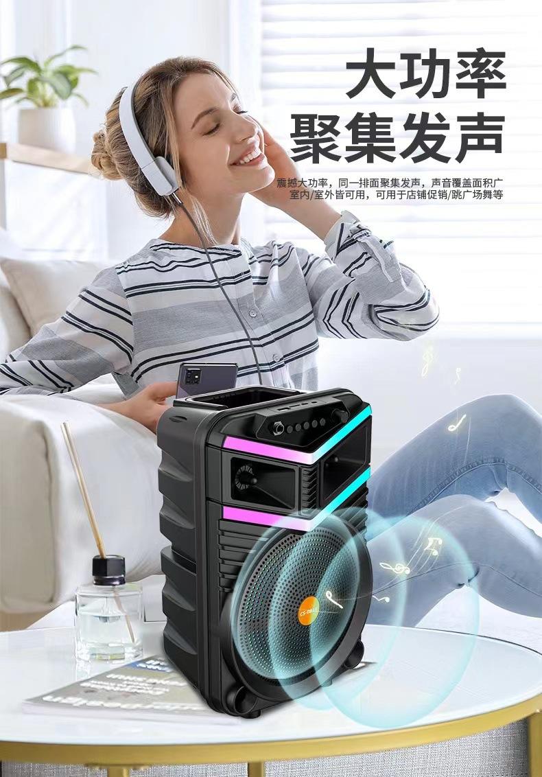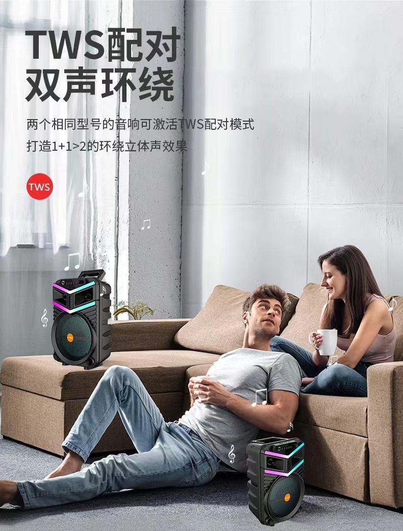 Altavoz Bluetooth de 8 pulgadas para exteriores, portátil, cuadrado, de baile, subwoofer de alta potencia, micrófono inalámbrico de escritorio para el hogar, audio K-song