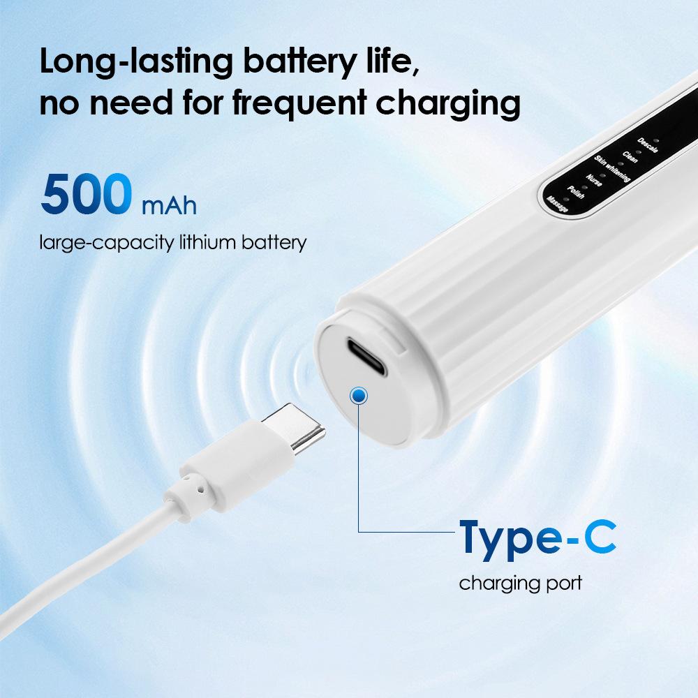 4. Actualización innovadora, batería de litio de gran capacidad de 500 mAh, frecuencia de vibración de hasta 31.000 veces/min, cepillo suave, diseño inteligente;
