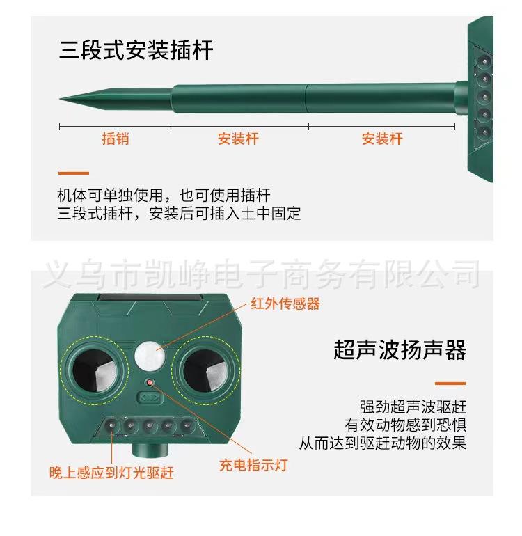 Repelente Solar de Animales para Exterior Granja Repelente Ultrasónico de Ratones Repelente de Aves para Exterior Hogar Electrónico Repelente de Perros