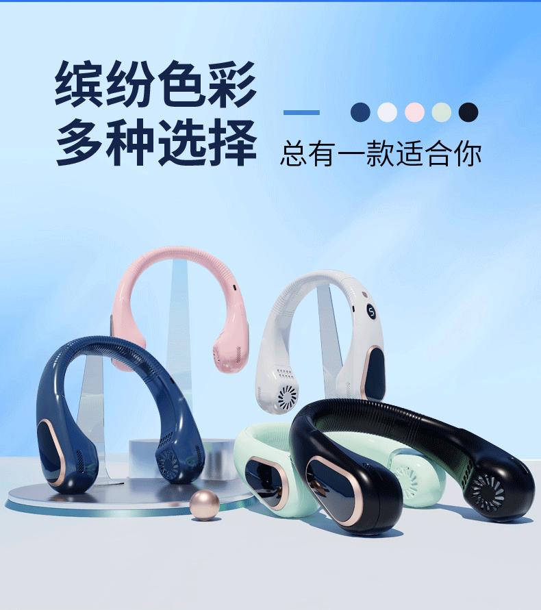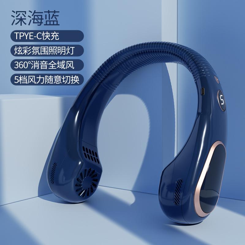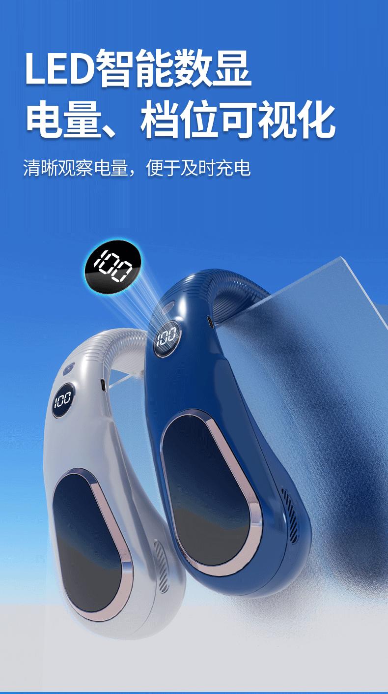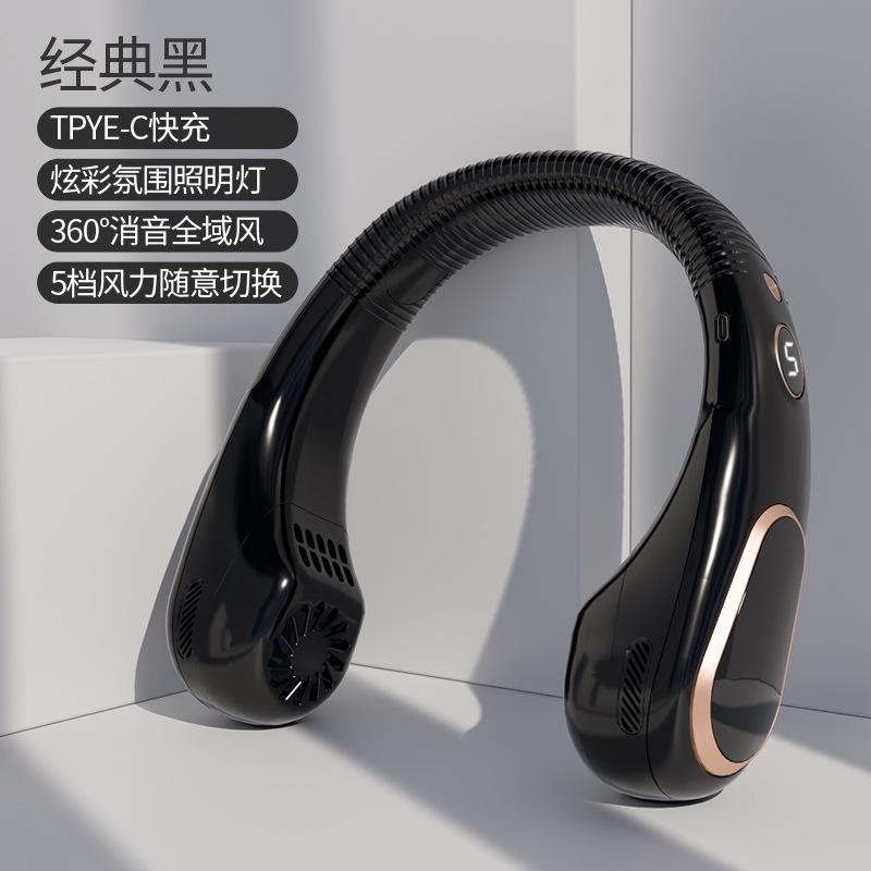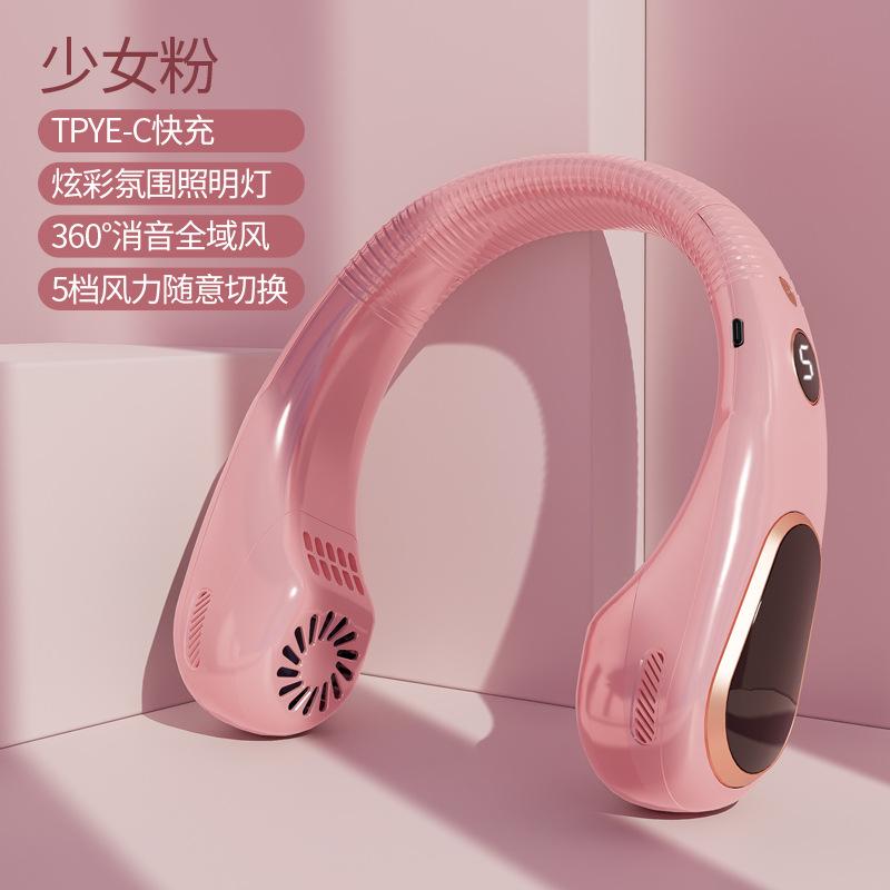 Nuevo ventilador de cuello colgante transfronterizo 2024 carga USB portátil regalo con logo personalizado pantalla digital LED ventilador de cuello colgante