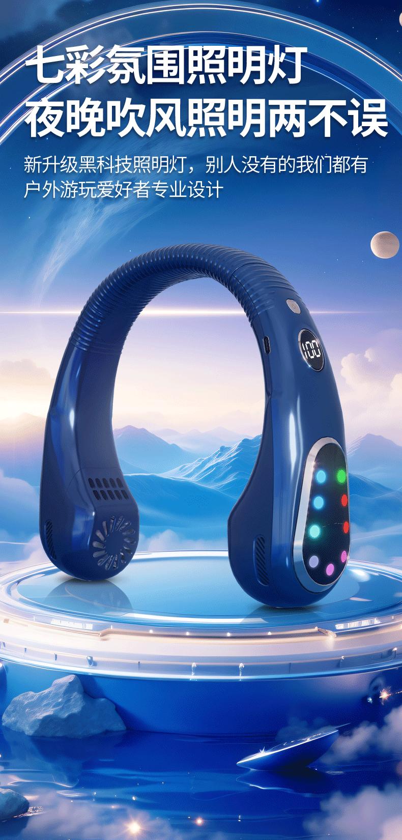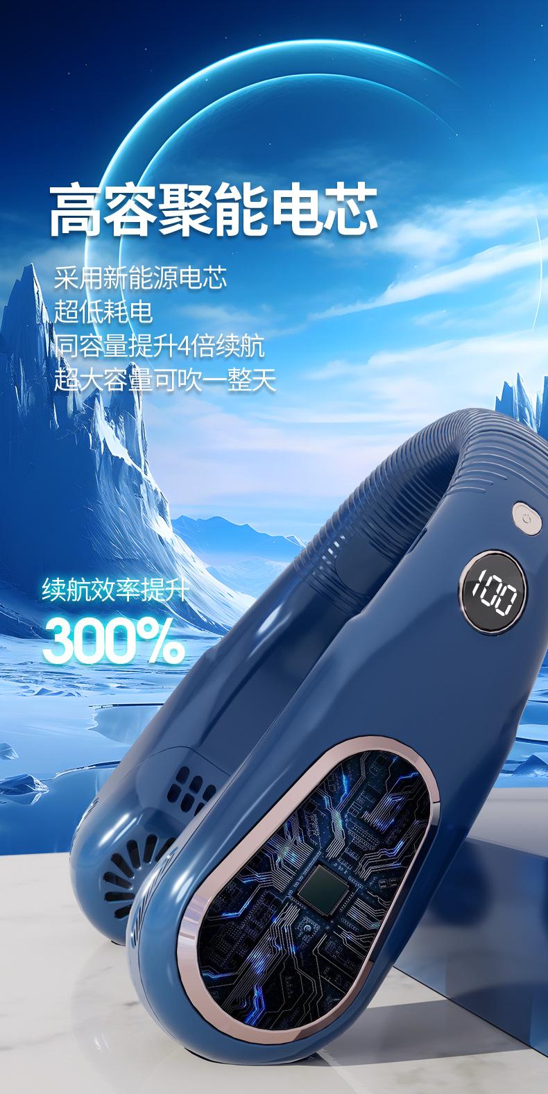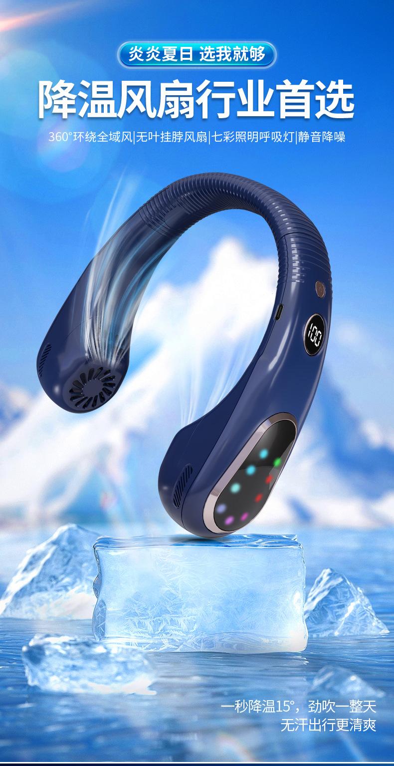 Nuevo ventilador de cuello colgante transfronterizo 2024 carga USB portátil regalo con logo personalizado pantalla digital LED ventilador de cuello colgante