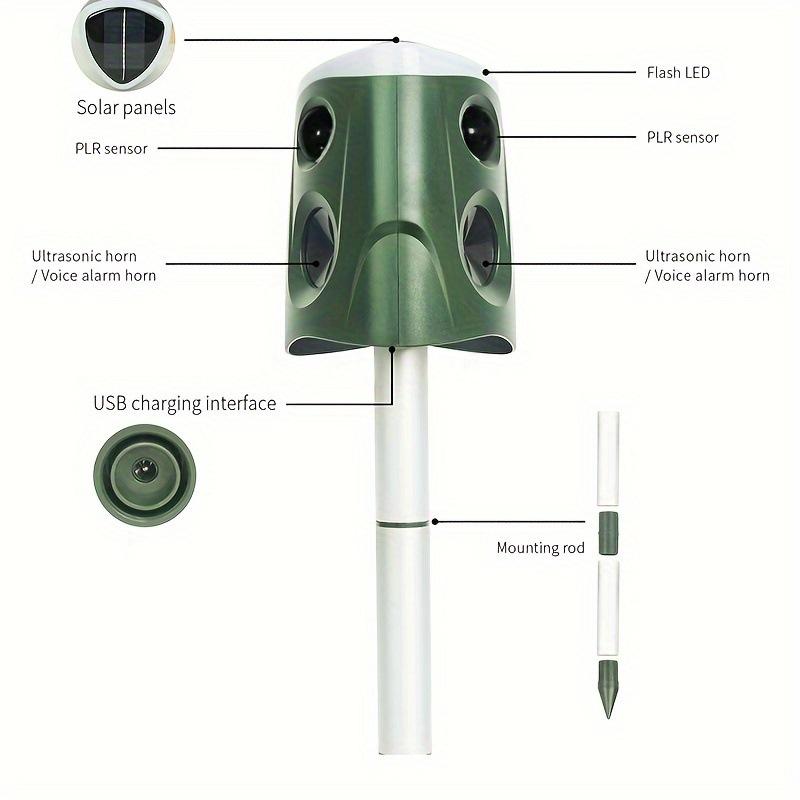 Nuevo Producto Transfronterizo Repelente de Aves con Sensor Infrarrojo de 360 Grados Alarma Solar Repelente de Ratones Flash Repelente de Animales