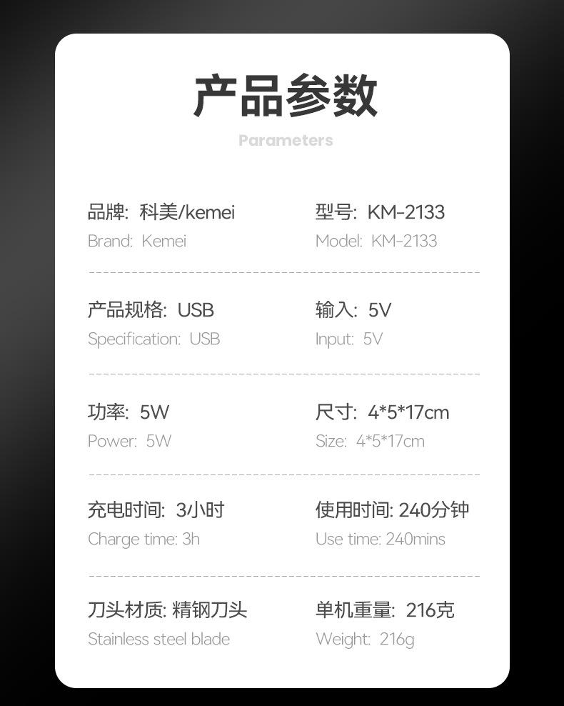 Kemei Cortapelos Eléctrico Transfronterizo Profesional Km-2133 Recortadora de Cabello Eléctrica para Peluquería Corte de Cabello Cortapelos Eléctrico