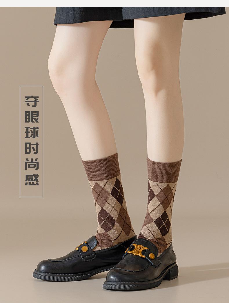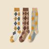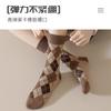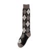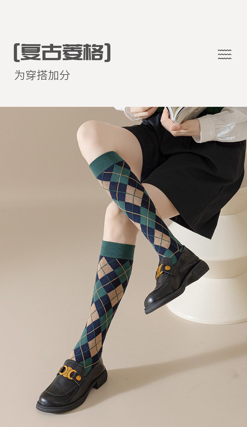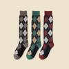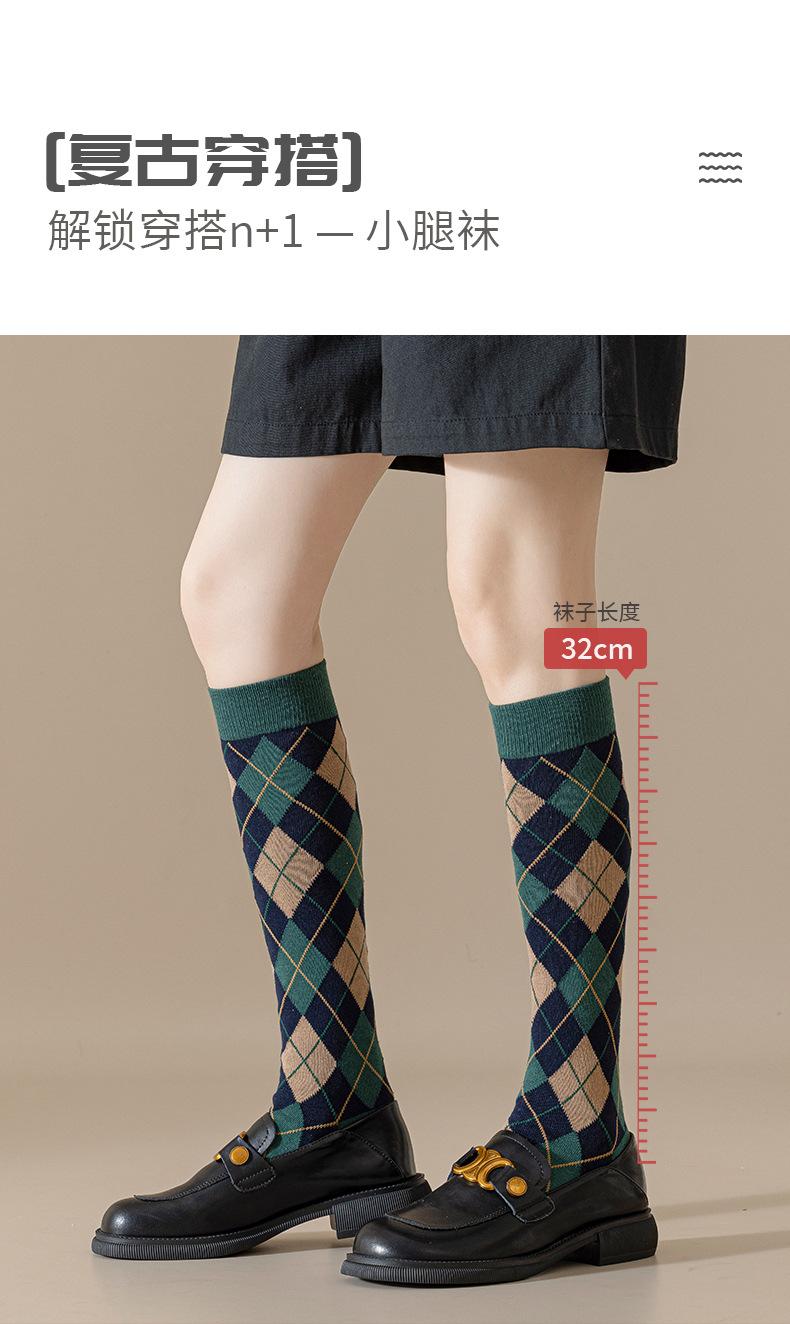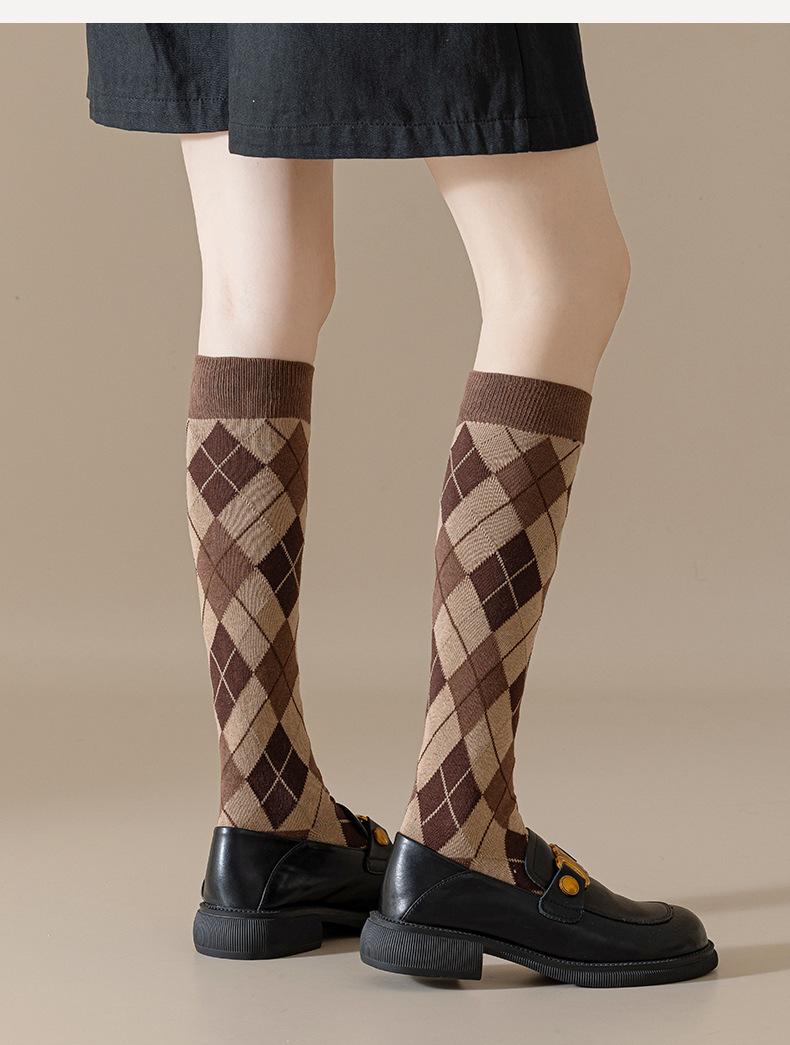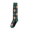 Calcetines para niña otoño e invierno rombo retro estilo británico estilo universitario japonés media pantorrilla zapatos de cuero verde pantorrilla café