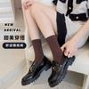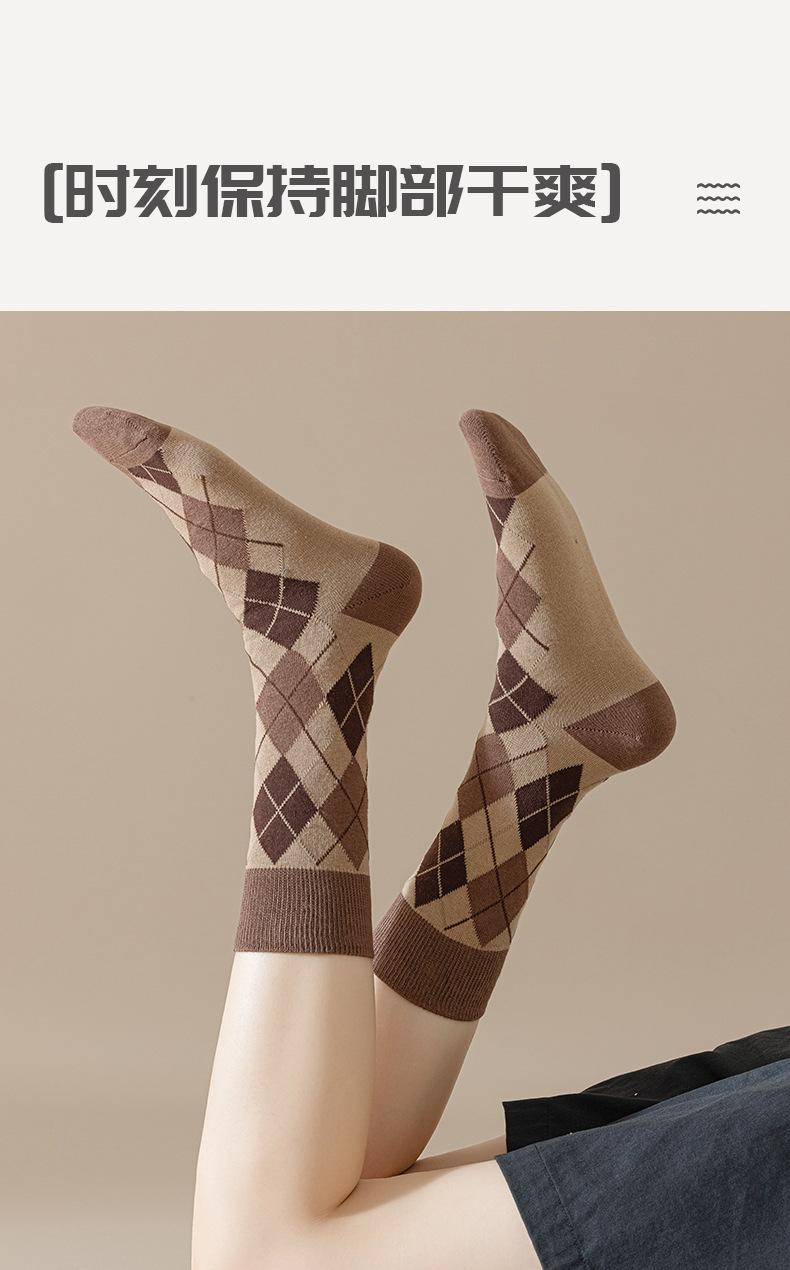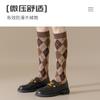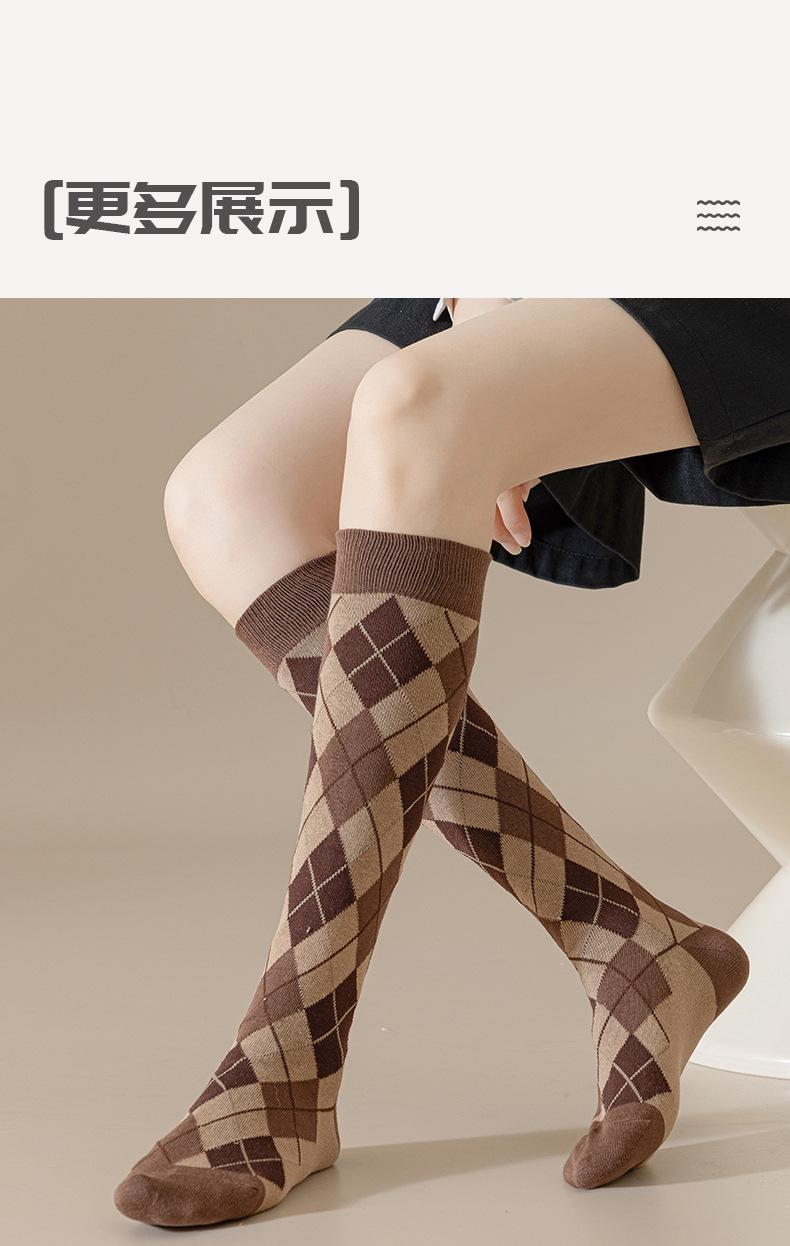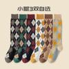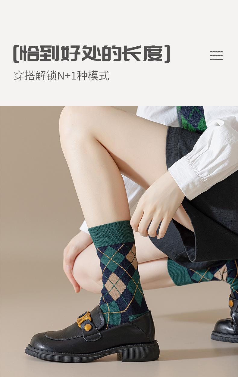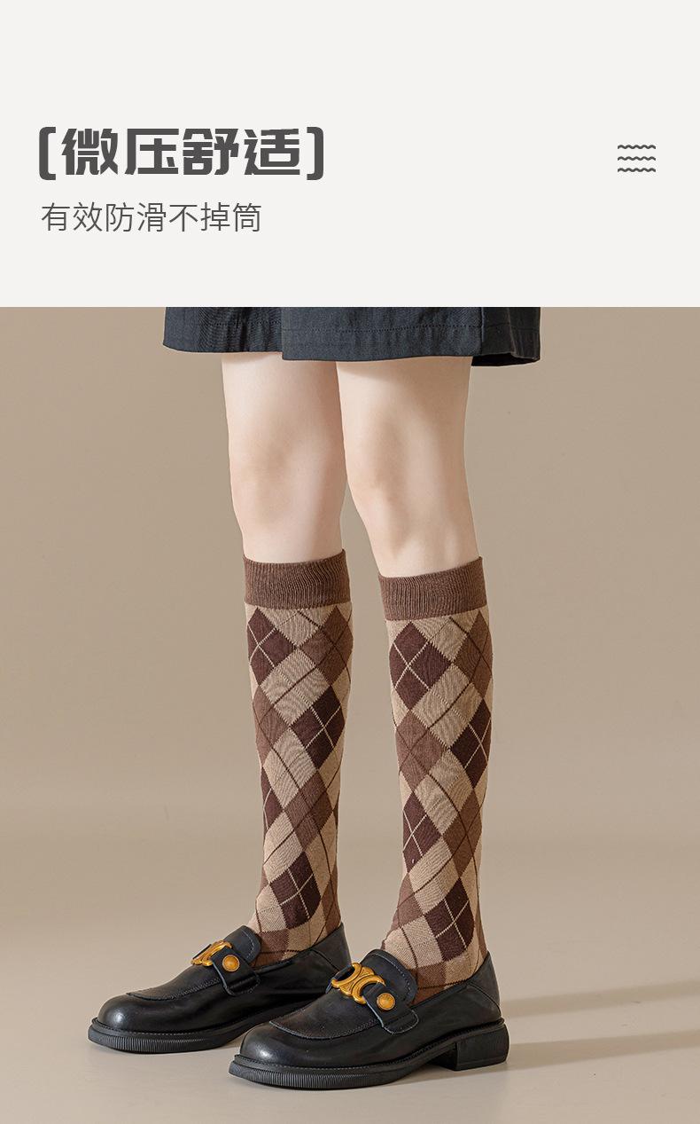 Calcetines para niña otoño e invierno rombo retro estilo británico estilo universitario japonés media pantorrilla zapatos de cuero verde pantorrilla café