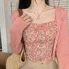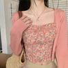 Camisola blanca floral con varillas de hueso de pescado y almohadilla en el pecho para mujer para llevar debajo o encima, estilo de verano nuevo, top dulce y sexy